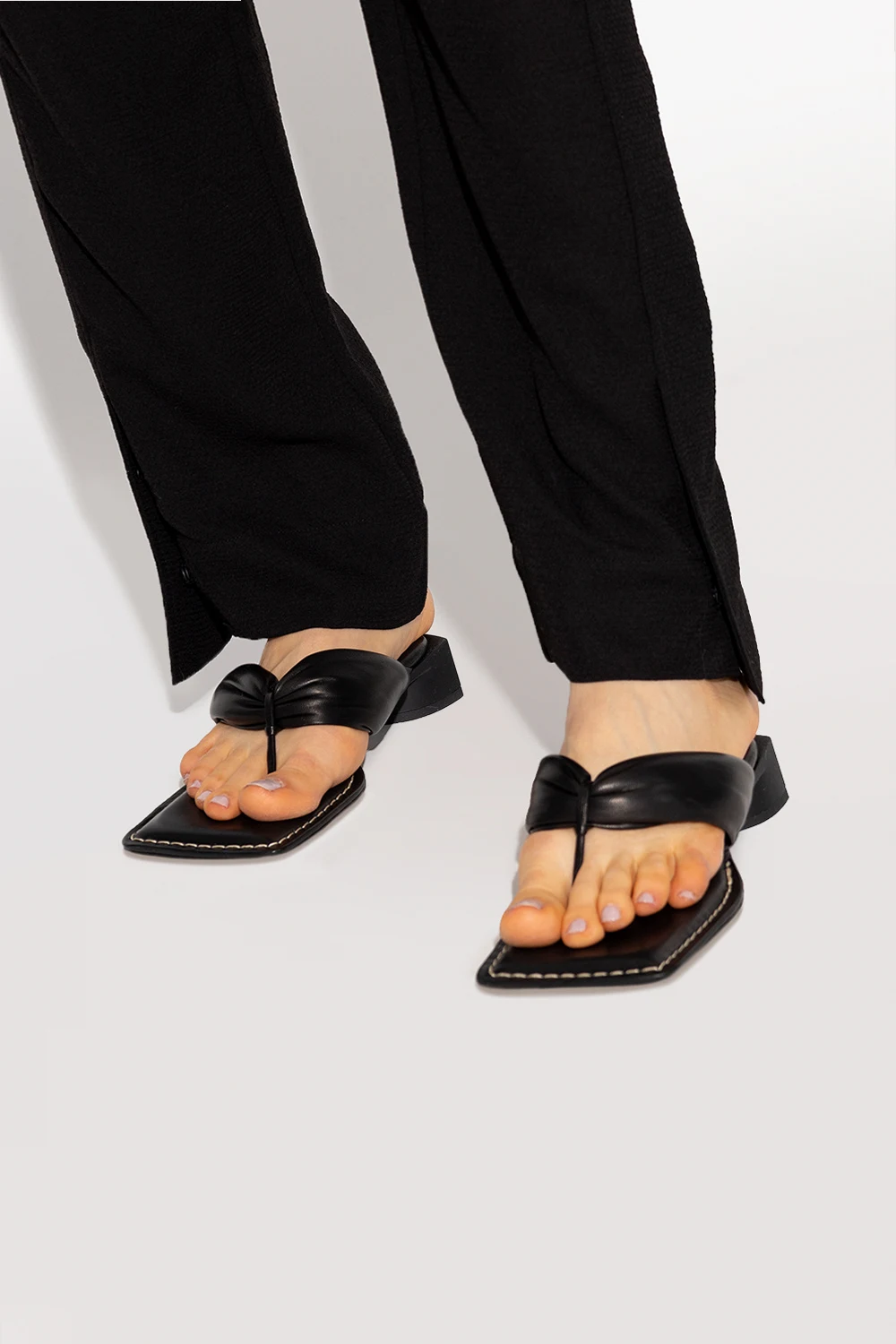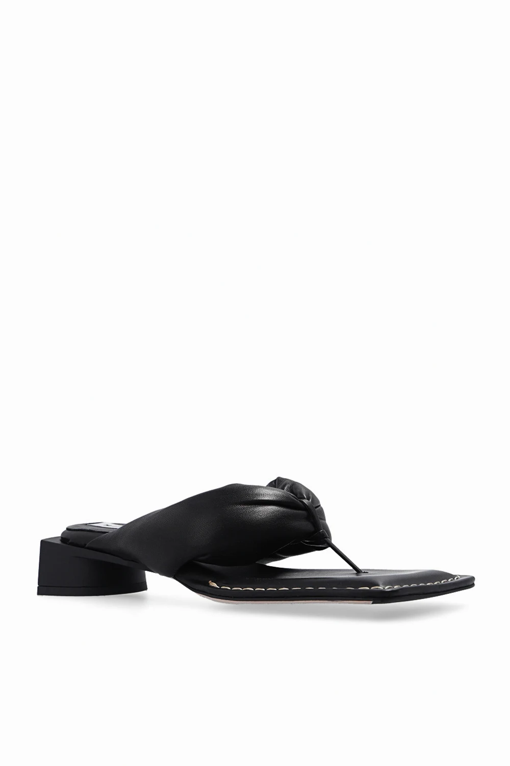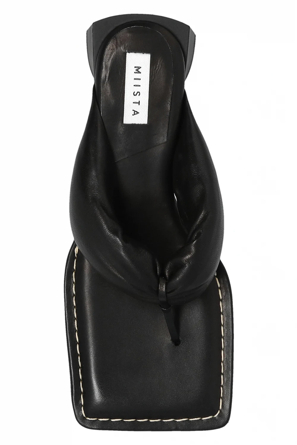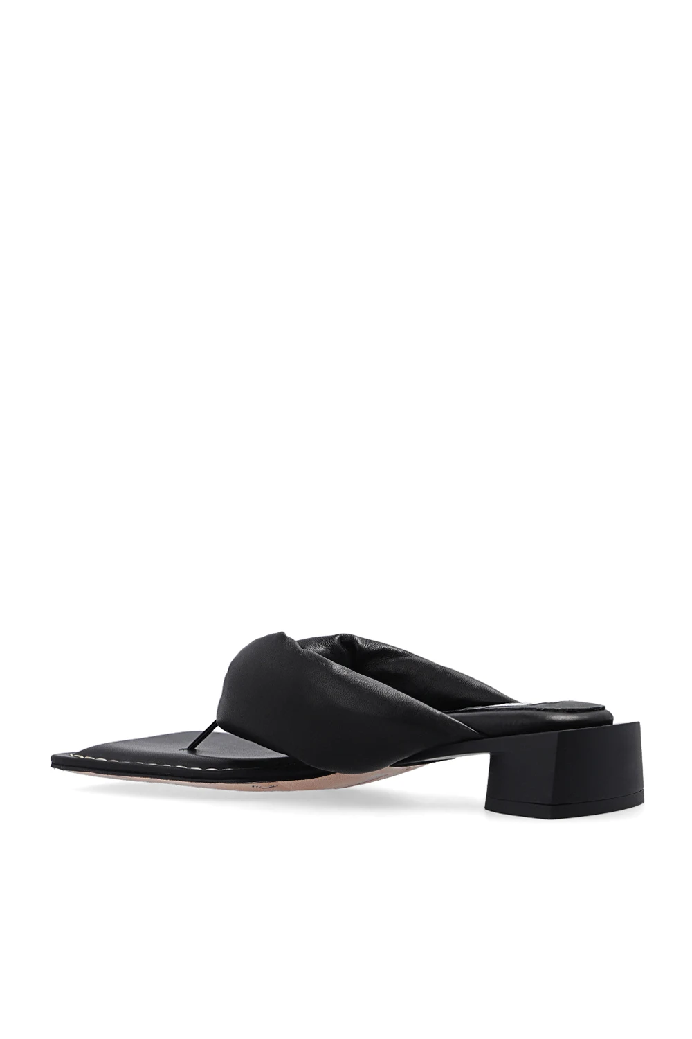Black ‘Anais’ heeled mules from Miista. Crafted from calf and lamb leather, this square toe design features an ultra soft insole as well as a beige and black sole made of leather and rubber.