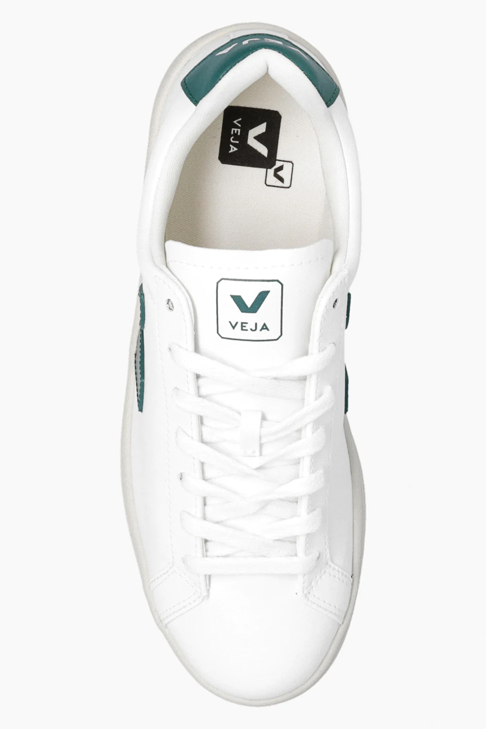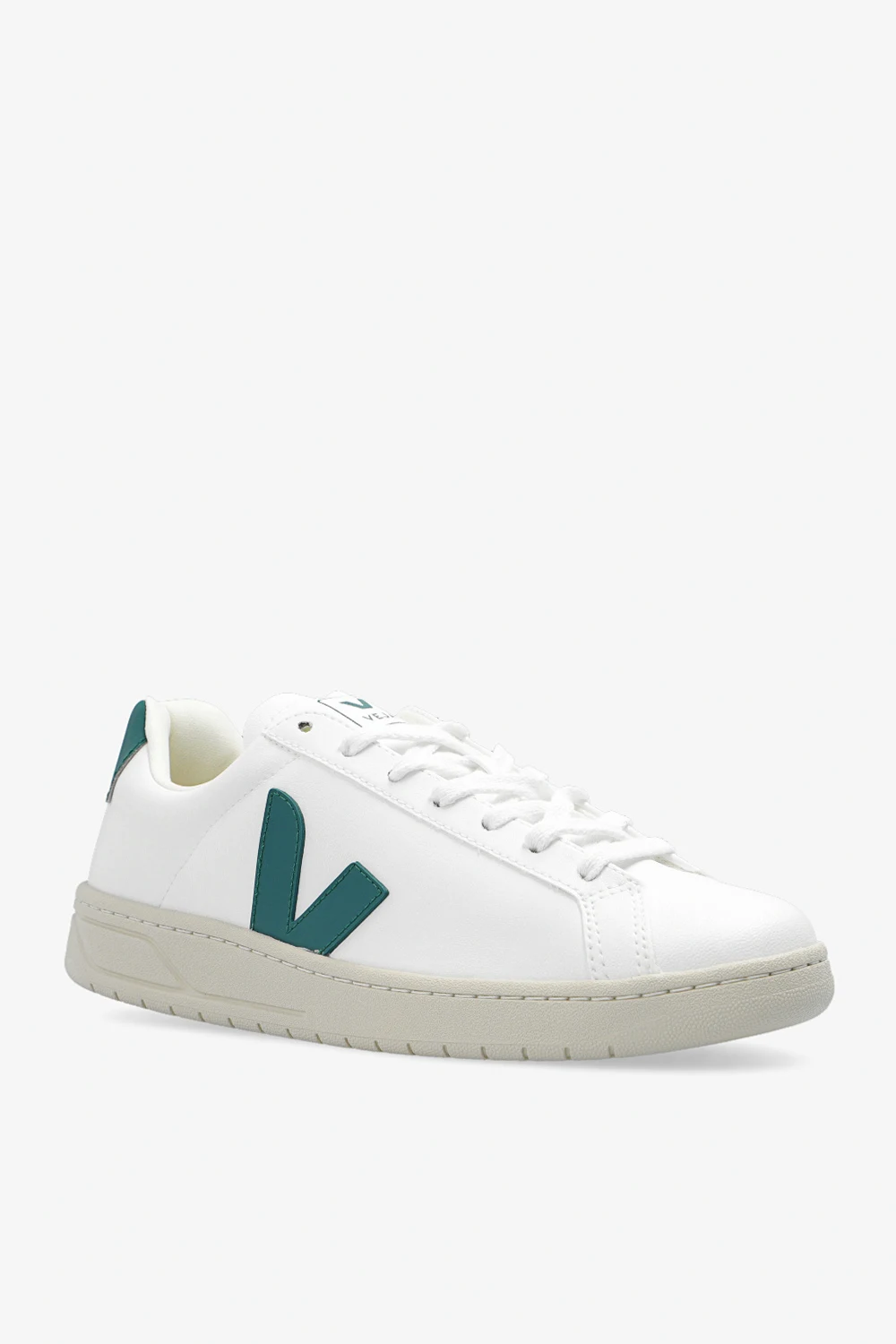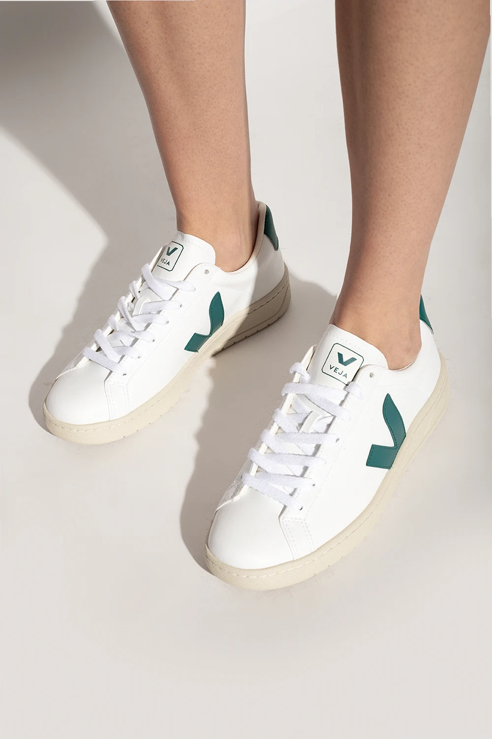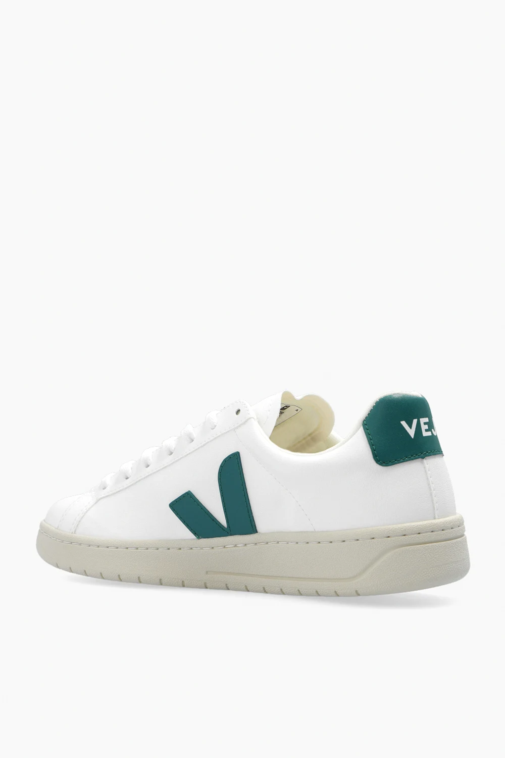 White 'Urca C.W.L.' sneakers from Veja. Crafted from organic cotton covered with resin from corn & castor oil – C.W.L. (Cotton Worked as Leather), this lace-up model features a grey logo printed on the tongue and the label’s signature V logo in green made of rubber and rice waste. The organic-sourced and recycled insole is made from sugar cane, Amazon rubber, organic cotton and recycled EVA foam. It is set on a cream rubber sole made of organic and recycled materials.