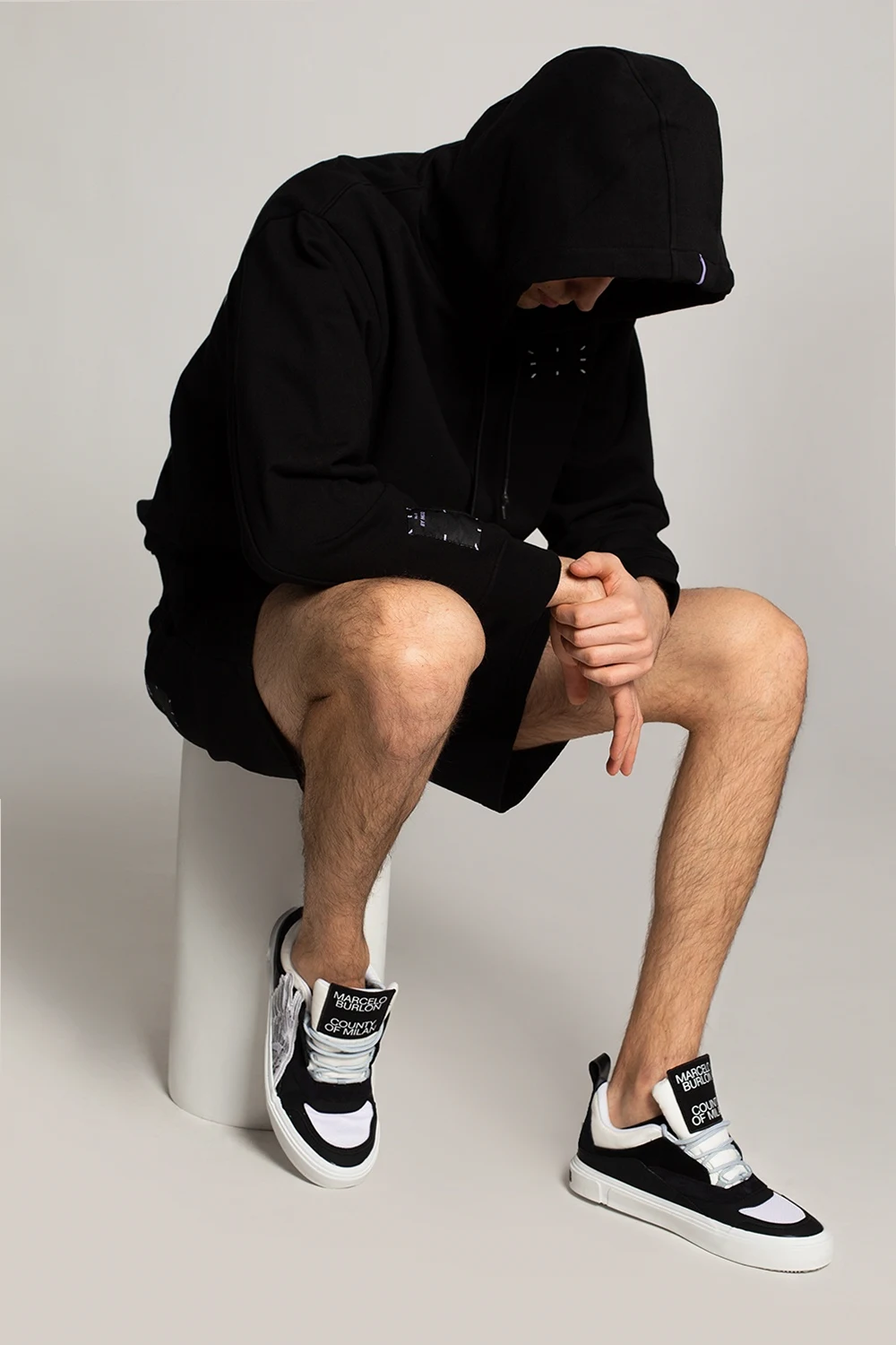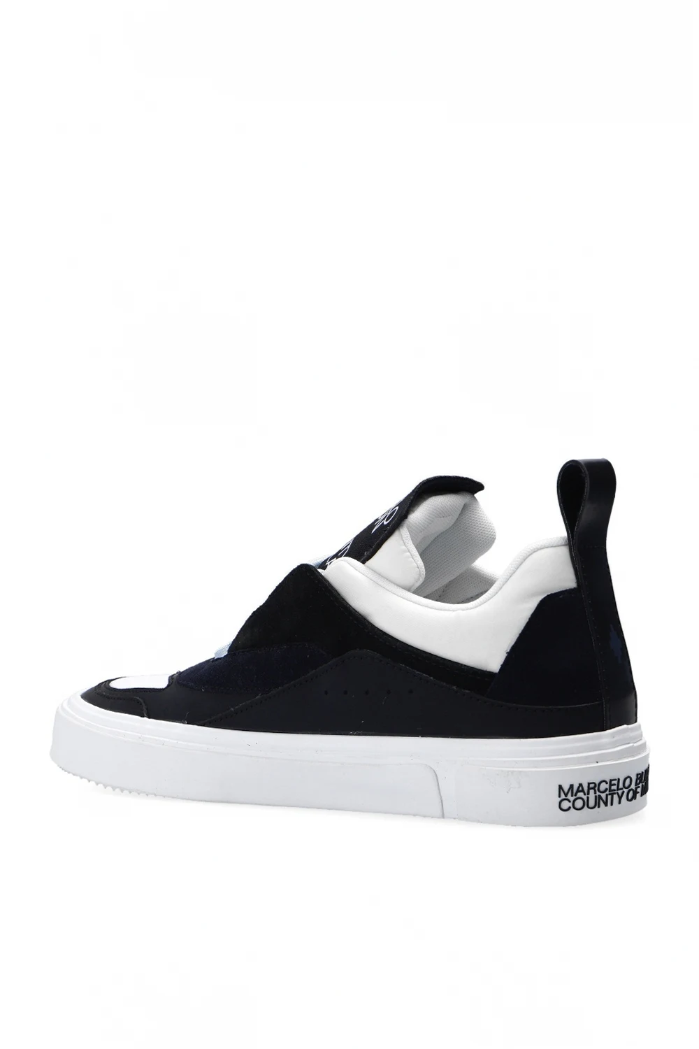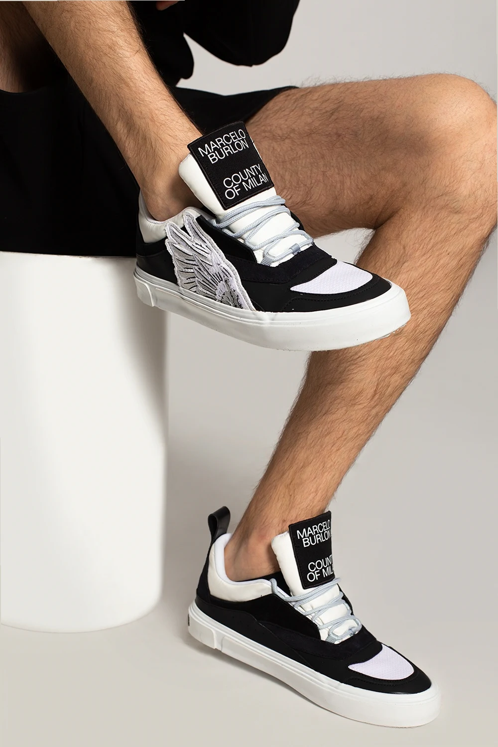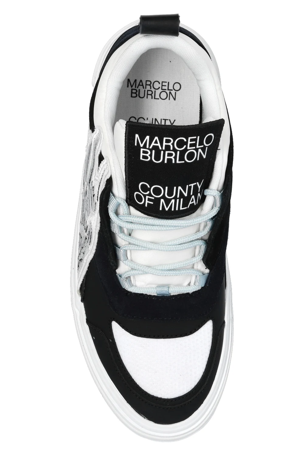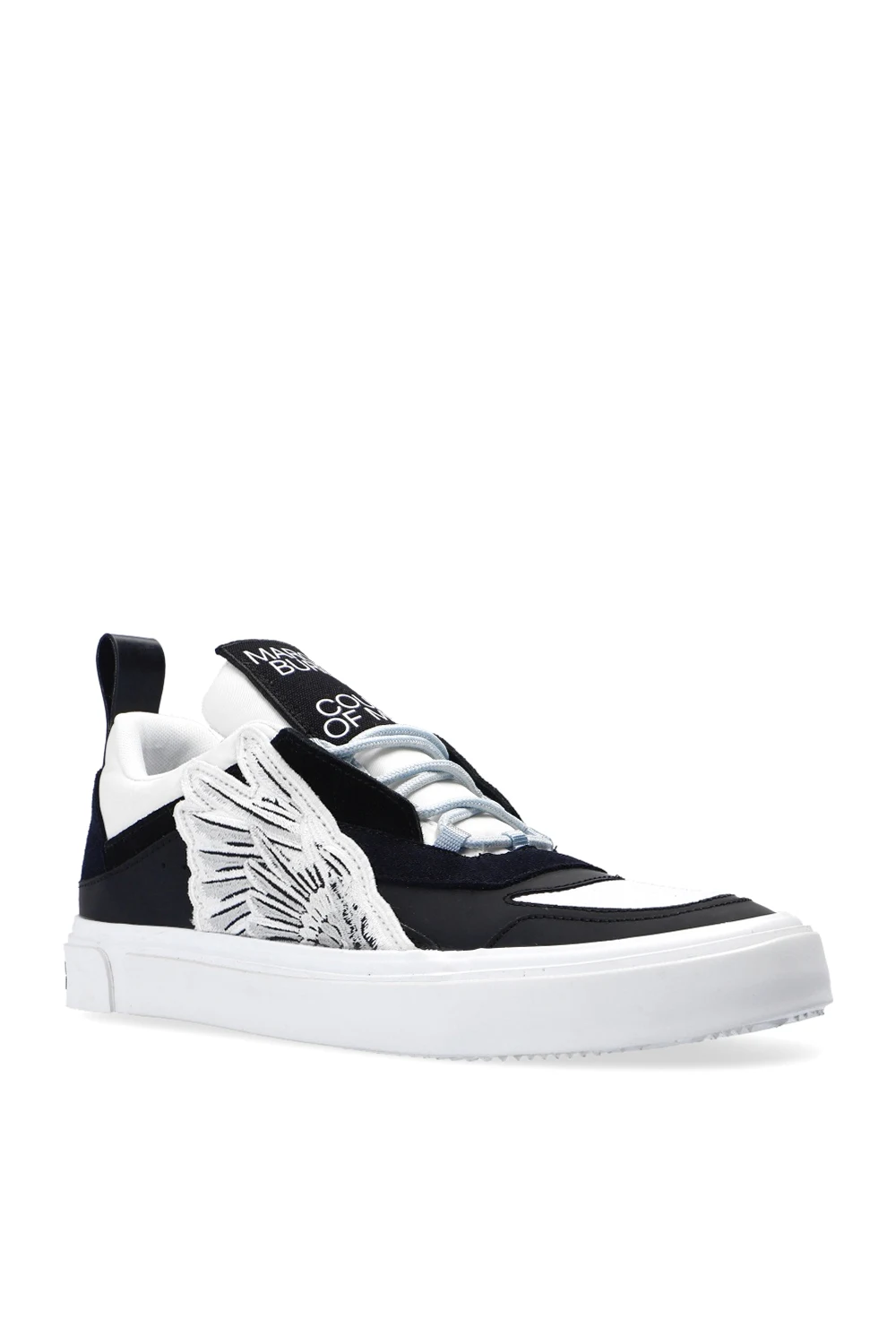 Black, white and cream platform sneakers from Marcelo Burlon. Trimmed with suede, this lace-up model features a logo patch, white and grey wing patches, sewn-on strap at the back and white rubber sole.
