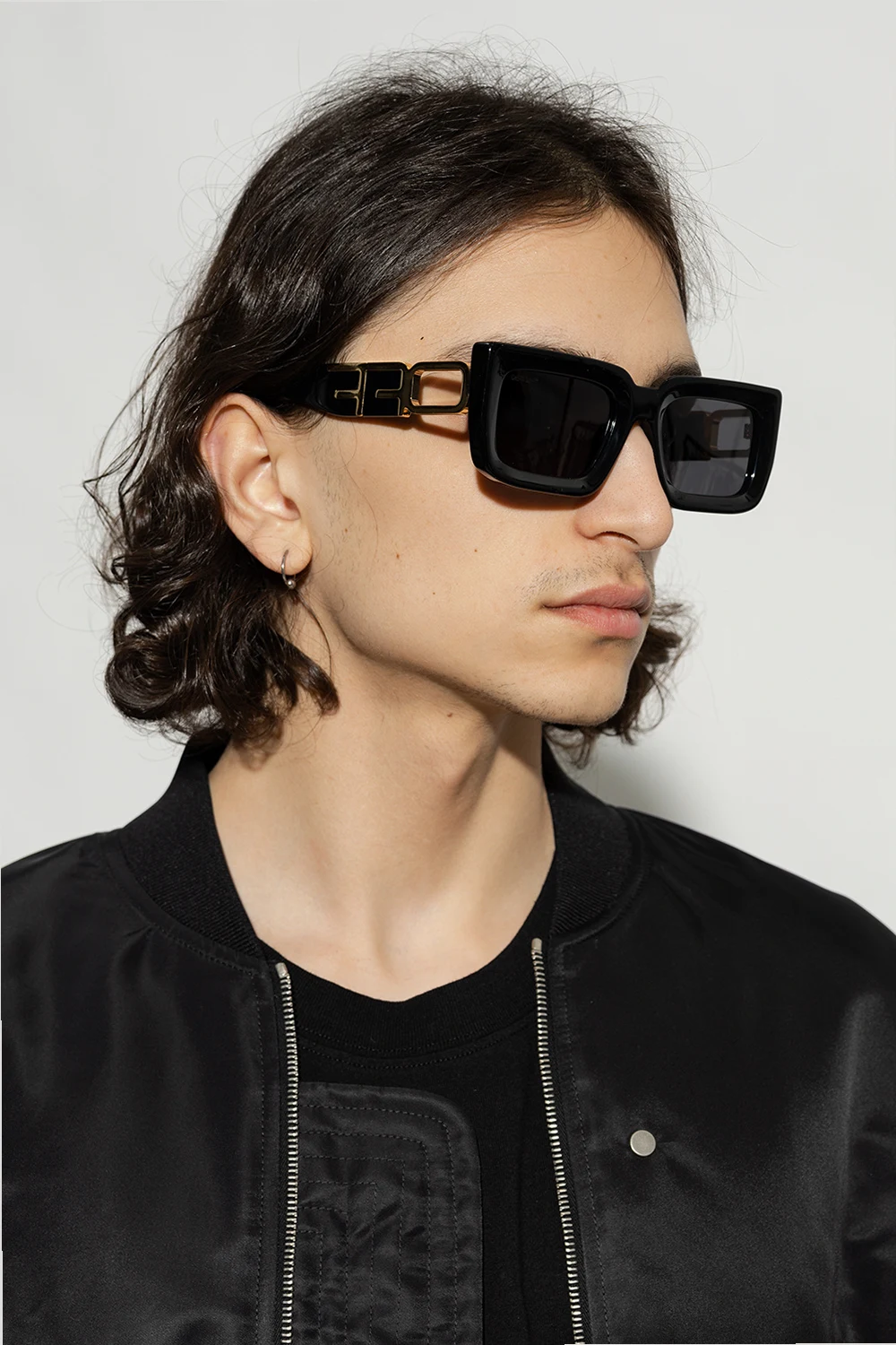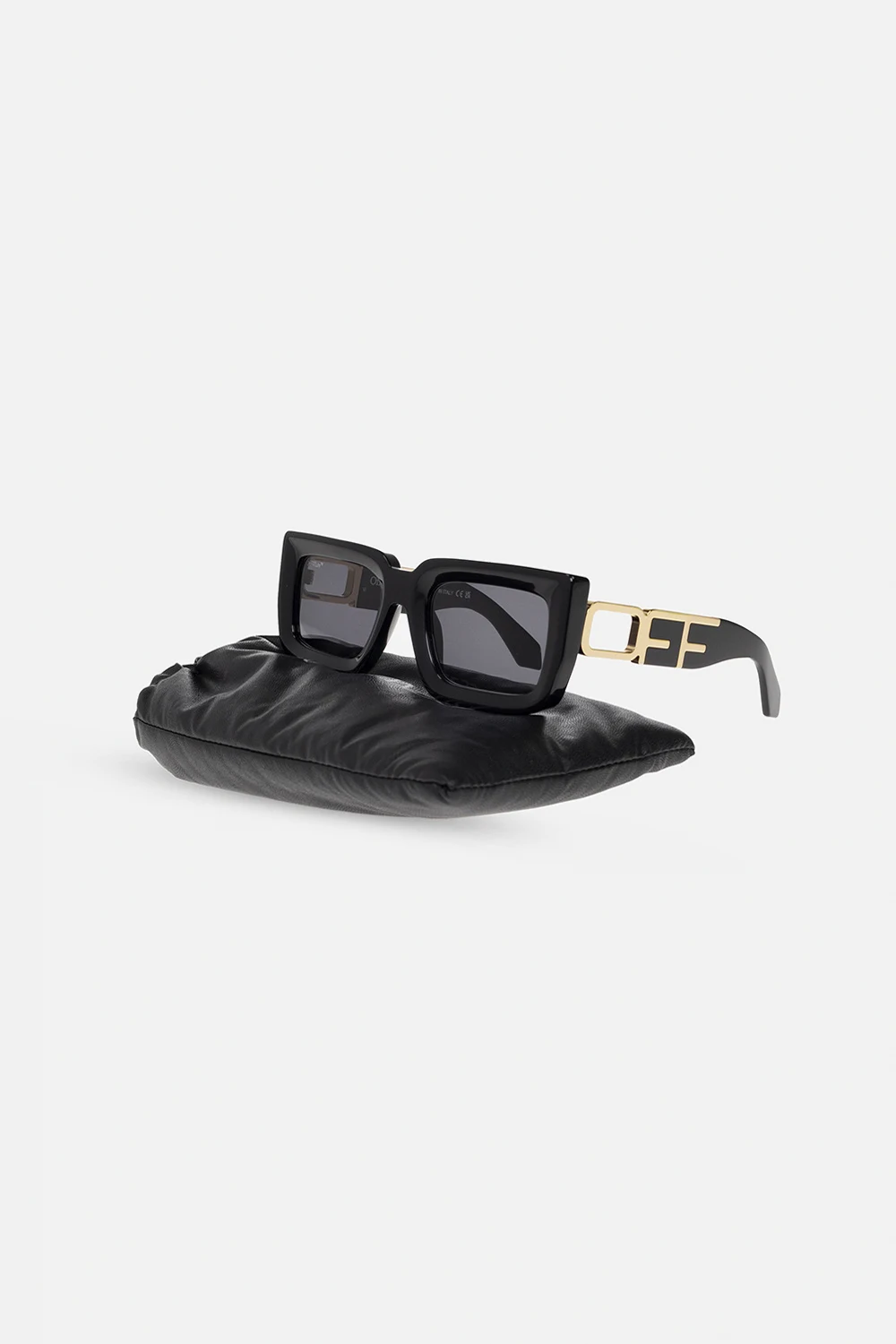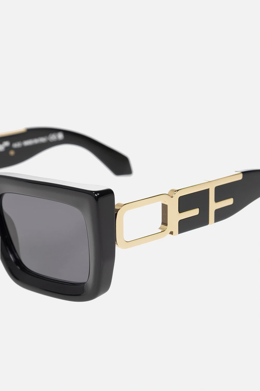 Black ‘Boston’ sunglasses from Off-White. This pair features rectangular frames, a metal logo in gold-tone and grey lenses with 100% UV protection. Comes with a case.