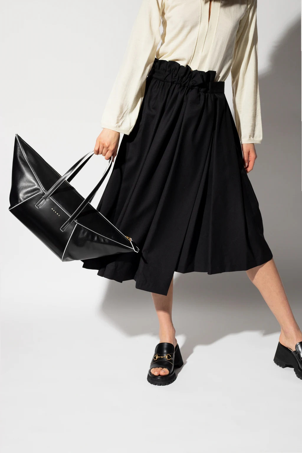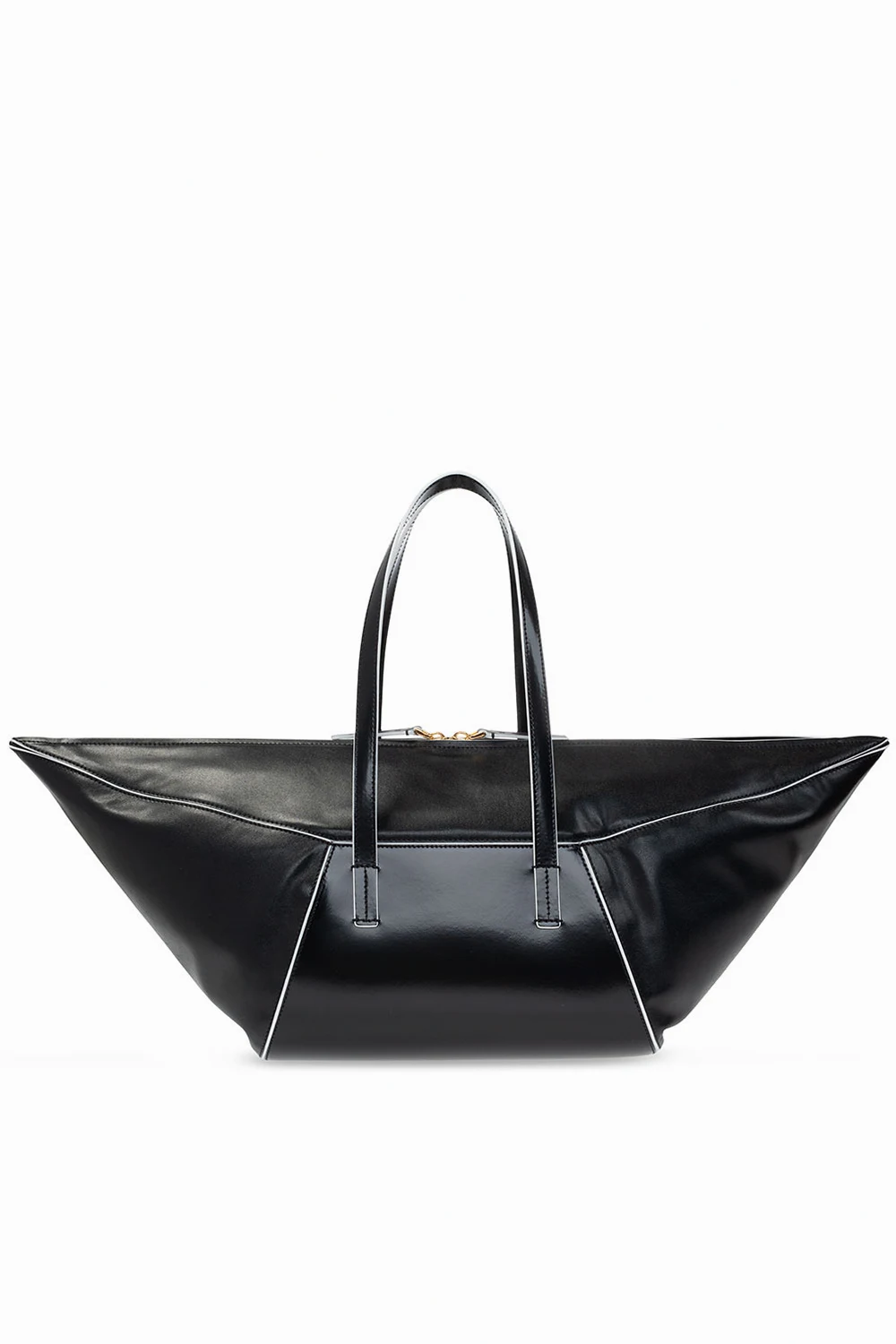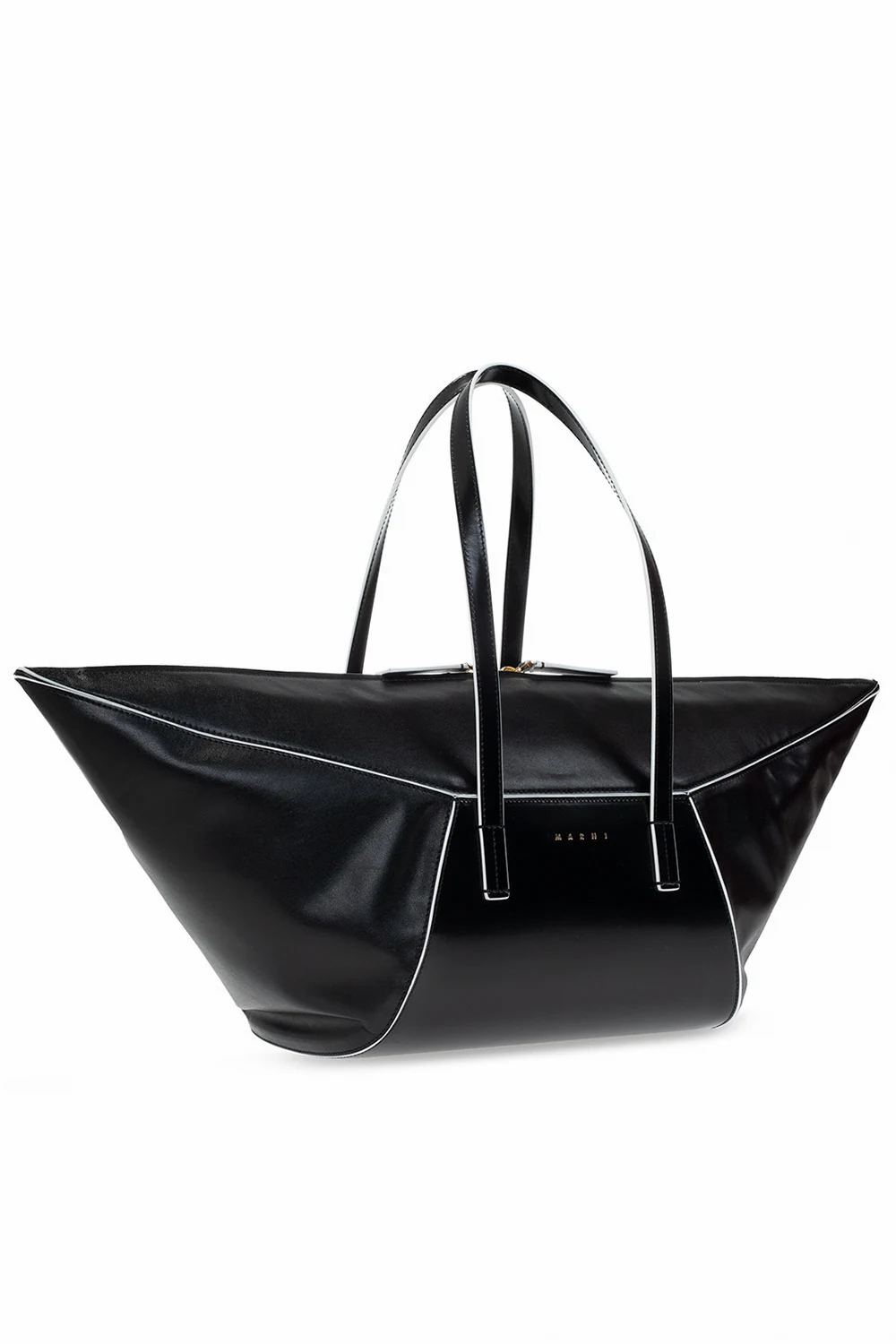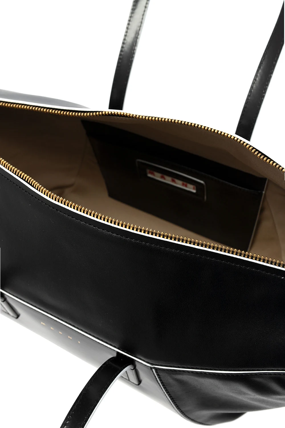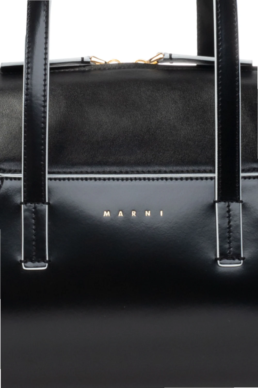 Black and white 'Torpedo’ shoulder bag from Marni. Size medium. Made of leather, this design fastens via a two-way zip and features an embossed gold-tone logo on the front, two half-round handles and one internal compartment with a slip pocket.