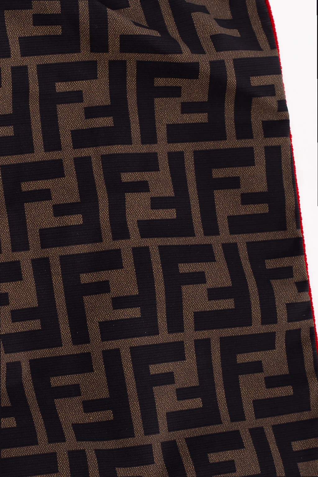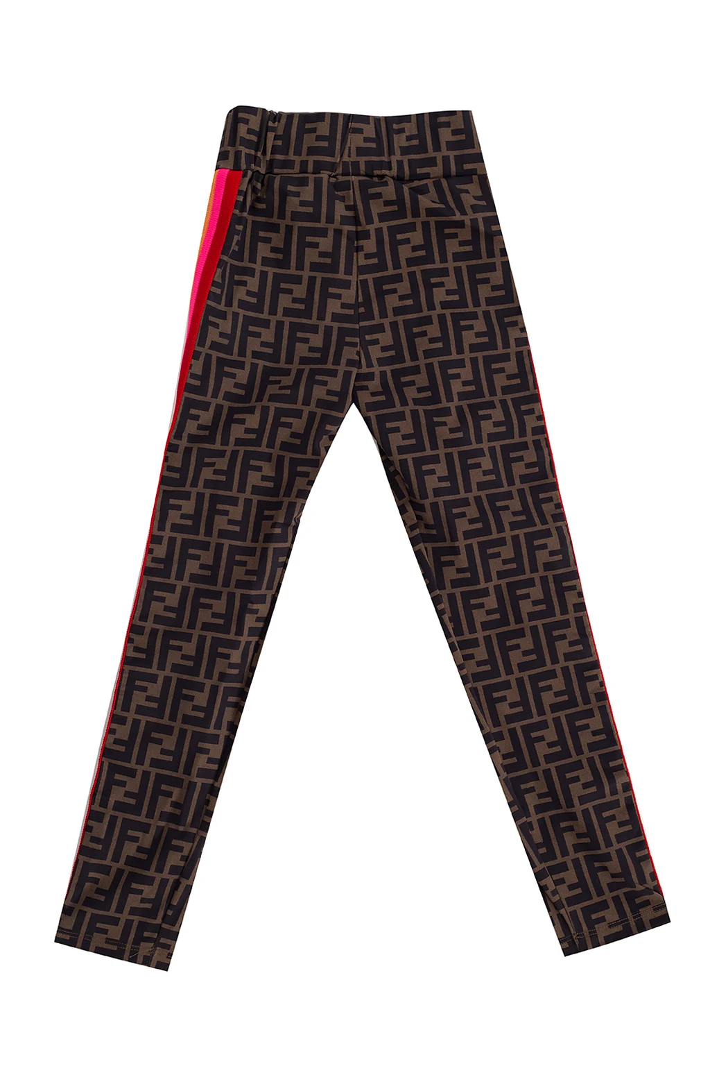 Brown and black leggings from Fendi. This design features an elastic waistband, logo print, logo embroidery and multicolored stripes.