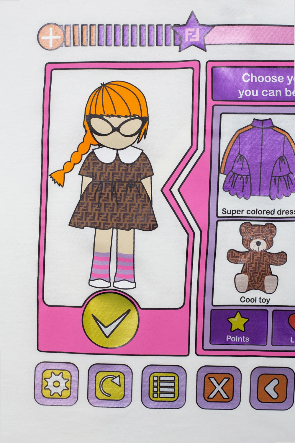 White oversize crewneck T-shirt from Fendi Kids. Crafted from cotton, this short sleeve design is decorated with a multicolored print.