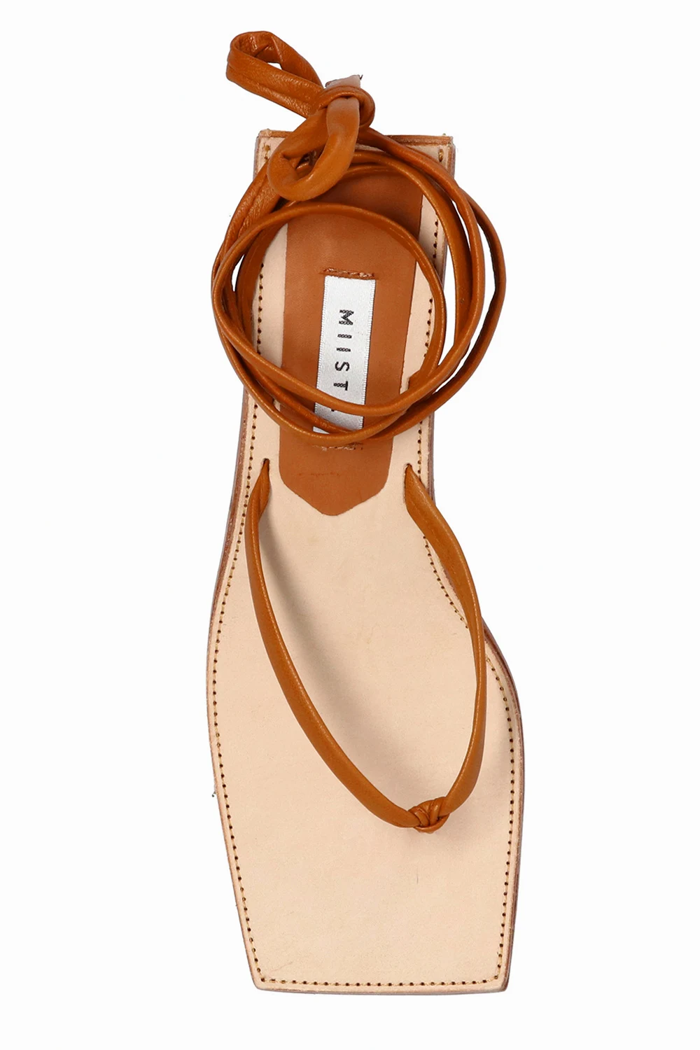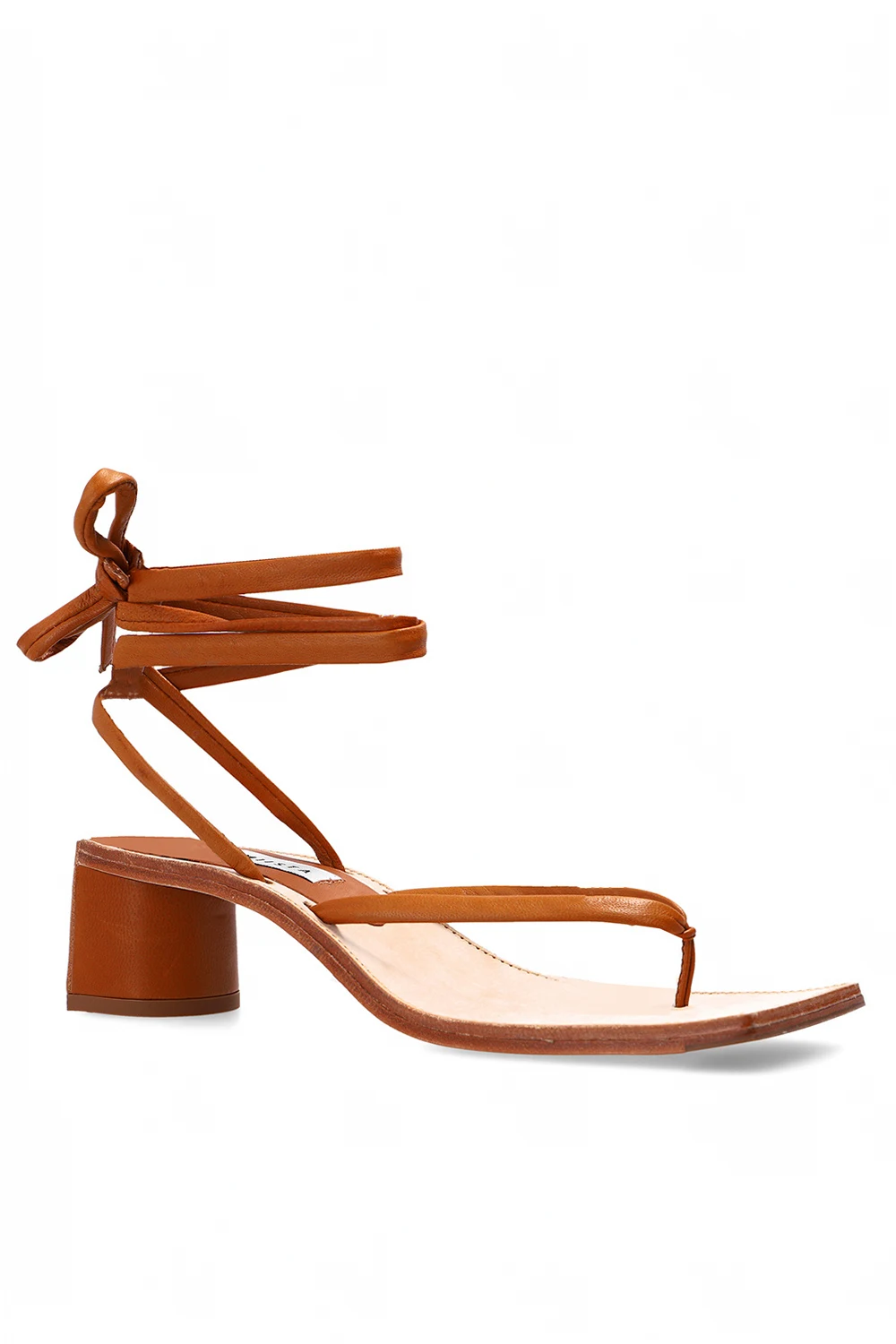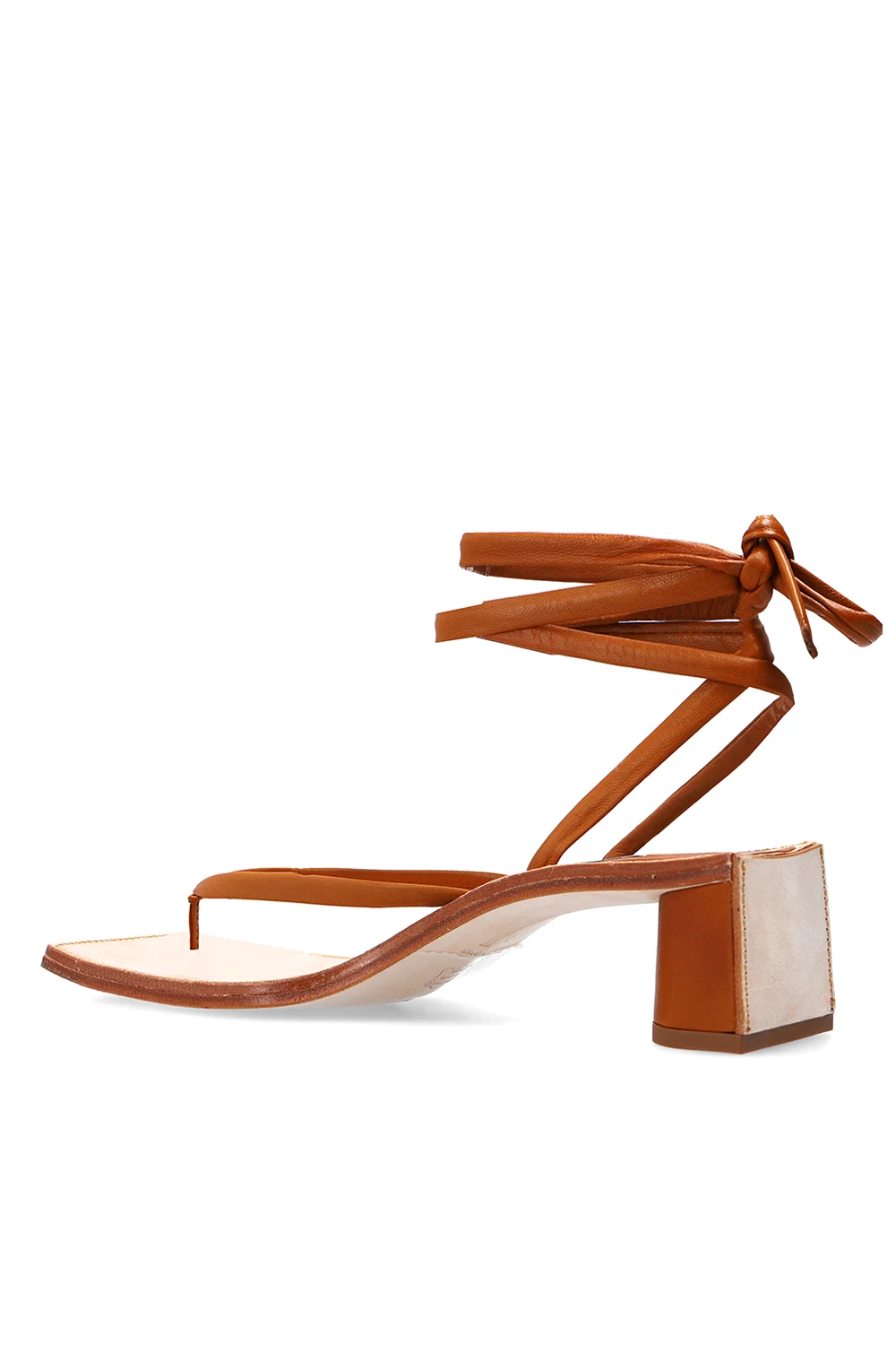 Light brown ‘Leslie’ heeled flip-flops from Miista. Crafted from leather, this pair sits on a beige leather sole and features a decorative self-tie fastening.