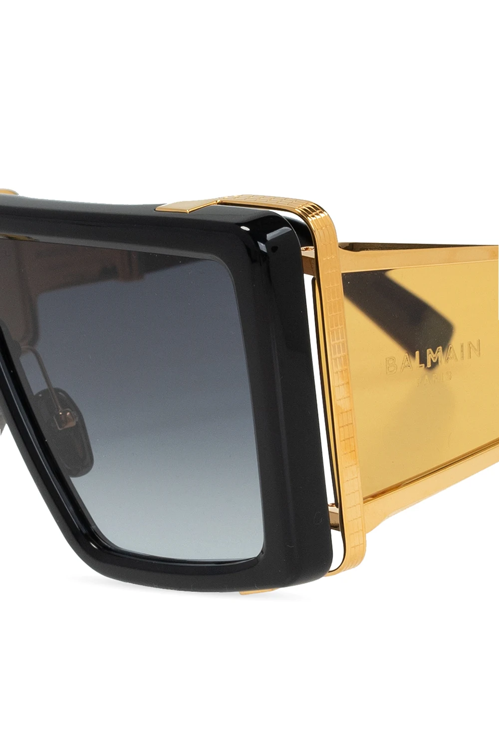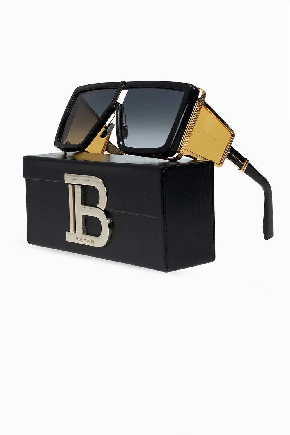 Black ‘Wonder Boy’ sunglasses from Balmain. Decorated with a gold-tone logo embossed on the temples, this model features certificated black lenses with 100% UVA/UVB protection and comes with a branded case in black.