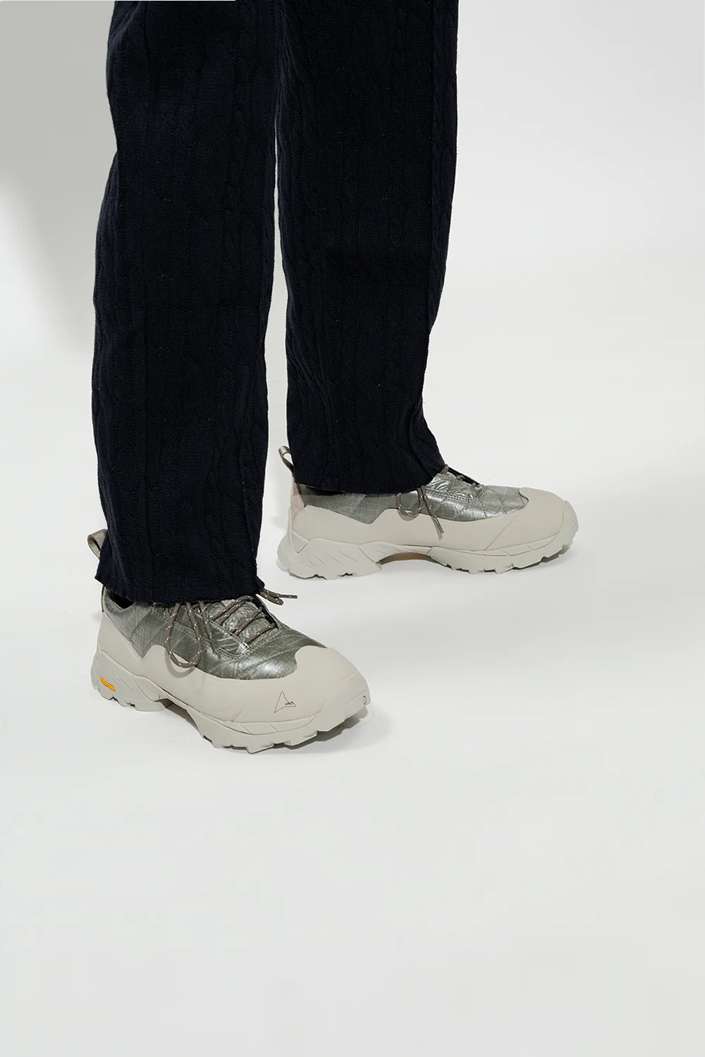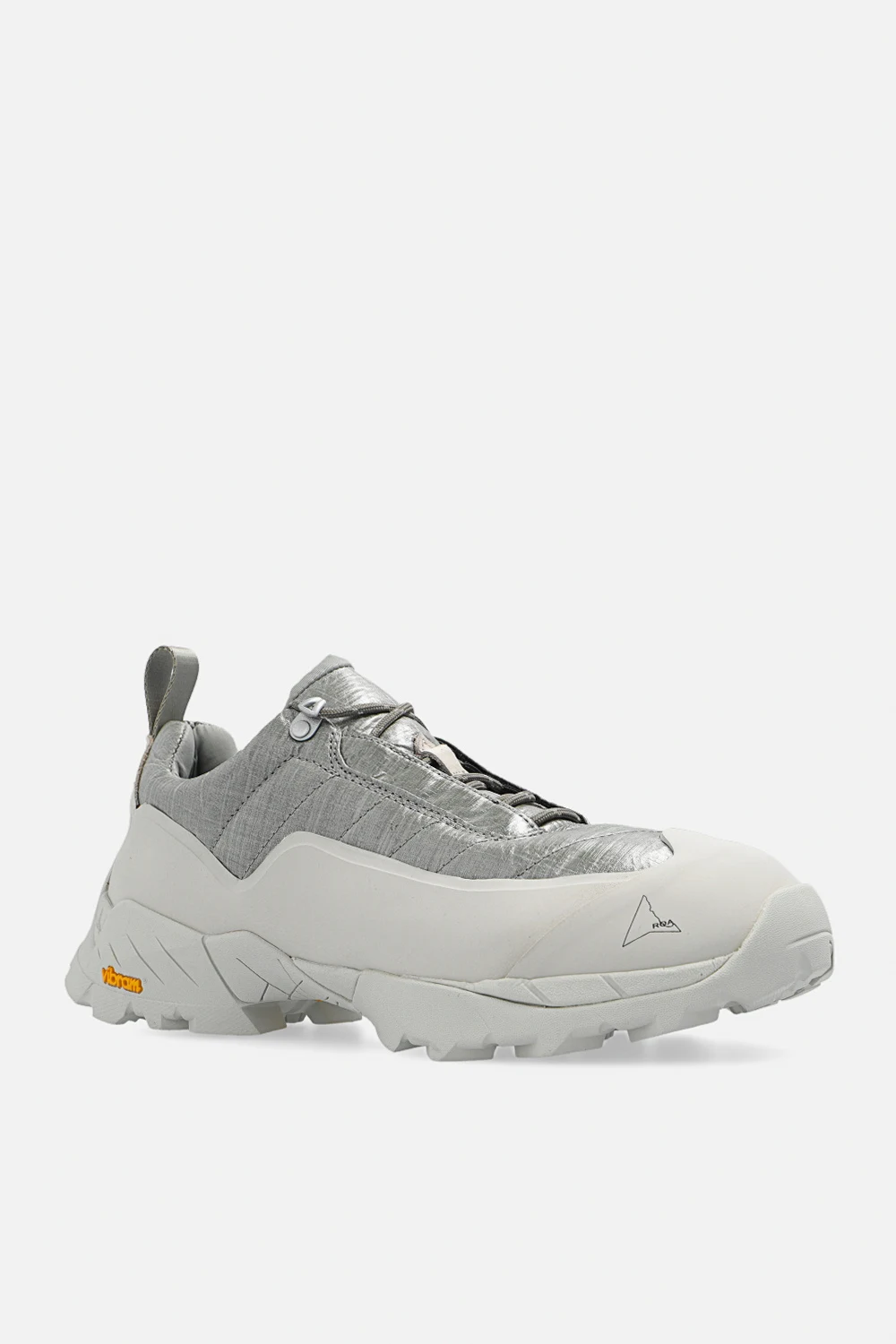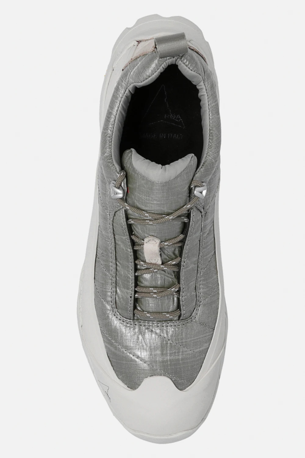 Grey ‘Khatarina’ sneakers from ROA. Crafted from durable technical nylon with a metallic finish, this lace-up model features the brand's logo, rubber trims and a light grey Vibram®Megagrip tread pattern sole which ensures maximum grip on the most uneven surfaces.