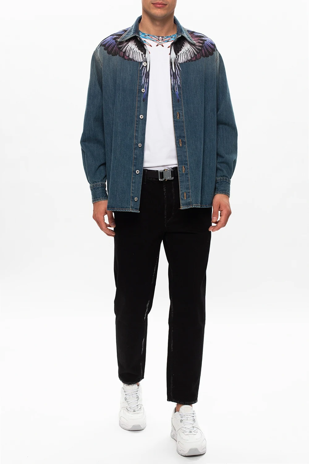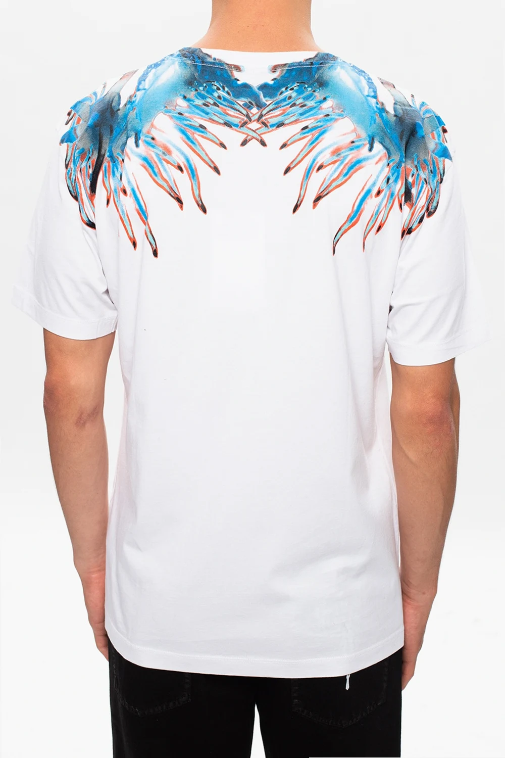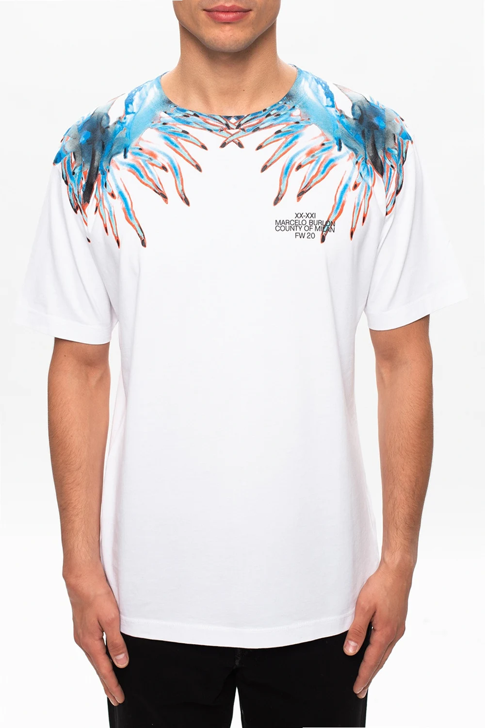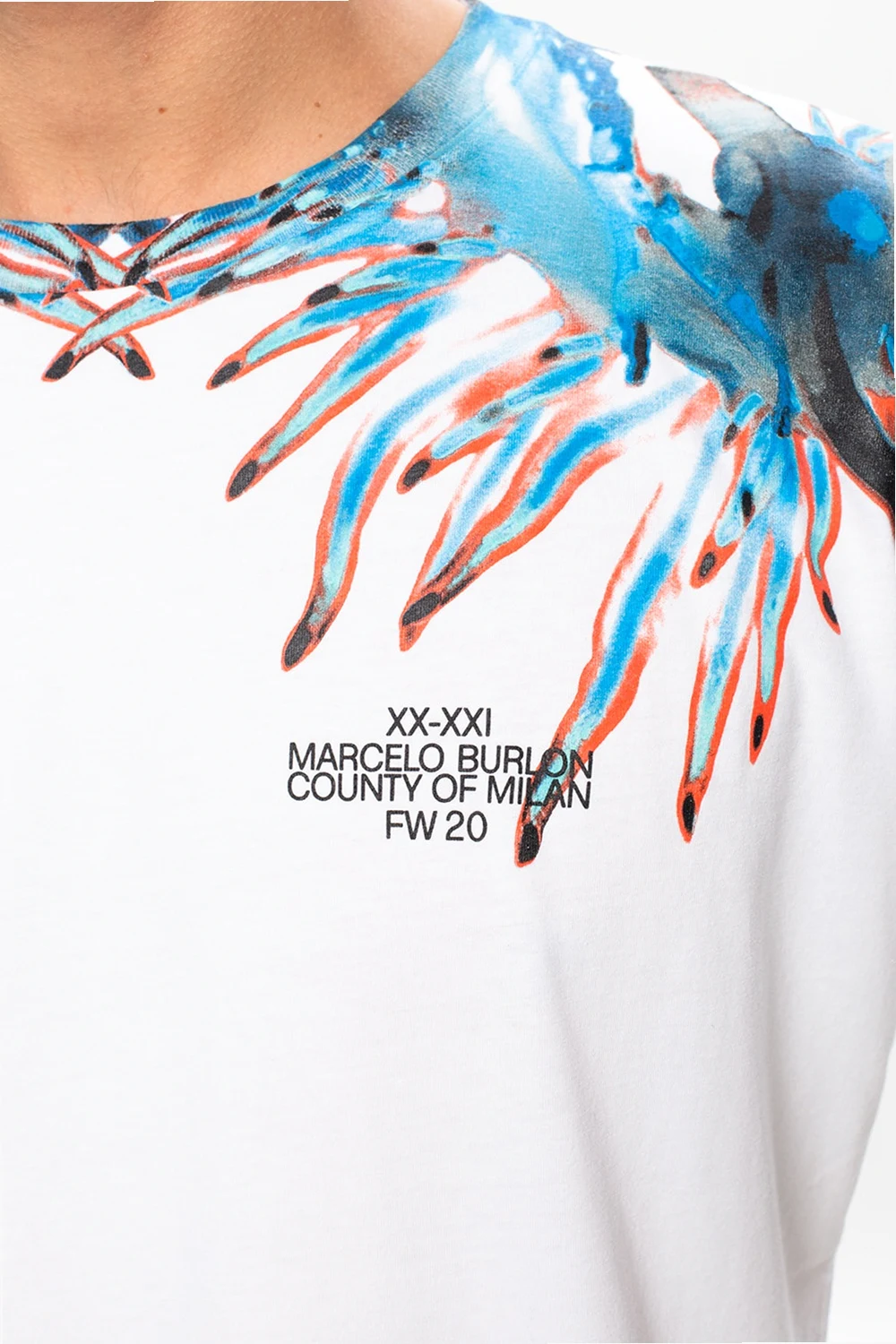 White crewneck T-shirt from Marcelo Burlon. Cut from cotton in regular fit, this style is adorned with a colourful graphic print accompanied by black logo detail for the designer recognition.