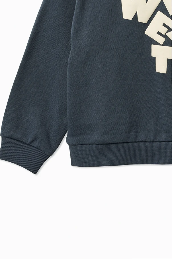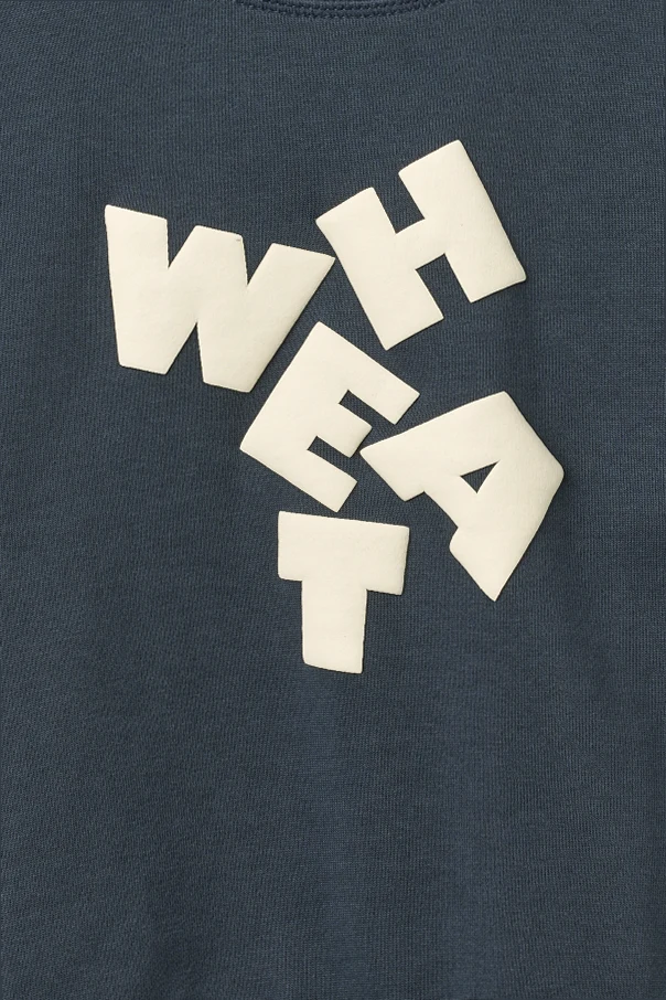 Die verwendete hochwertige Baumwolle umschmeichelt die Haut mit Weichheit und garantiert Langlebigkeit sowie ein angenehmes Tragegefühl – auch für empfindliche Kinderhaut. Ein besonderer Blickfang ist der mittig platzierte, cremefarbene „WHEAT“-Print mit außergewöhnlichen, dreidimensionalen Buchstaben – ein äußerst charakteristisches und einzigartiges Motiv.
