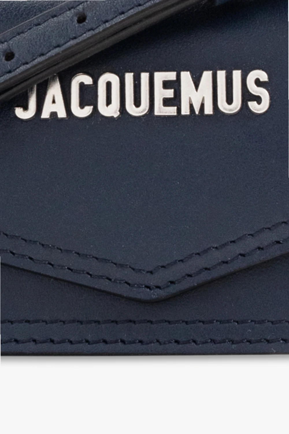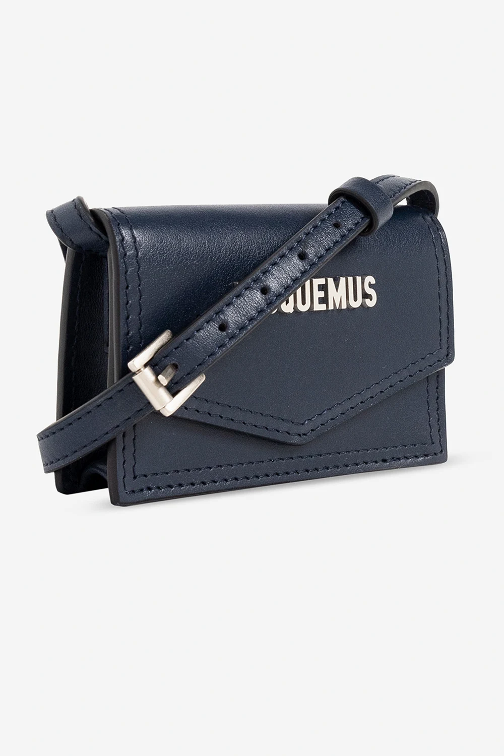 Navy blue ‘Le Porte Azur’ pouch from Jacquemus. Made from leather, this design secures with a snap and showcases a metal logo plaque on the front, an adjustable shoulder strap, silver-tone metal hardware and one internal compartment.