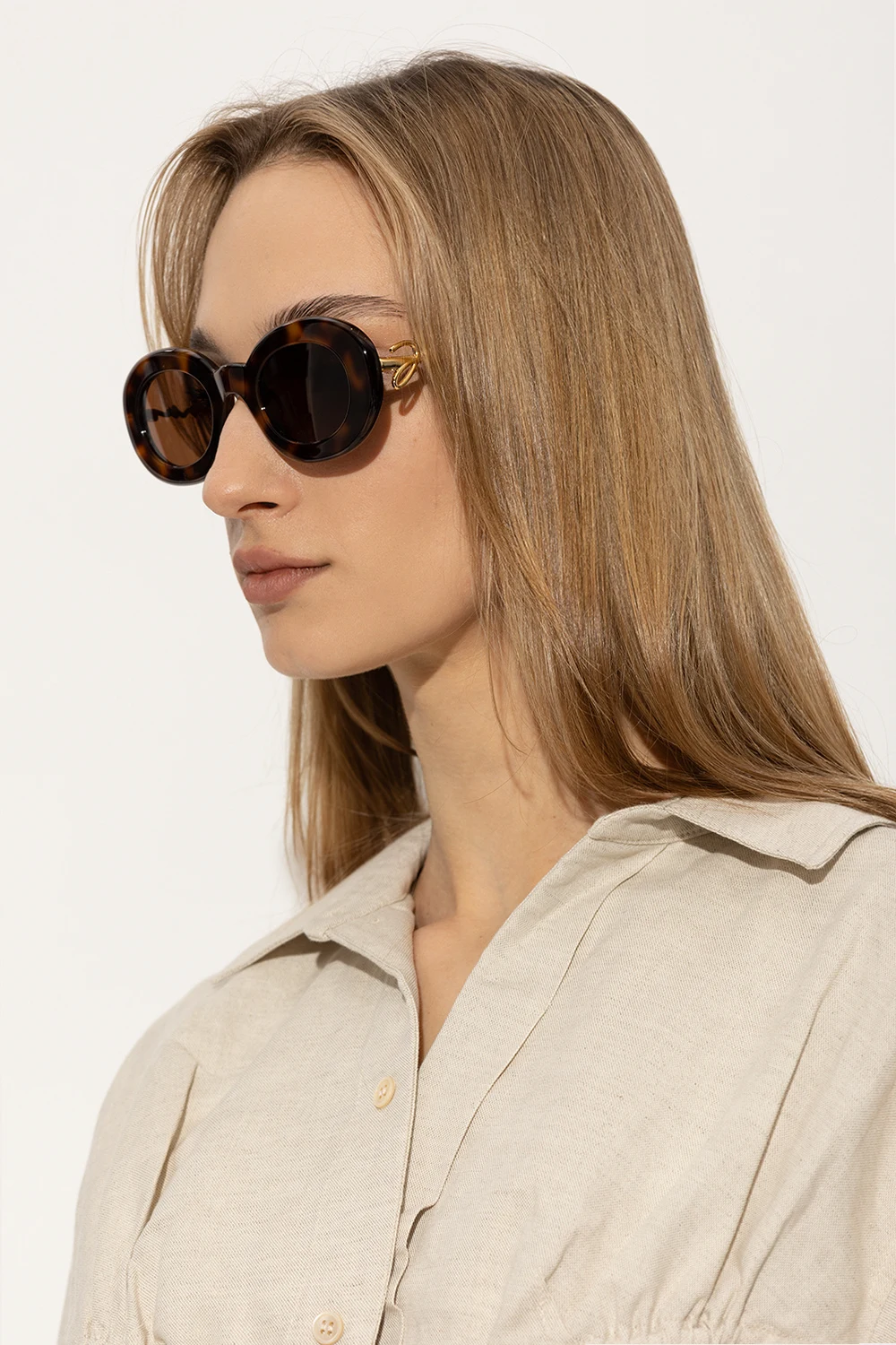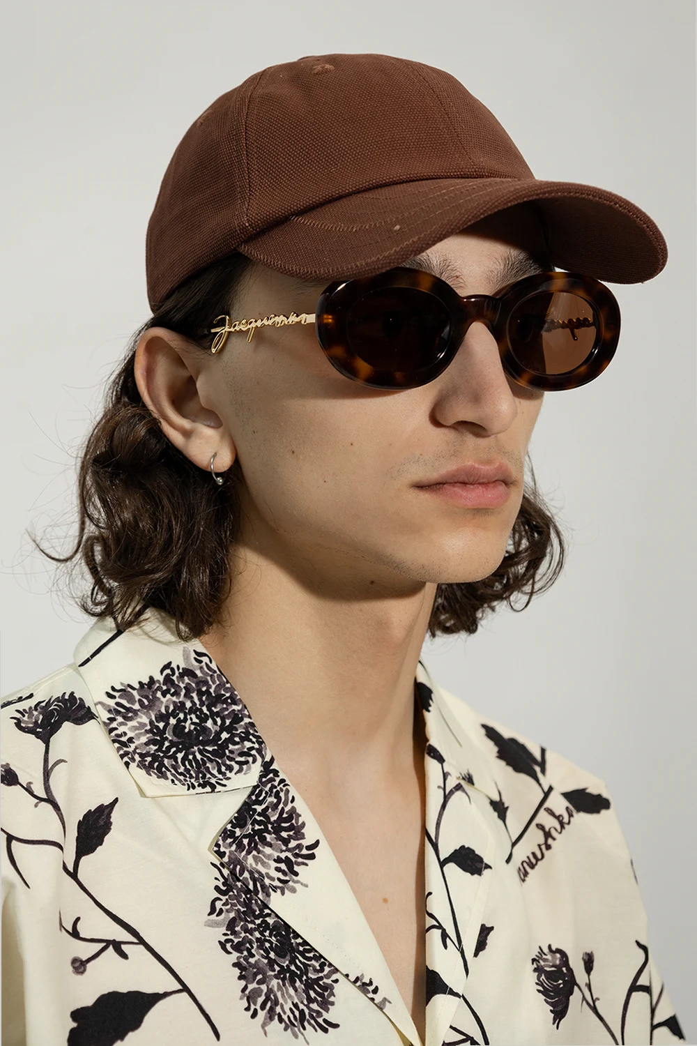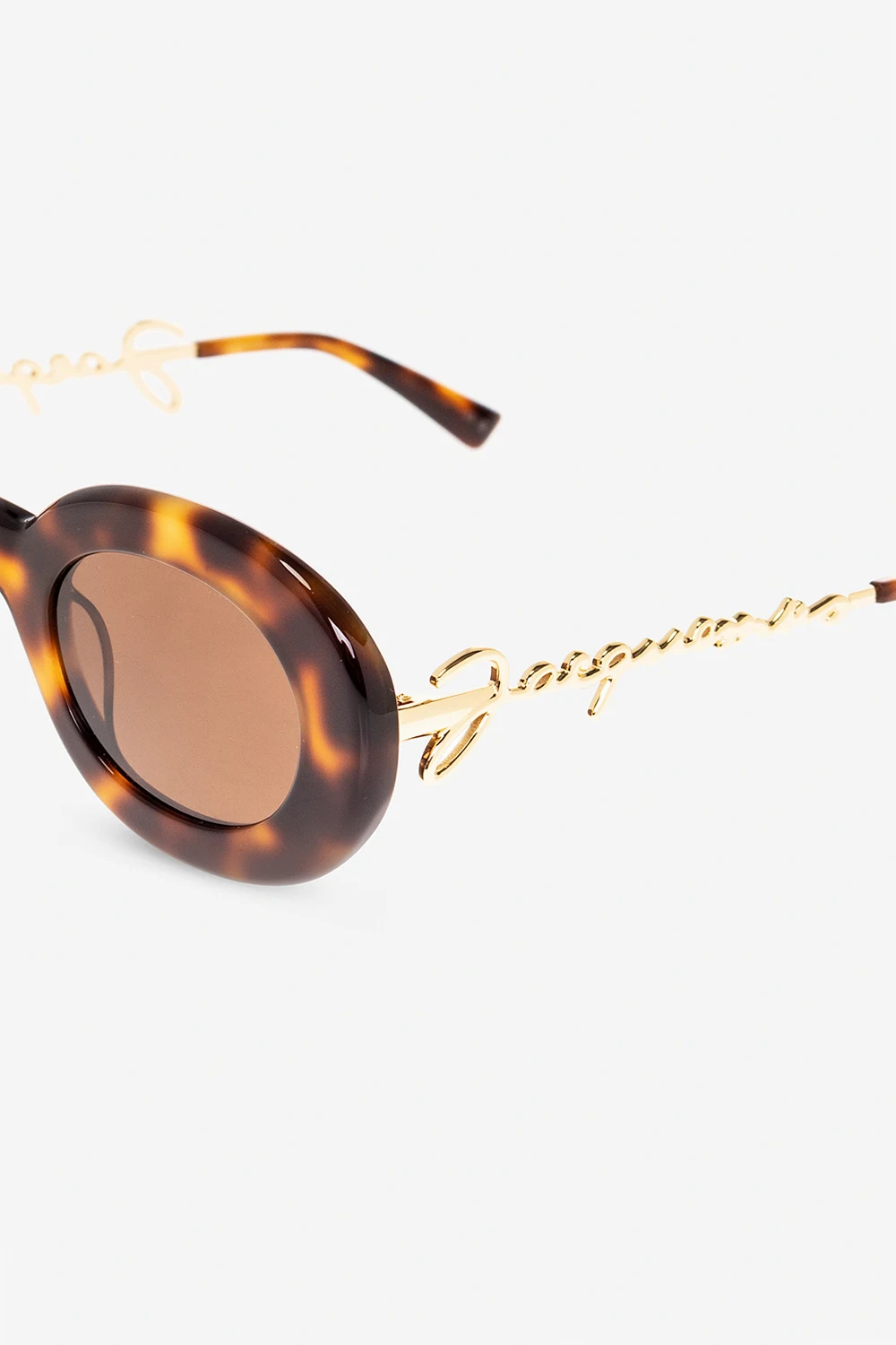 Brown and black ‘Pralu’ oval sunglasses from Jacquemus. Emblazoned with gold-tone logo hardware on the temples, this tortoiseshell model features brown lenses with 100% UV protection. Case included.