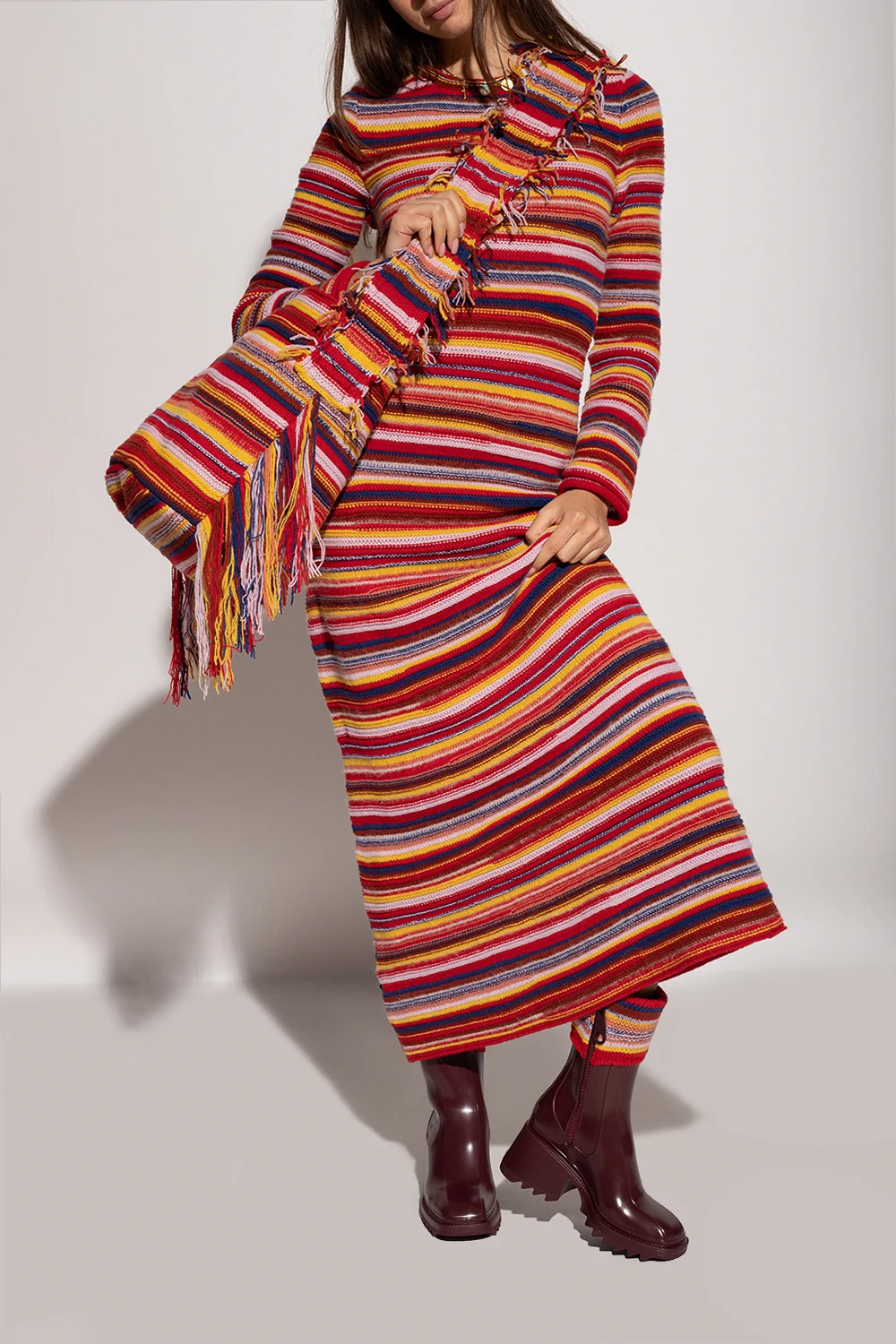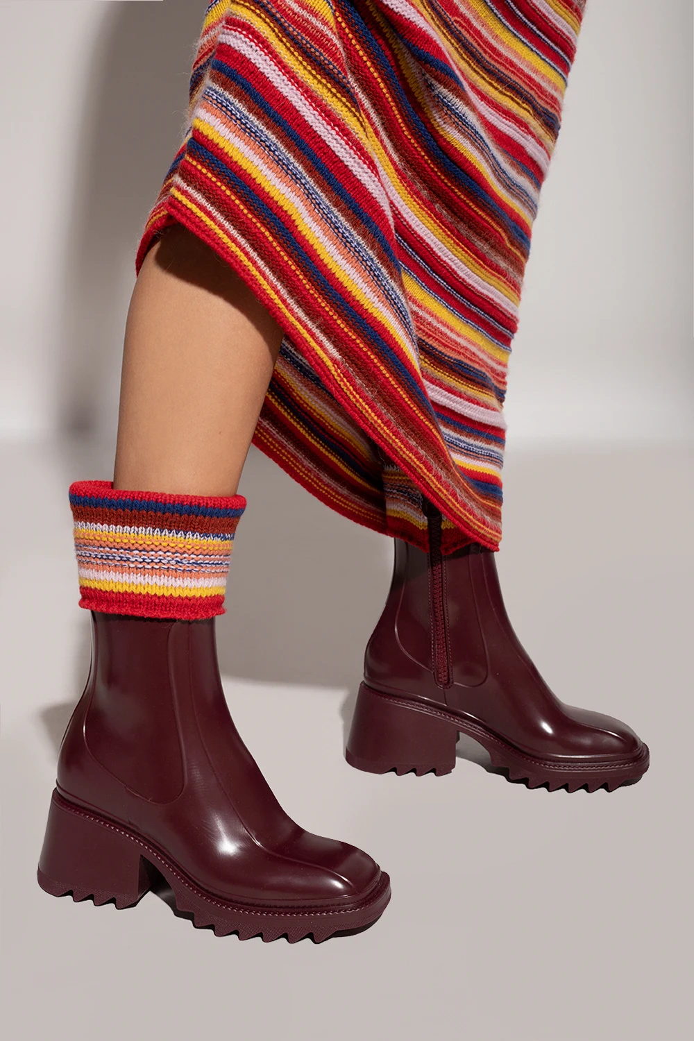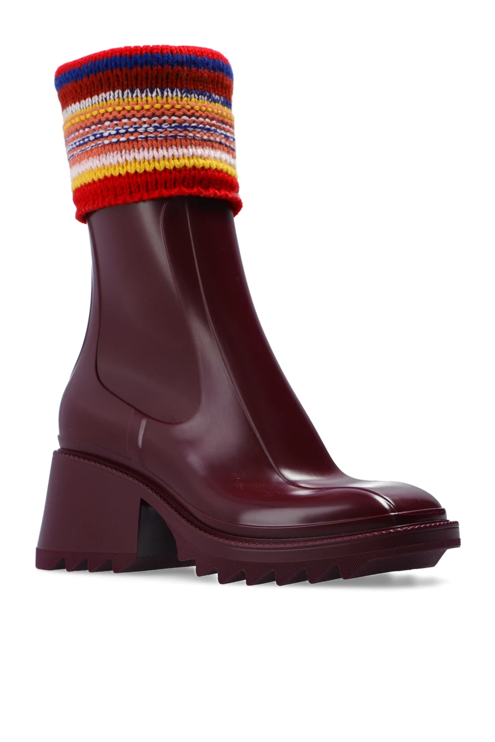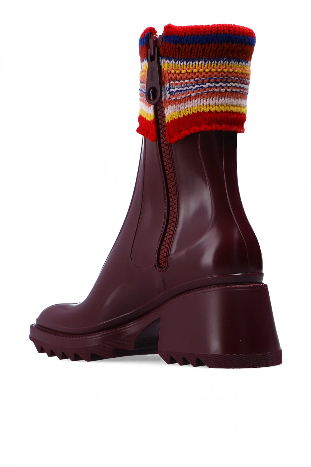 Maroon ‘Betty’ ankle boots from Chloé. Fastened with a side zip, this model features a multicolored knitted fabric and a maroon rubber sole.