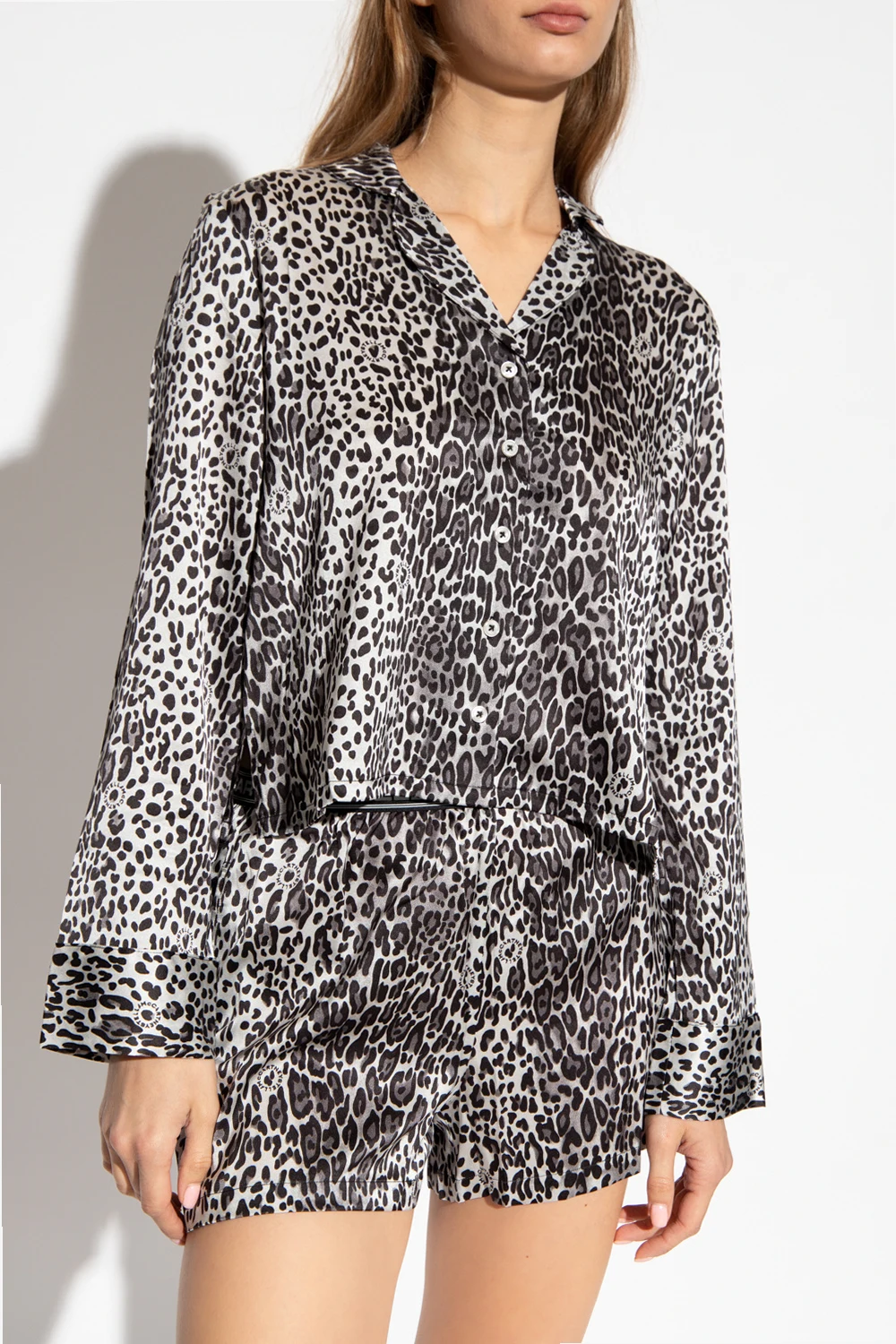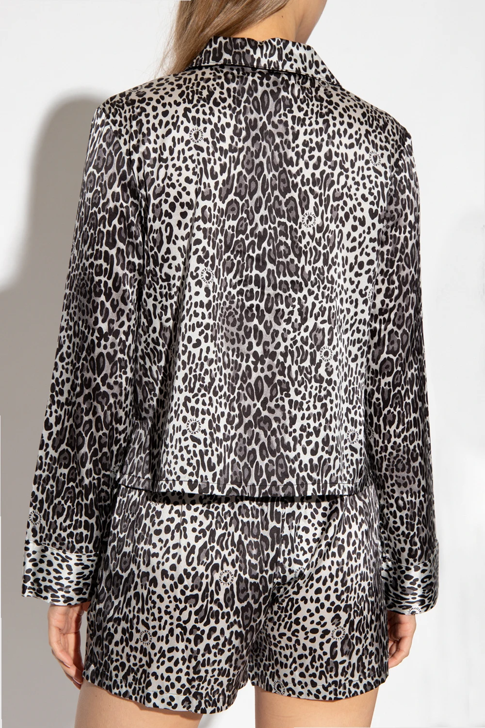Grey and black pyjama top from Stella McCartney. Crafted from silk, this style features an animal motif accompanied by a logo, button fastenings and long sleeves with button cuffs.