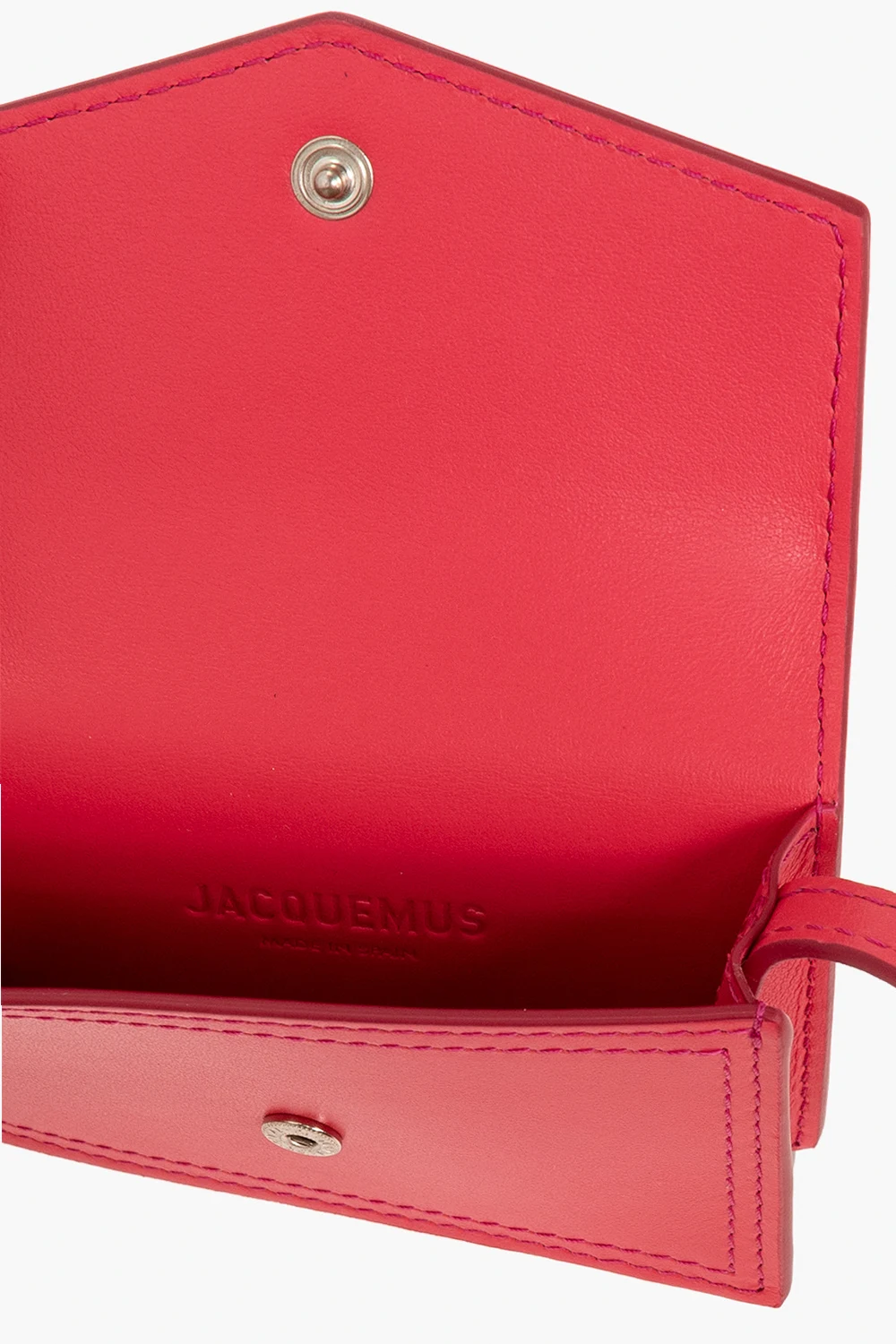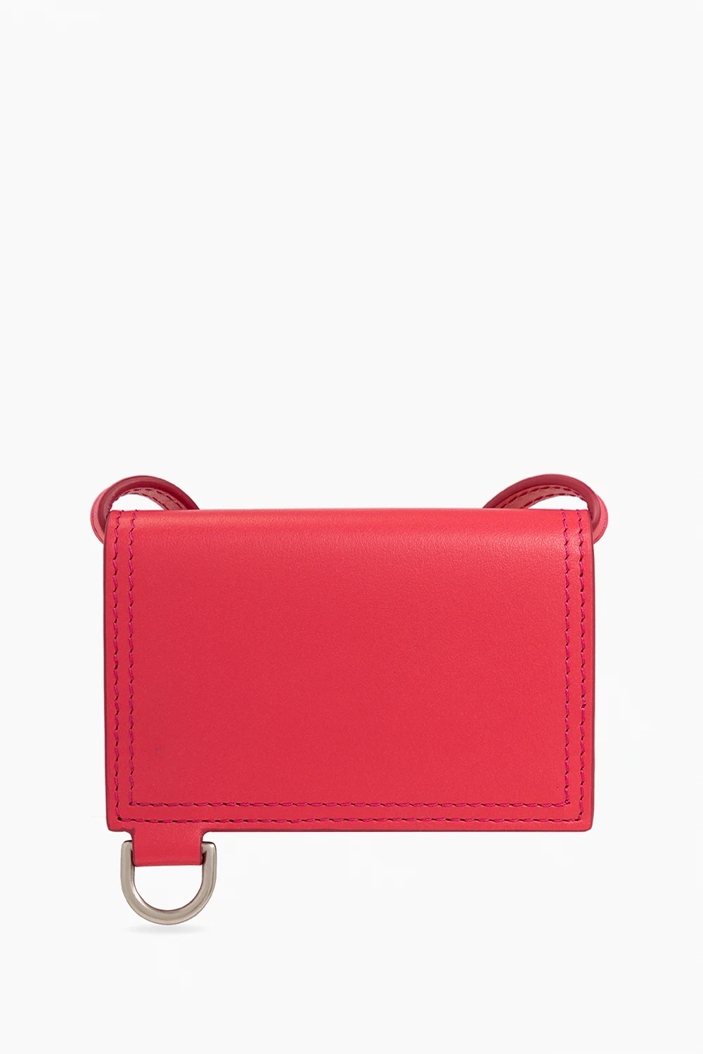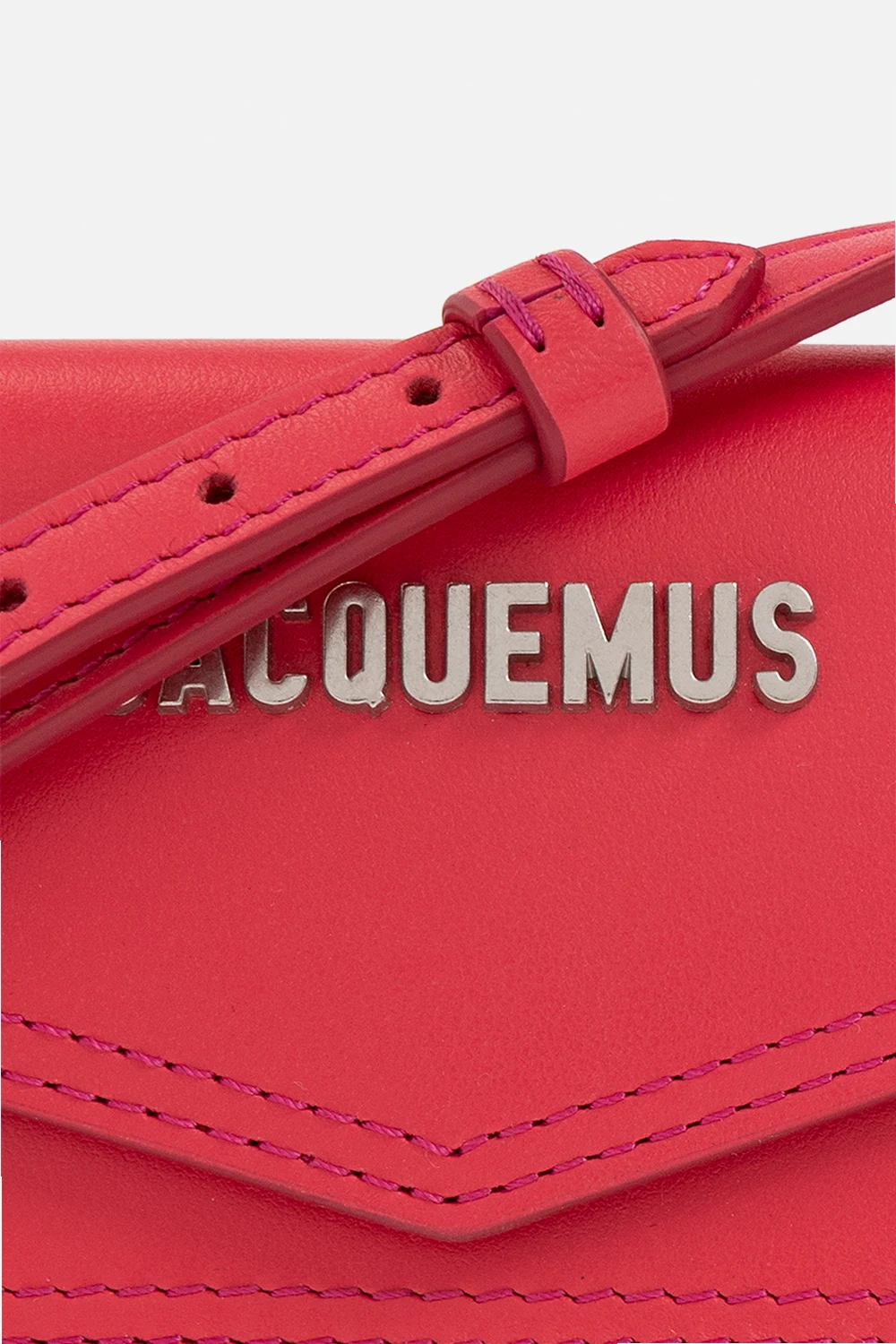 Dark pink ‘Le Porte Azur’ pouch from Jacquemus. Made from leather, this design secures with a snap and showcases a metal logo plaque on the front, an adjustable shoulder strap, silver-tone metal hardware and one internal compartment.