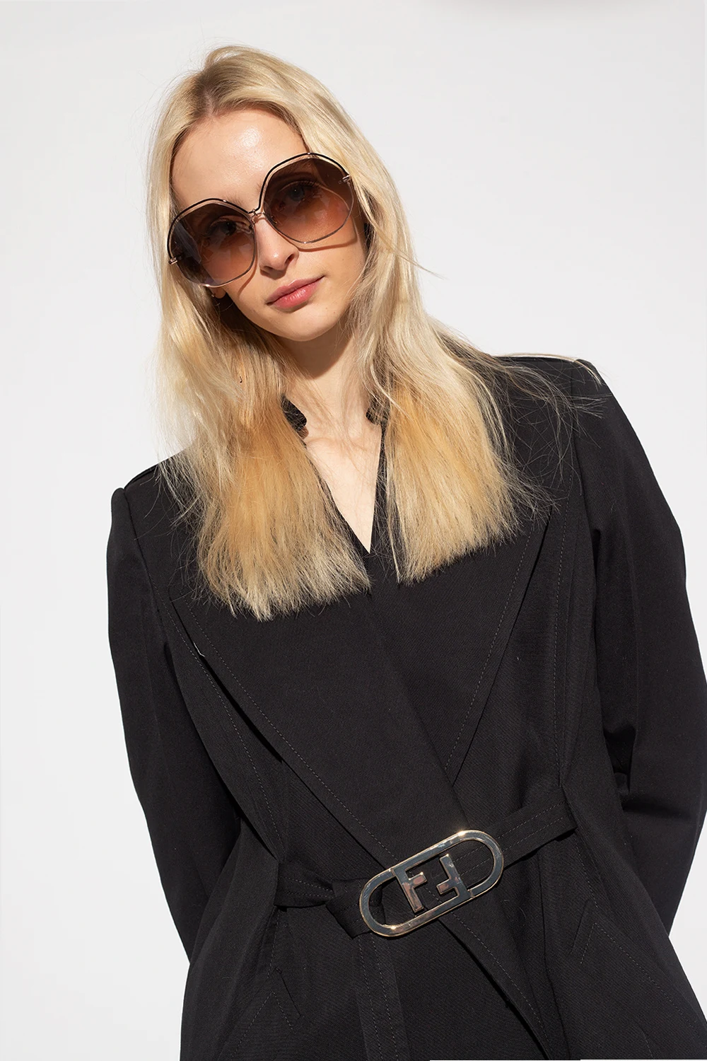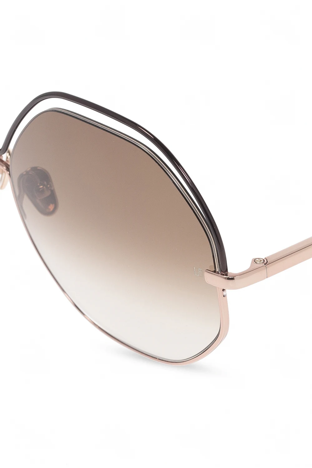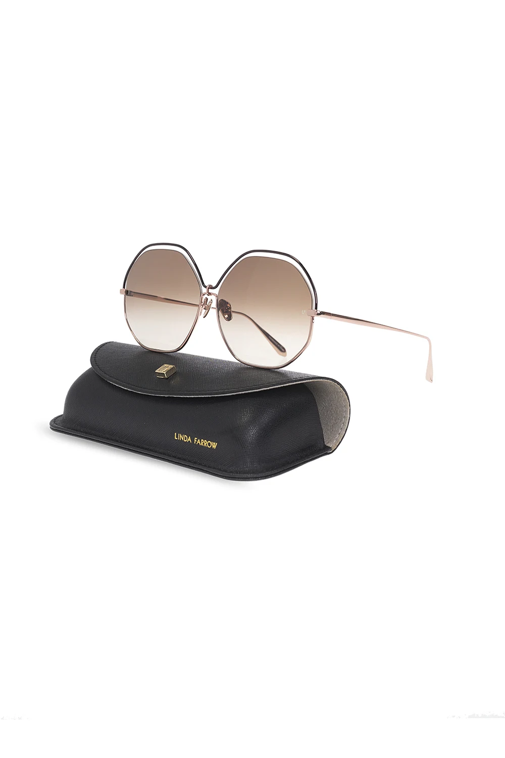 Black and rose gold-tone ‘Lorena’ sunglasses from Linda Farrow. Handcrafted in Japan of titanium plated with 22-carat rose gold, this pair features ZEISS technology gradient brown lenses for optimum clarity and UV protection. It comes with a black protective case with the brand's logo.