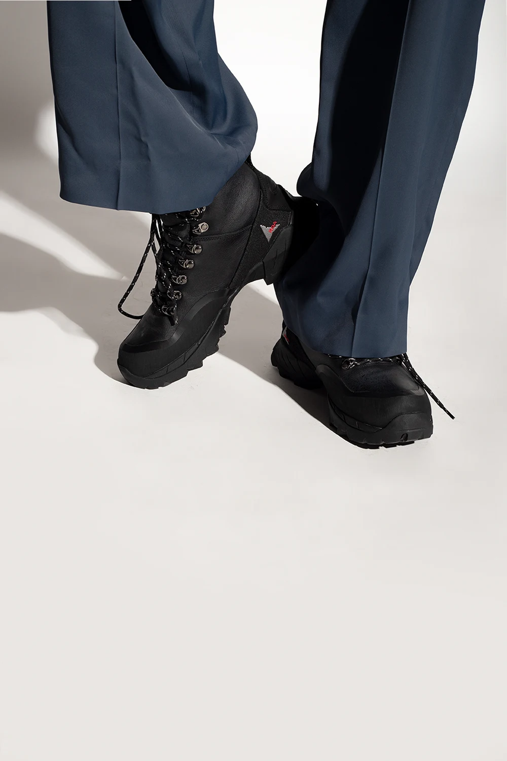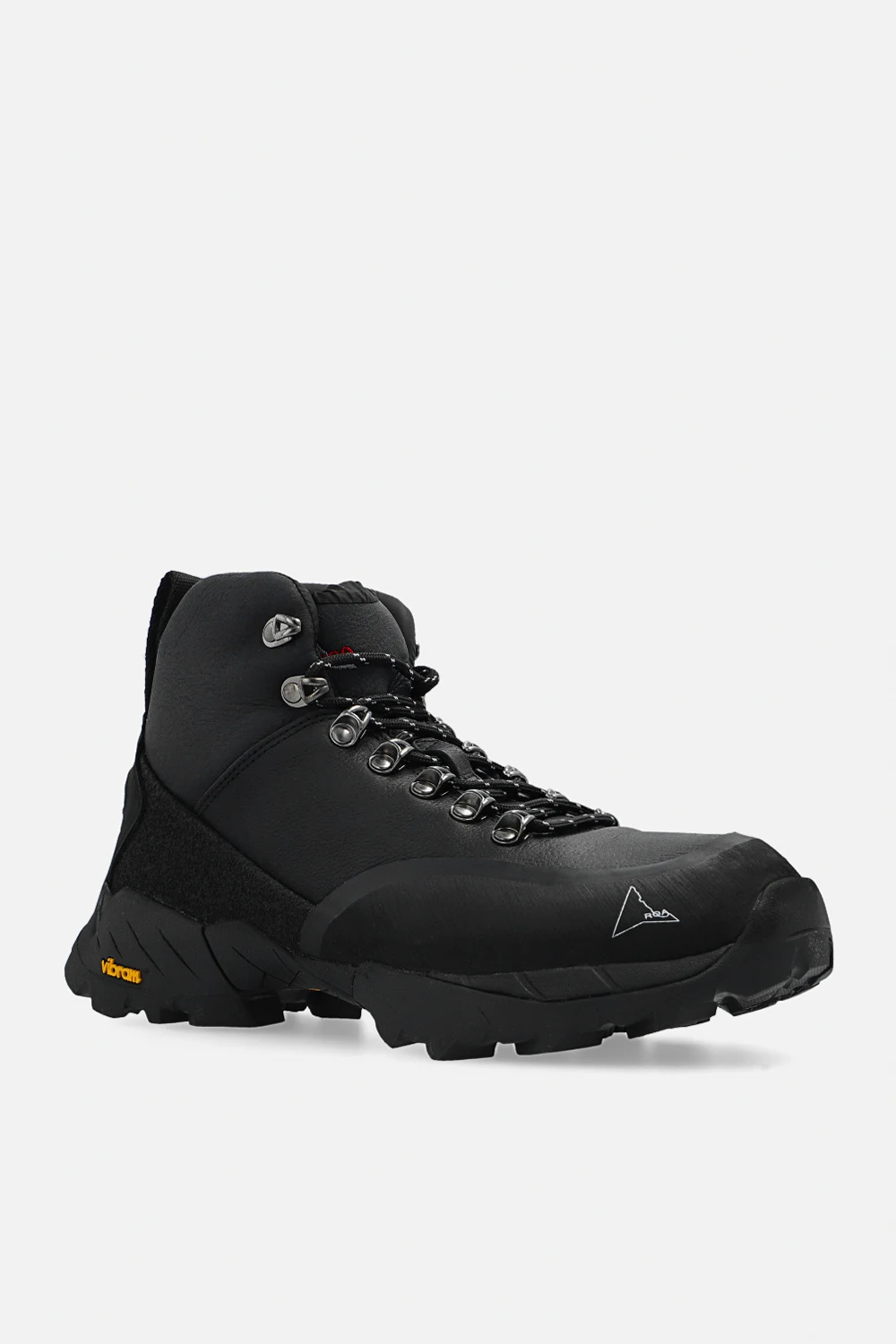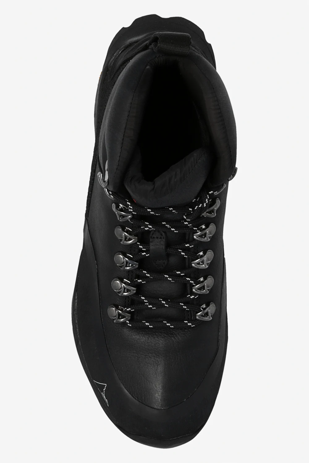 Black ‘Andreas’ trekking boots from Roa. Featuring a Kudu leather upper which provides a unique combination of softness and strength, this model is complete with lace-up fastenings, logo detailing, rubber trims and a black Vibram Megagrip toothed tread pattern sole designed for optimal traction and to ensure high resistance to use on roughest surfaces.