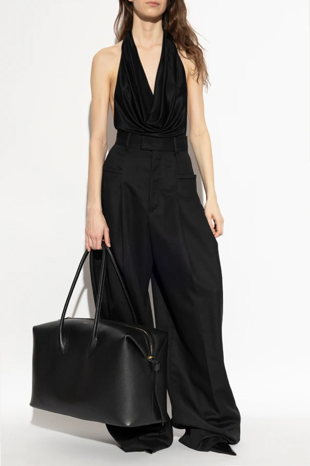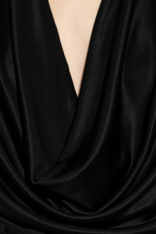 Body mit offenem Rücken von Dsquared2 ist eine außergewöhnliche Wahl für Liebhaberinnen raffinierter Eleganz. Es zeichnet sich durch einen tief drapierten Water-Ausschnitt aus, dessen weiche Falten das Dekolleté wunderschön umspielen, sowie durch einen vollständig offenen Rücken mit diskreter Bindung im Nacken. Der auffällige, satinierte Glanz, der durch die Verwendung von Viskose höchster Qualität entsteht, verleiht dem Modell einen beeindruckenden Charakter.