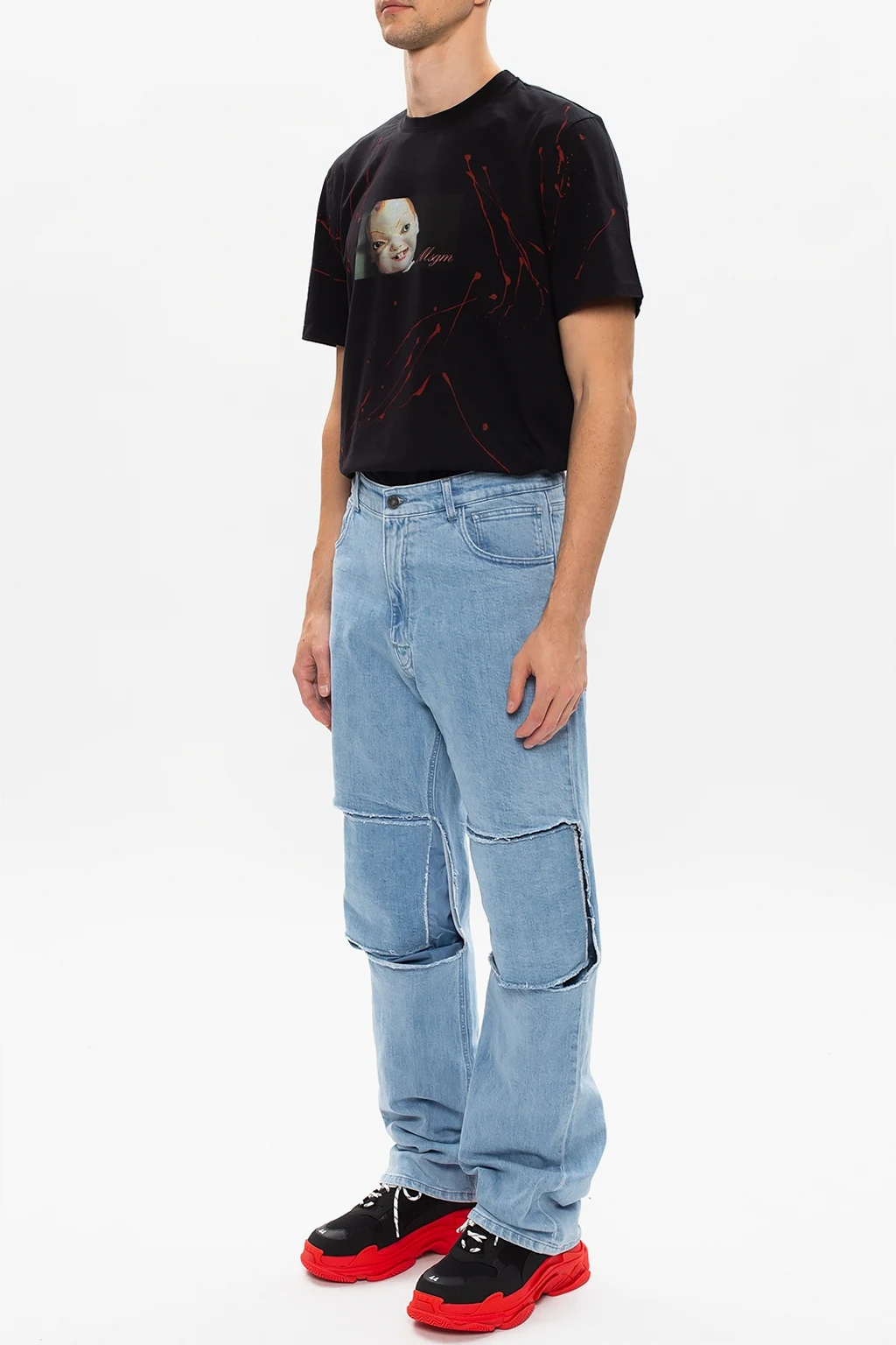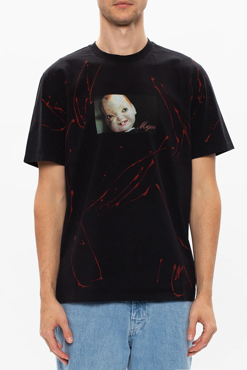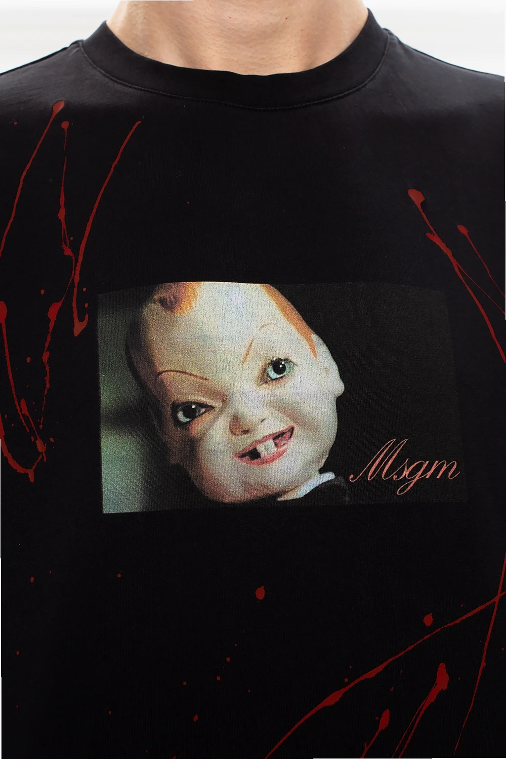 Black crewneck T-shirt from MSGM x Dario Argento. Crafted from cotton, it is decorated with a printed pattern. This collection was created in collaboration with horror film director Dario Argento.