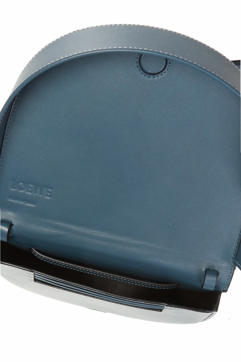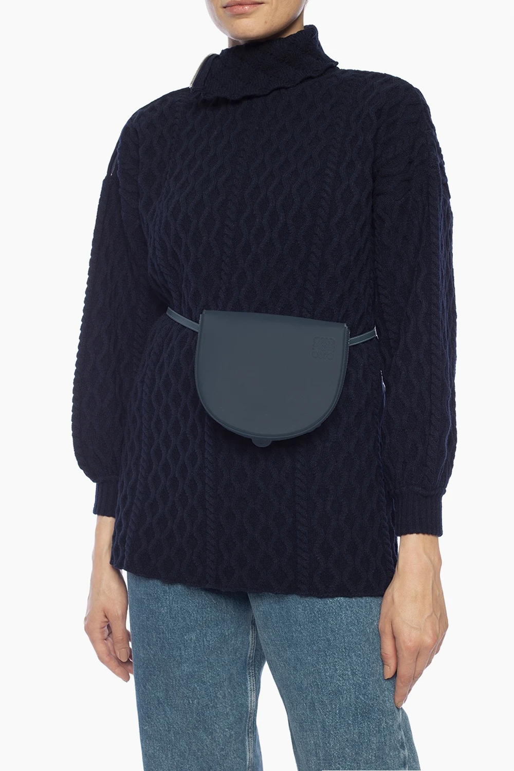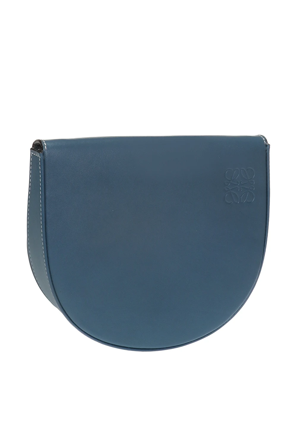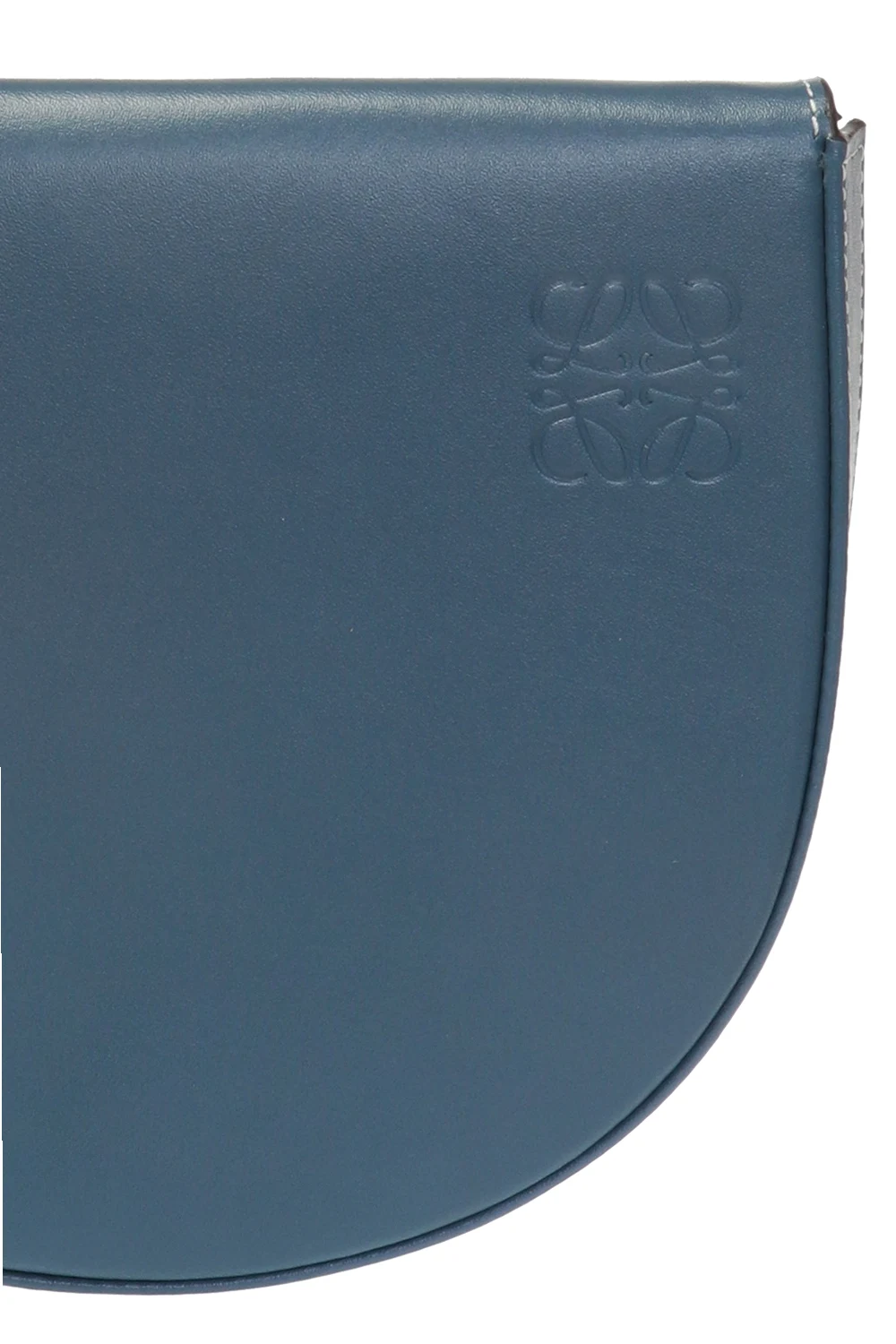 Blue ‘Heel’ belt bag from Loewe. Made of calf leather. Magnetic snap fastening. Logo embossed on the front. Detachable, adjustable strap. One compartment and 3 card slots inside. Can be worn as a shoulder bag.