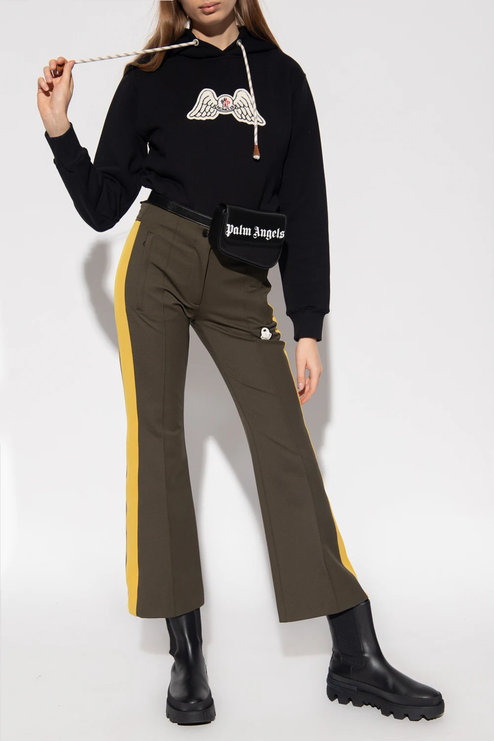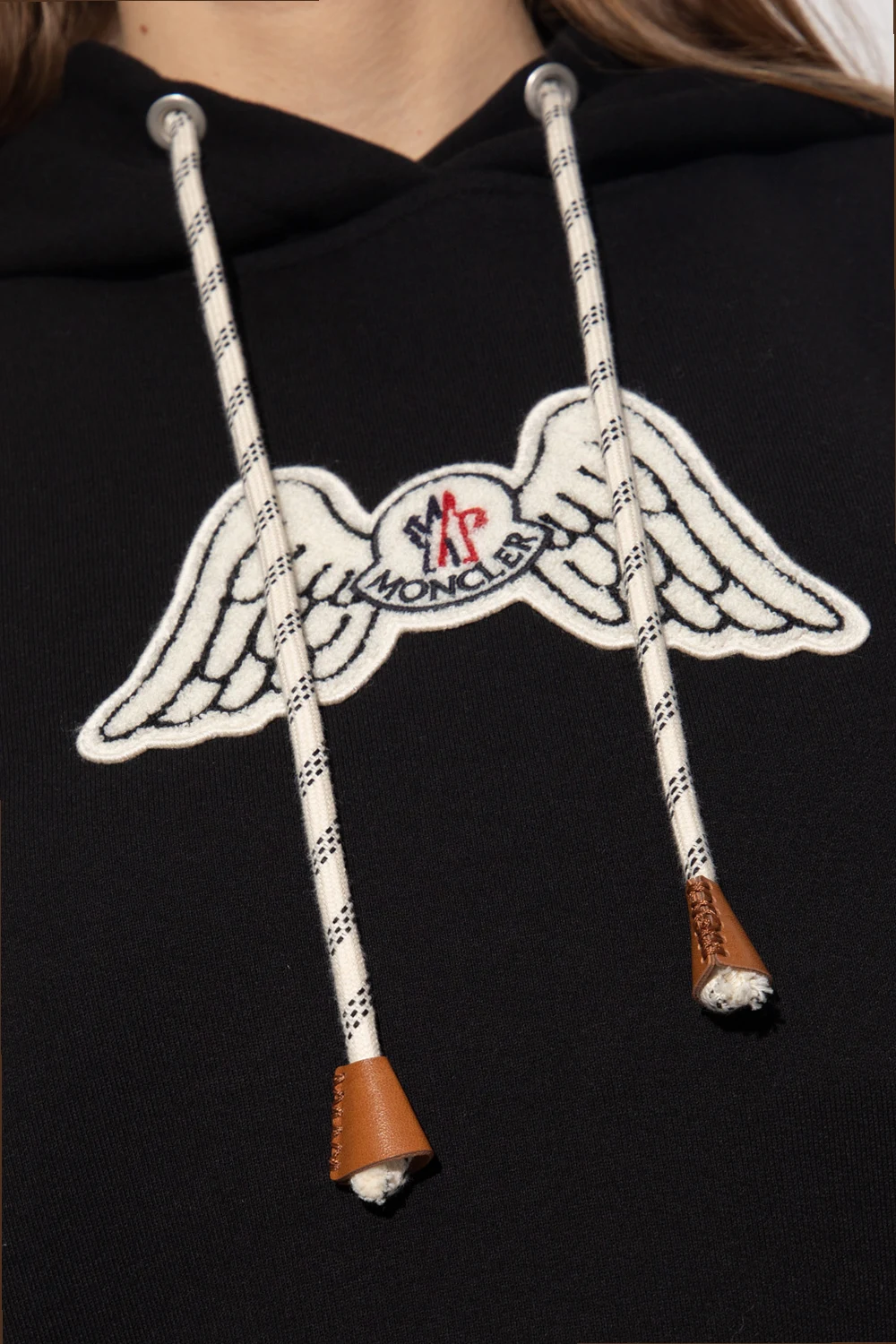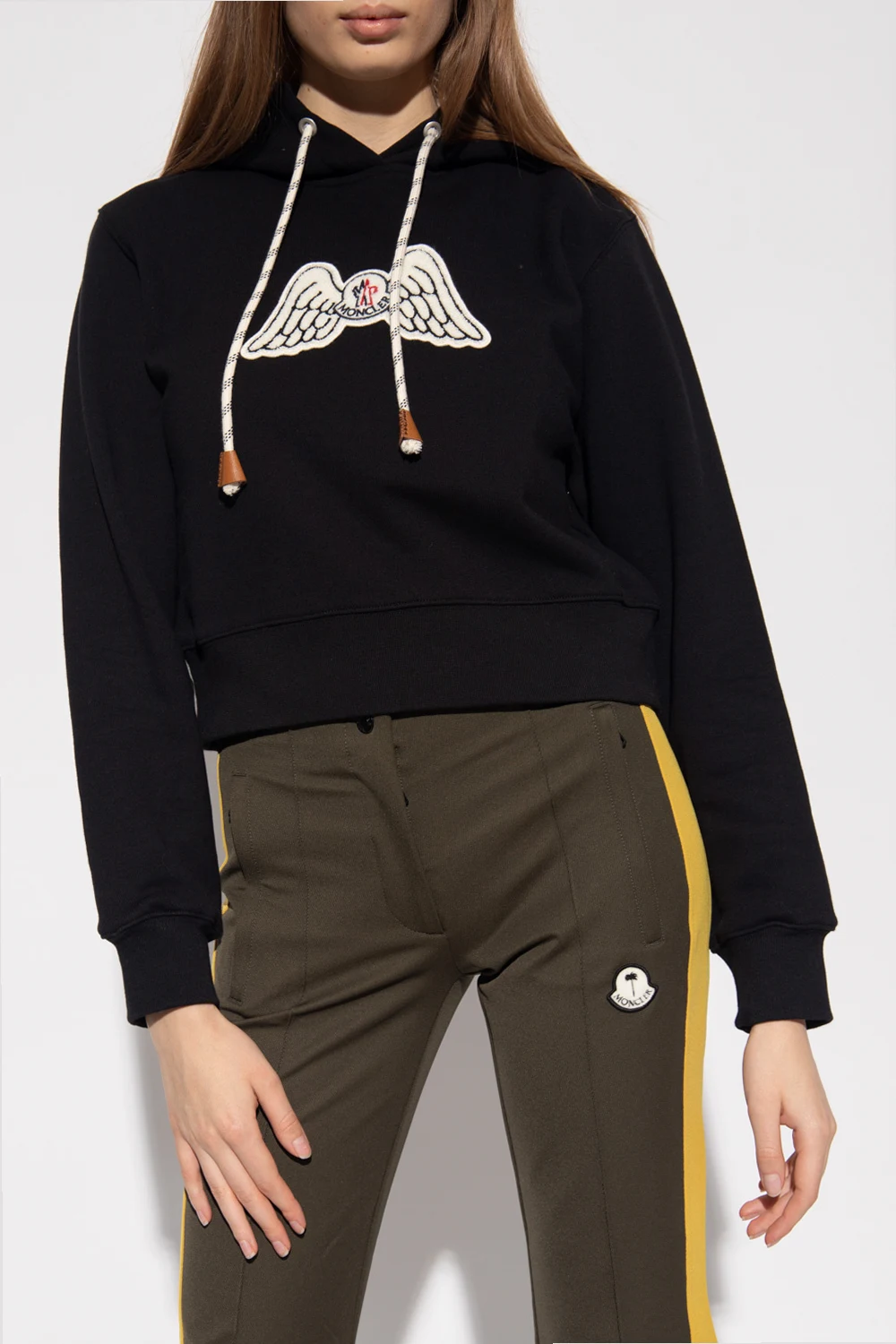 Black hoodie from Moncler Genius, the ‘Palm Angels No. 8’ collection. Made of cotton and emblazoned with a white, black and red logo patch, this style features a drawcord-adjustable hood and a ribbed bottom hem and cuffs.