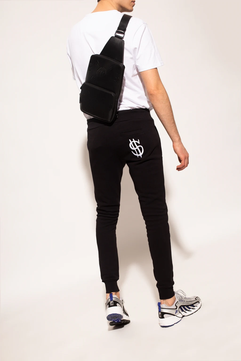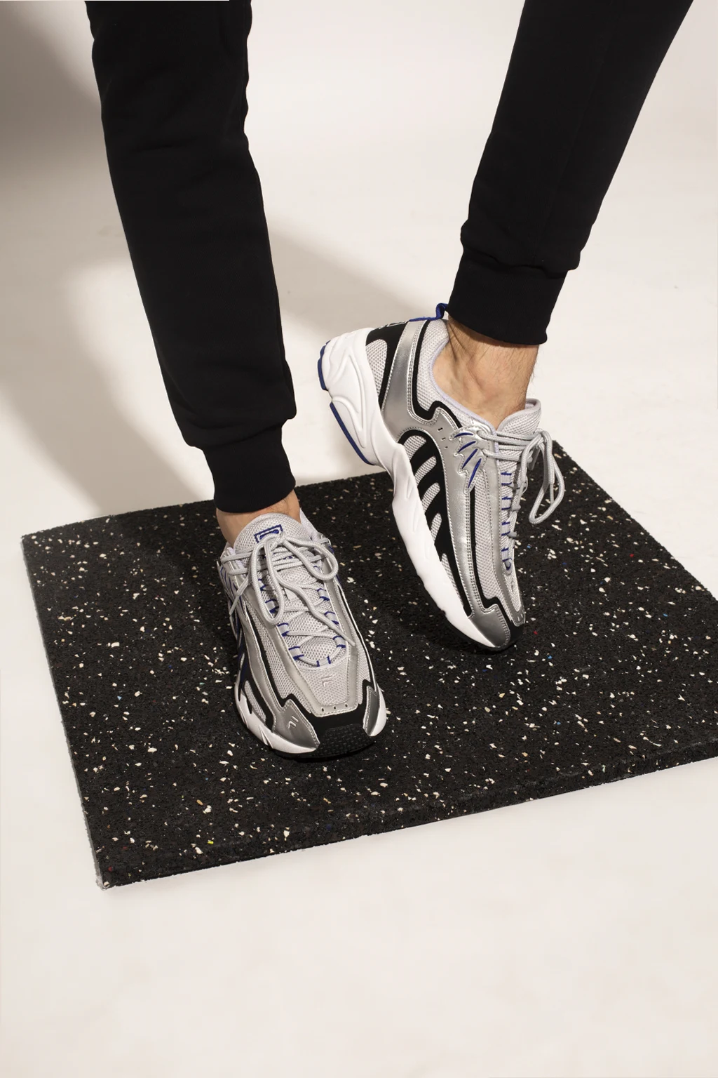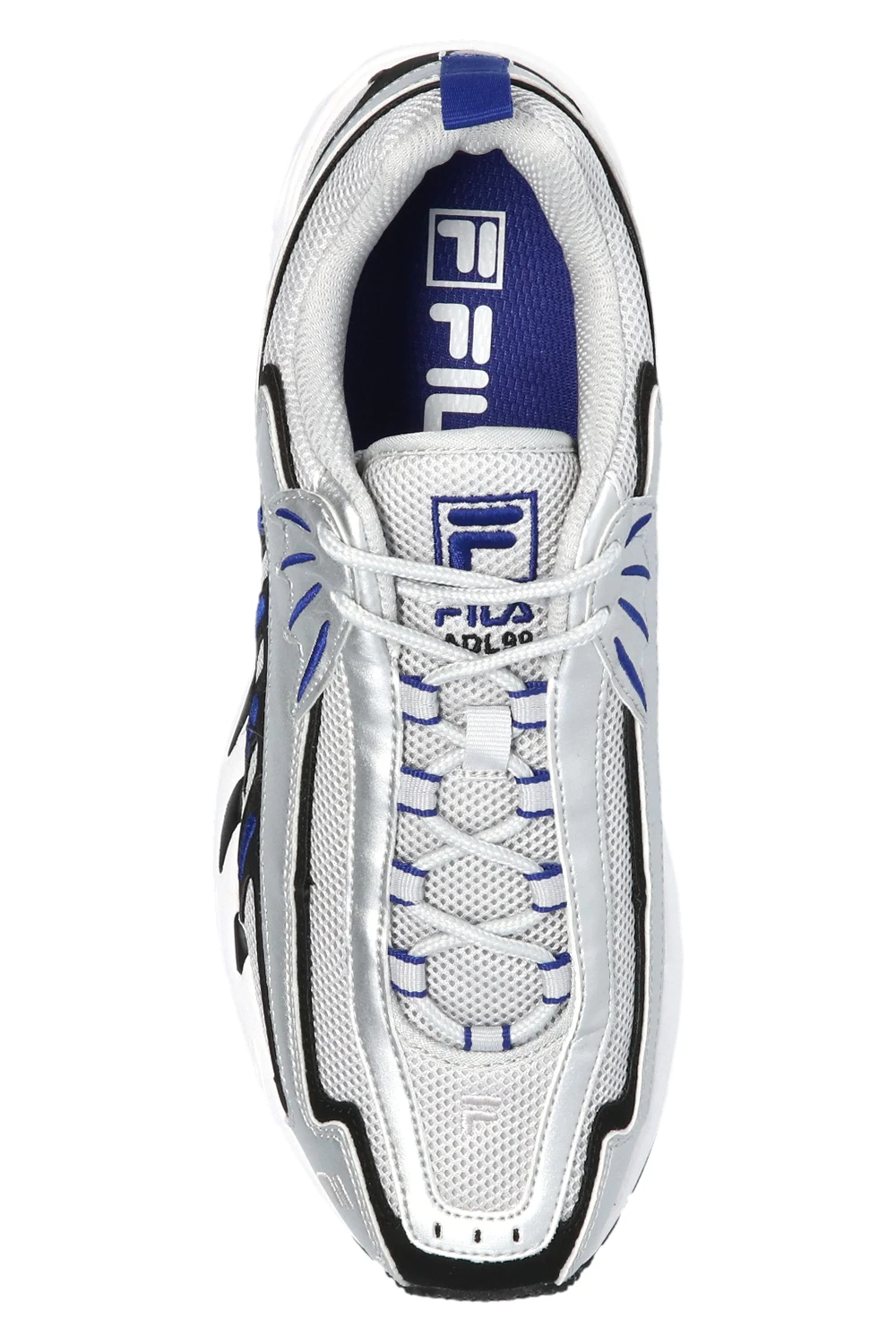 Black, silver-tone and navy ‘ADL 99’ sneakers from Fila. Trimmed with mesh, this lace-up design features a logo embroidered on the tongue, metallic inserts and a rubber sole in white and black.
