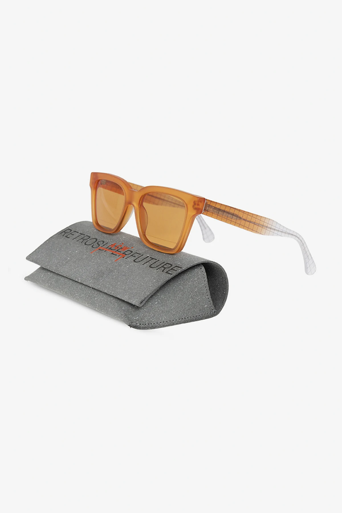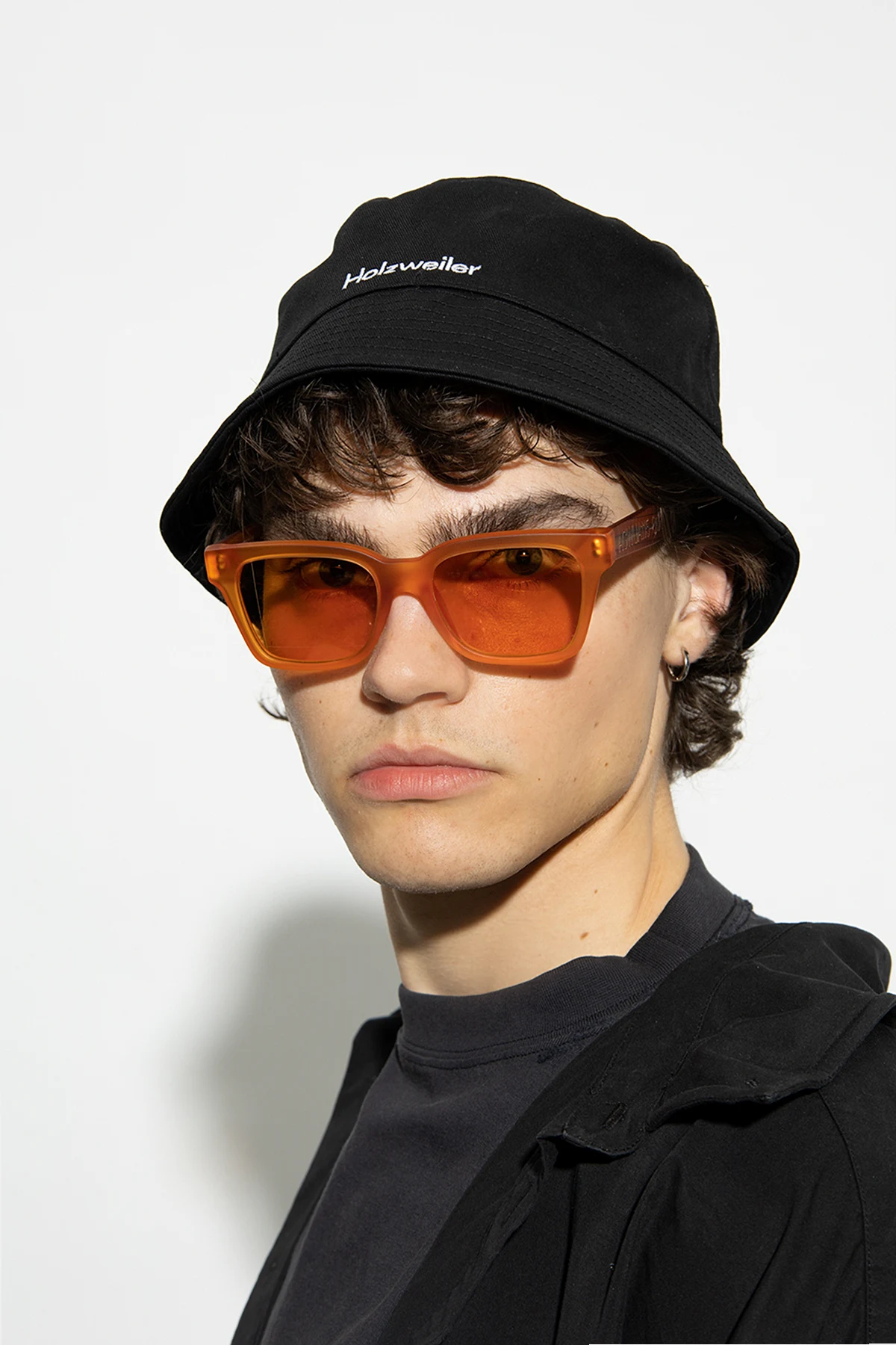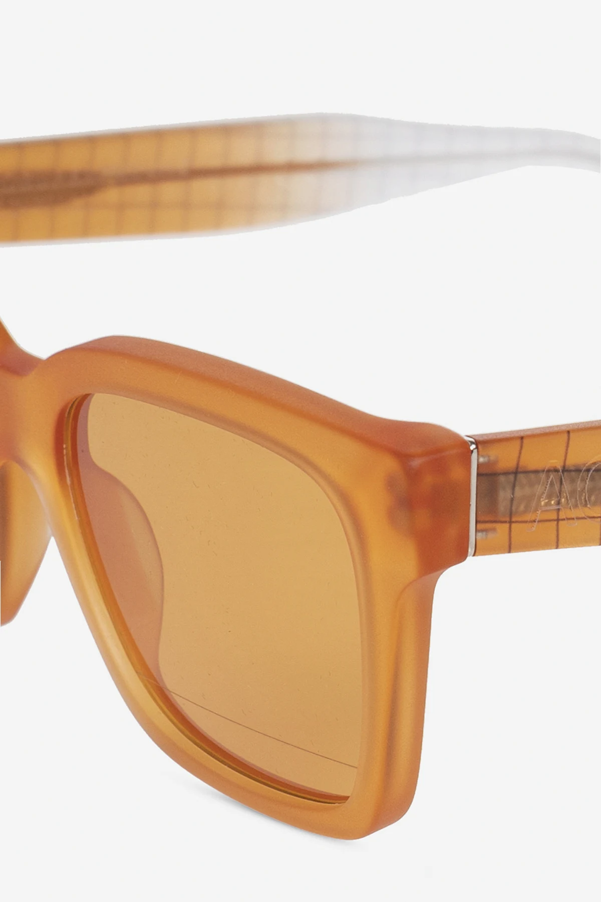 Orange and white sunglasses from A-COLD-WALL*. This pair features square frames, black check pattern, laser-engraved season code and orange lenses with 100% UVA/UVB protection. Comes with a case.