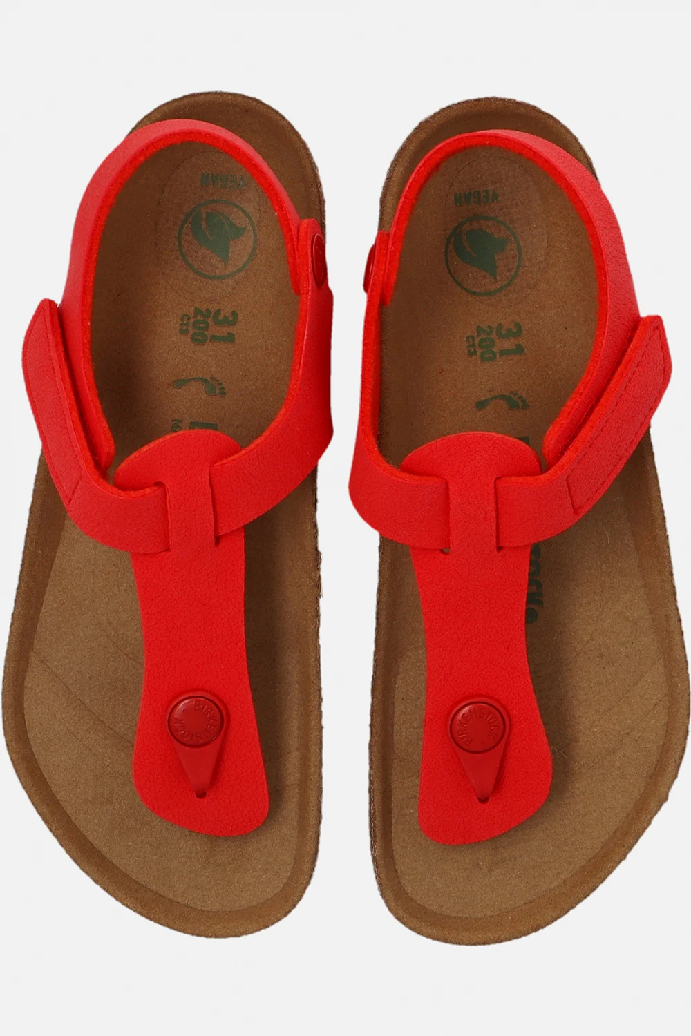 Red ‘Kairo’ sandals from Birkenstock Kids. Made of durable Birkoflor®, this pair has velcro fastenings, embossed logo on the side, anatomically shaped cork-latex footbed and brown sole constructed from natural cork and EVA foam in red.