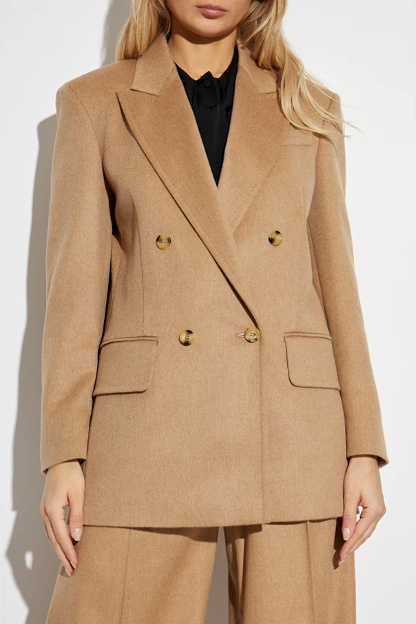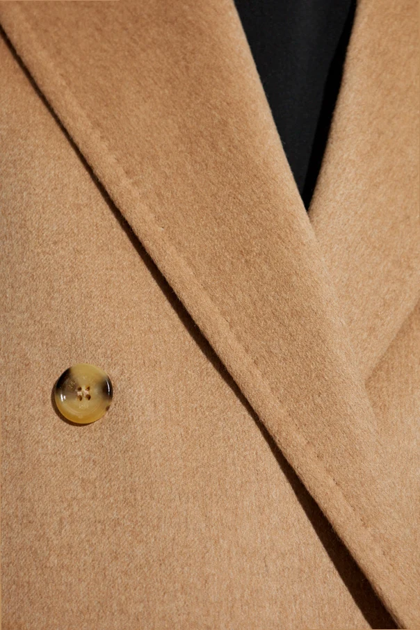 Die präzise geschnittene, zweireihige Konstruktion mit vier Knöpfen harmoniert mit breiten Revers, einem dezenten Kragen sowie rechteckigen Pattentaschen. Der luxuriöse Stoff – ausgewählte Kamelflaumwolle – garantiert unvergleichliche Weichheit und höchsten Tragekomfort. Ein dezentes, innen angebrachtes Logo-Etikett unterstreicht die exklusive Herkunft des Blazers.