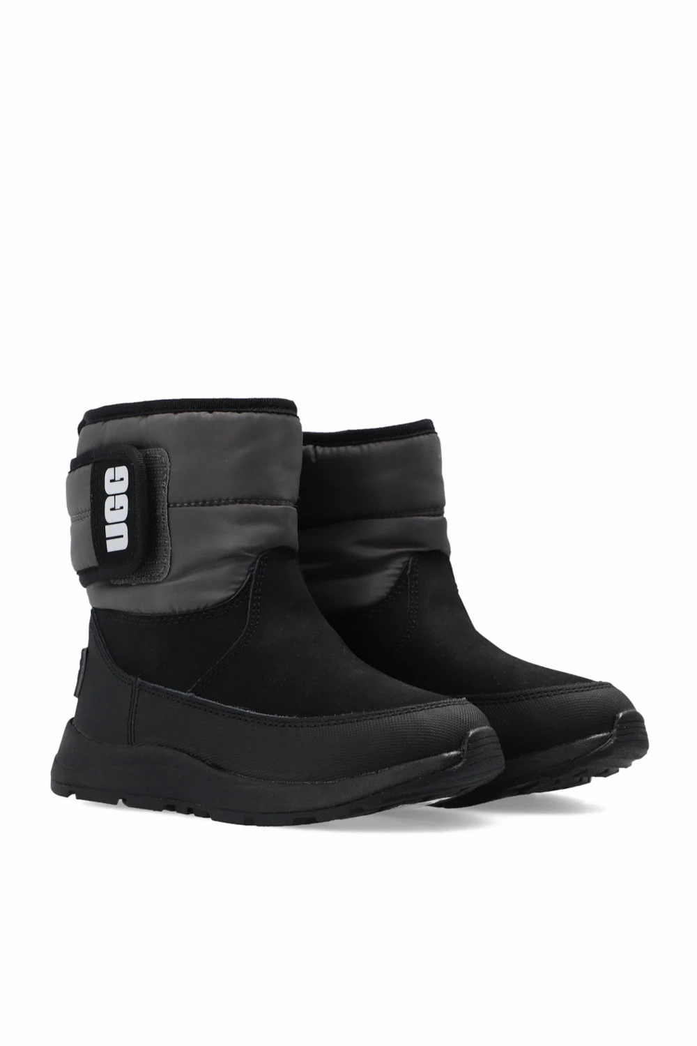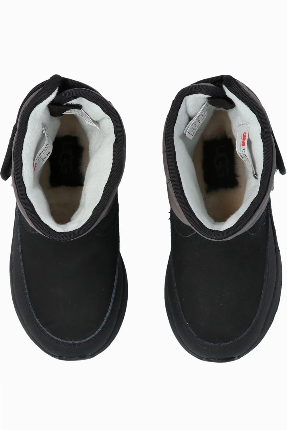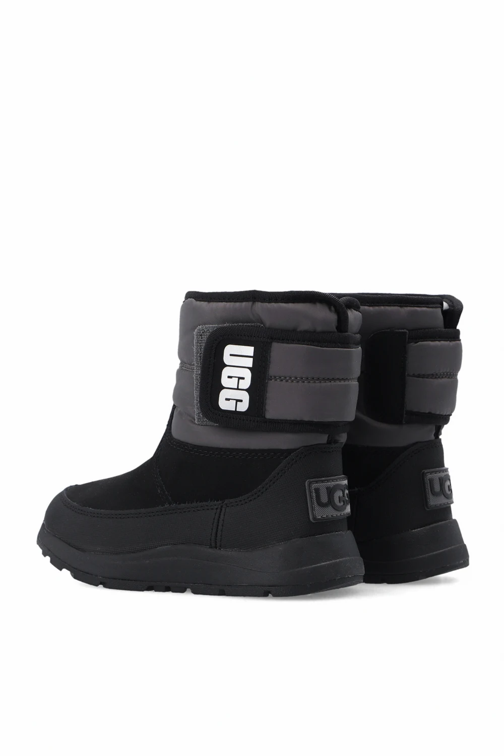 Black and grey ‘Toty Weather’ snow boots from UGG Kids. Fastened with a hook-and-loop closure, this design features a reflective print, rubber logo appliqué, ‘3M ThinsulateTM’ and shearling lining as well as a black rubber sole. Temperature rating: up to -20°C.