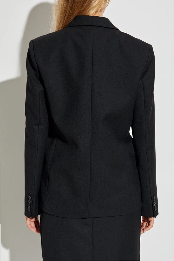 Das außergewöhnliche zweireihige Sakko von Anine Bing ist eine Synthese aus klassischer Eleganz und unvergleichlicher Raffinesse. Schwarz, als dominante Farbe, wird durch die schlichte Form sowie das leicht matte, edle Finish des Materials betont. Der klassische Schnitt mit klar definierten Schultern und einer Länge, die die Hüften bedeckt, modelliert die Silhouette perfekt, während die breiten Revers dem Ganzen eine Designer-Note verleihen.