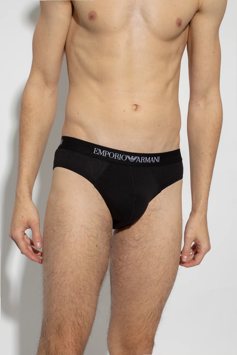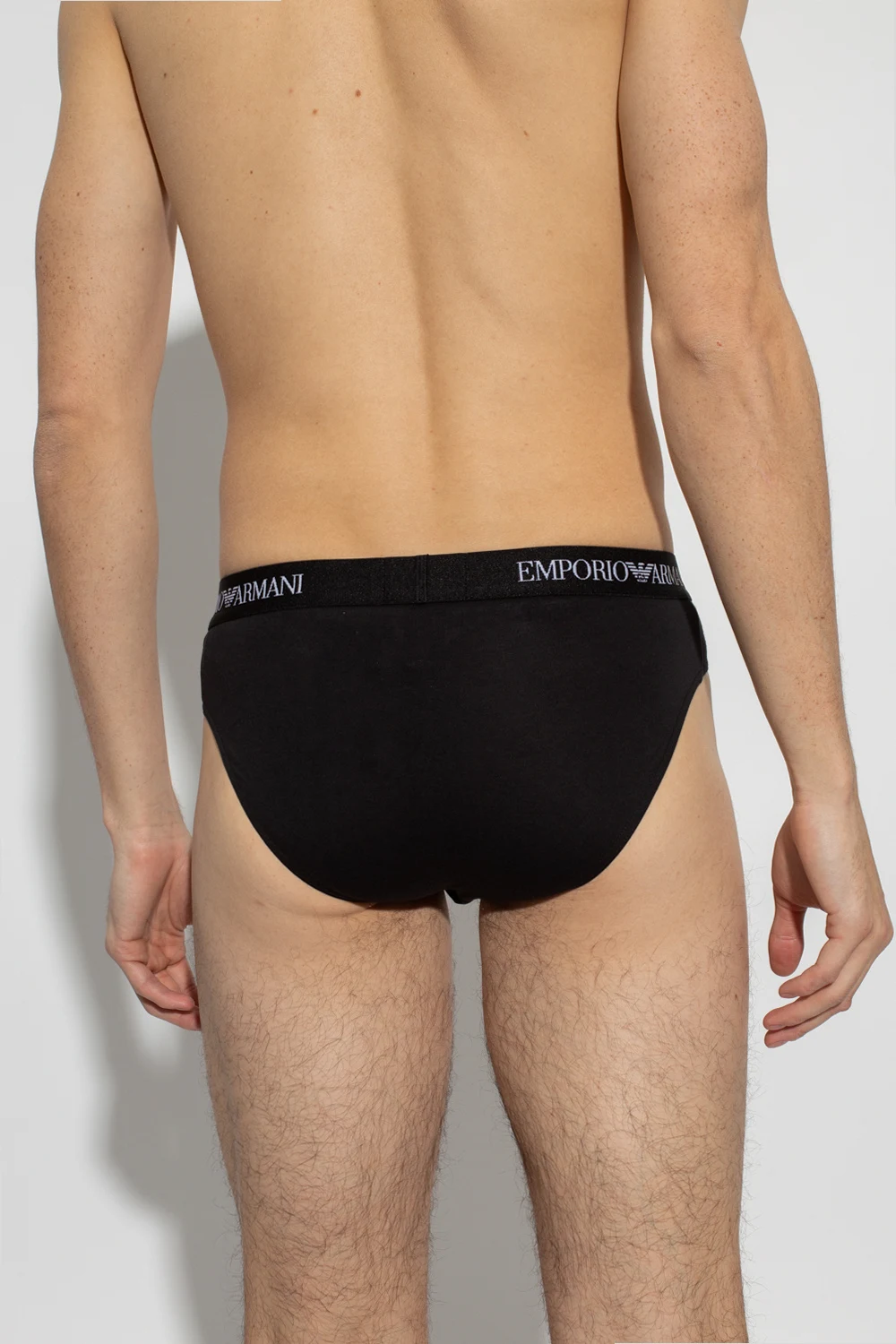 3-pack of briefs in white and black with elastic branded waistbands from Emporio Armani.