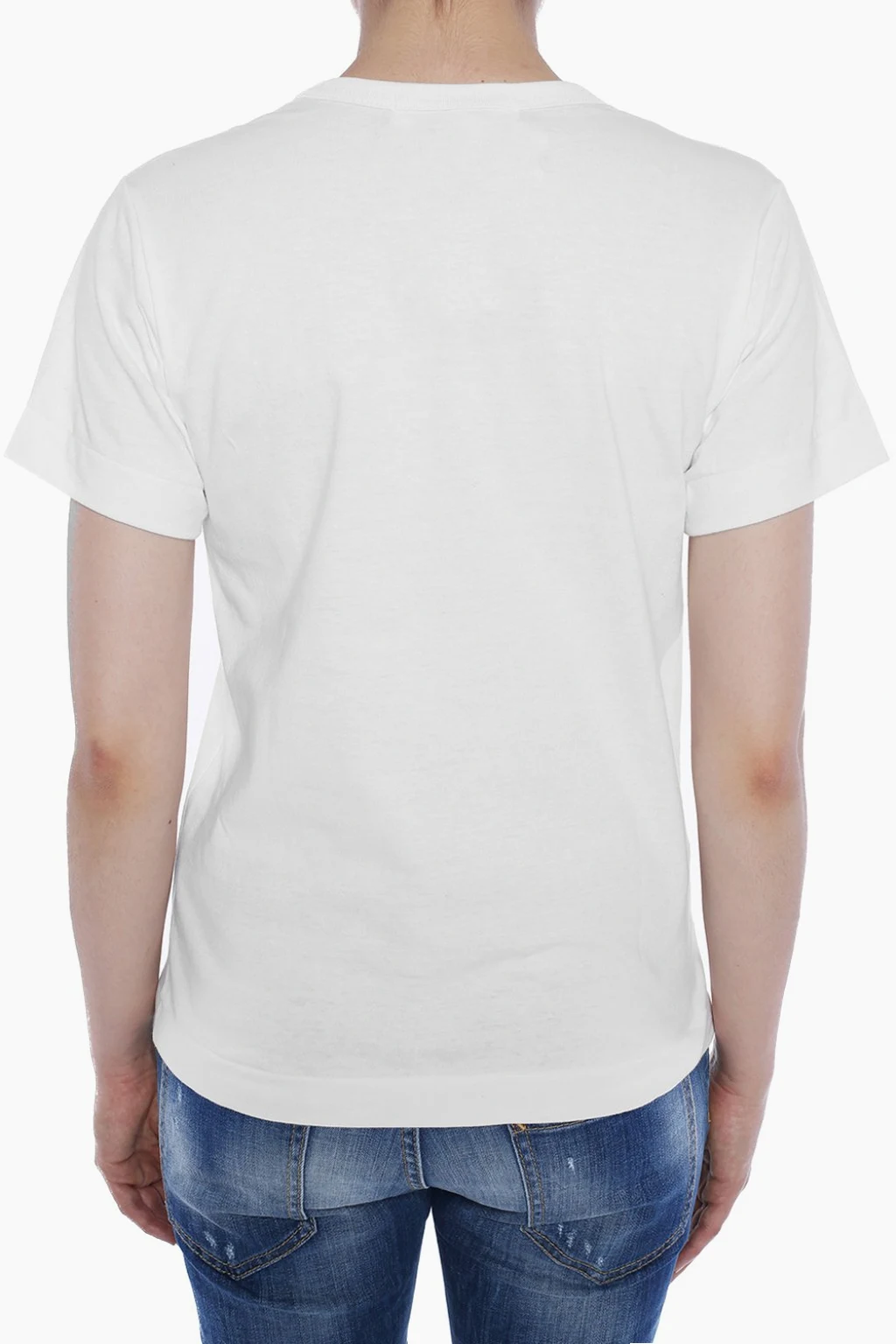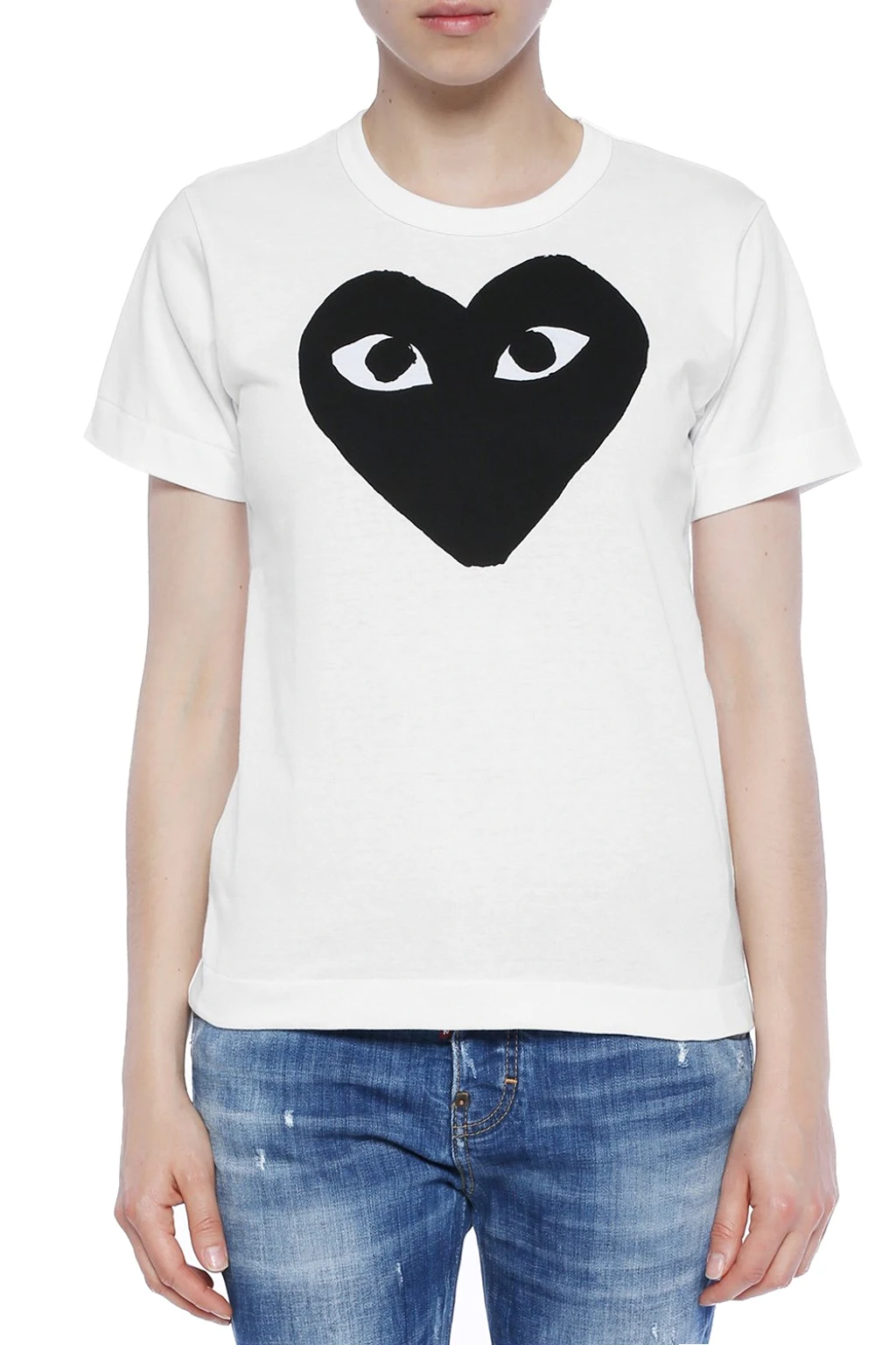 White cotton T-shirt from Comme des Garçons Play. Printed black heart. Round neck. Short sleeves.