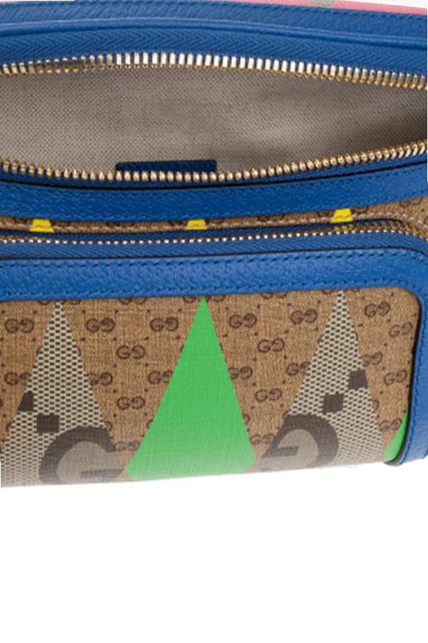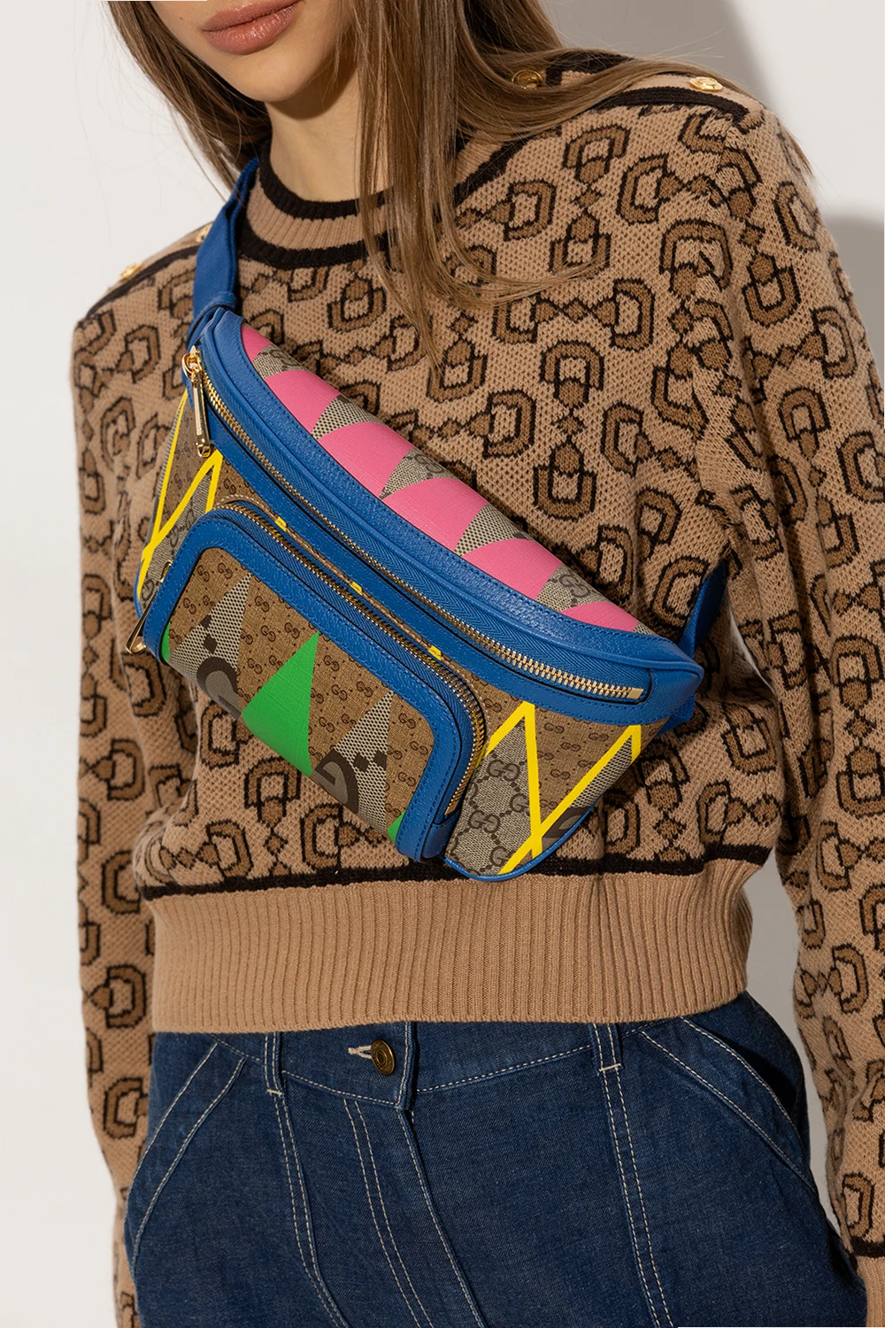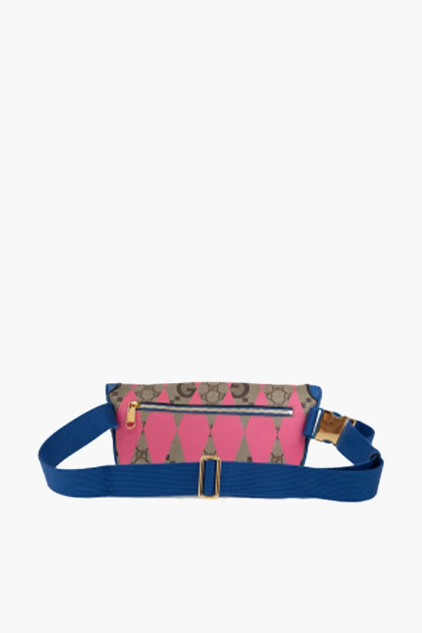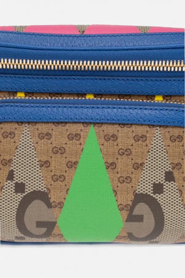 Multicolored belt bag from Gucci. Made of coated canvas with calf leather, this model is complete with a diamond pattern and monogram motif, zipped front and back pocket, adjustable buckle strap, one internal compartment and gold-tone metal hardware.