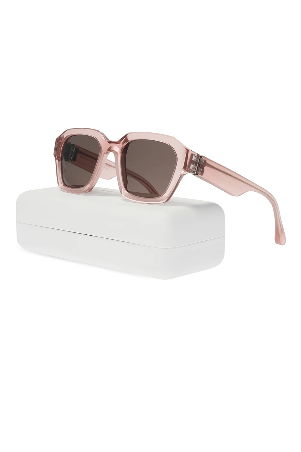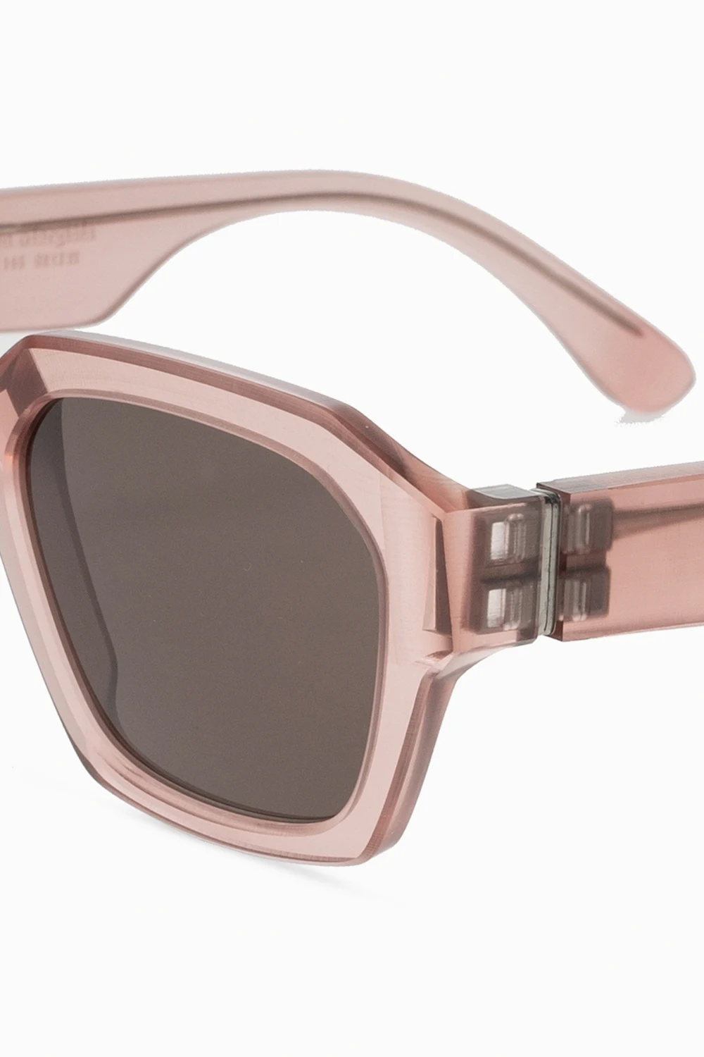 Translucent pink ‘MMRAW019’ sunglasses from Mykita x Maison Margiela. Hand-crafted from acetate, this pair employs certified black lenses which ensure 100% UVA/UVB protection.
