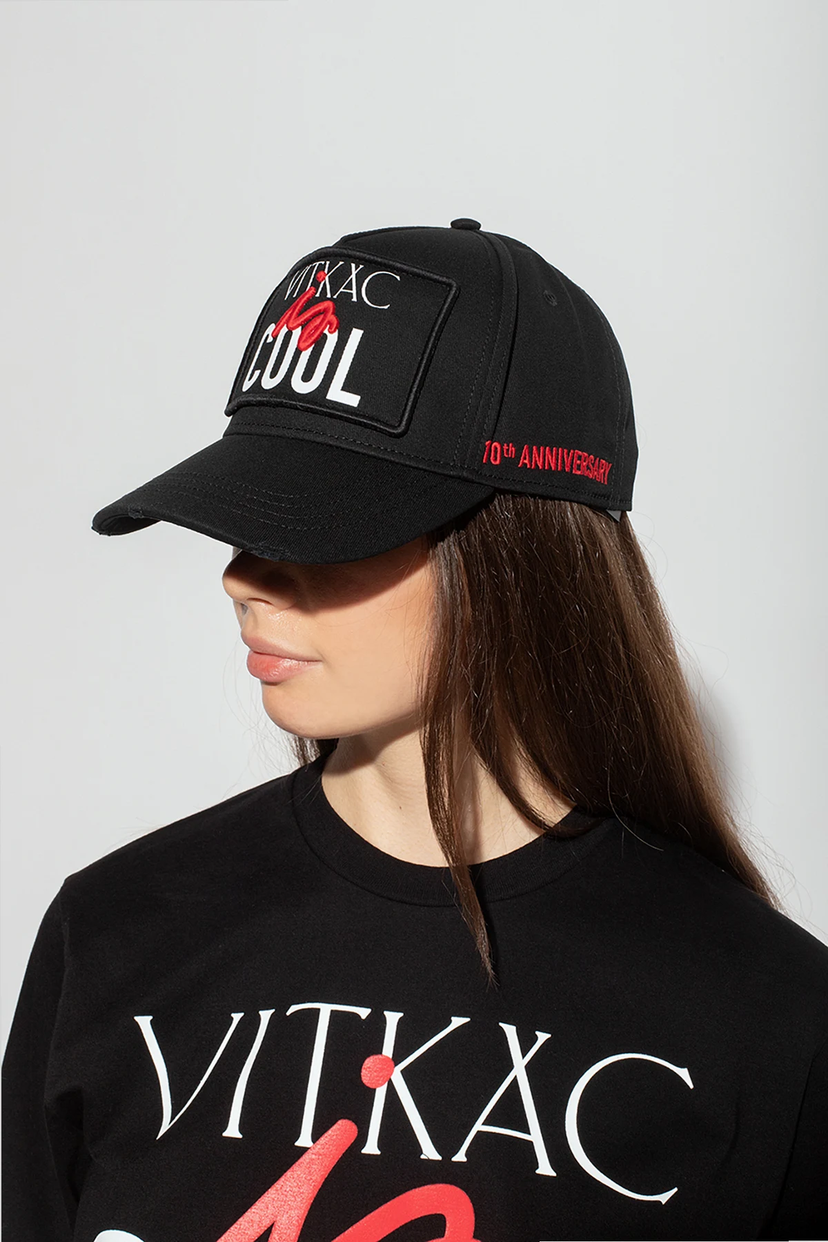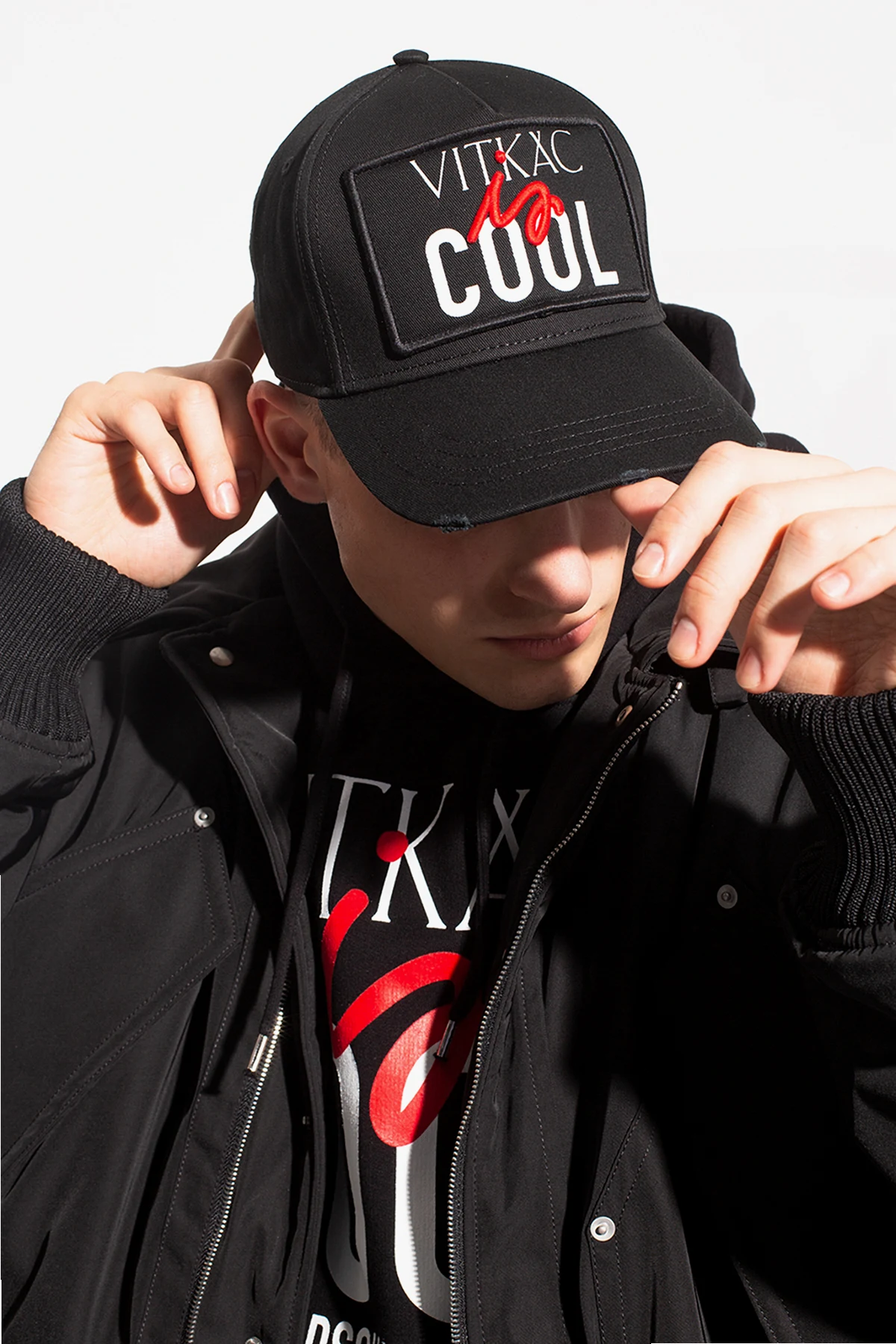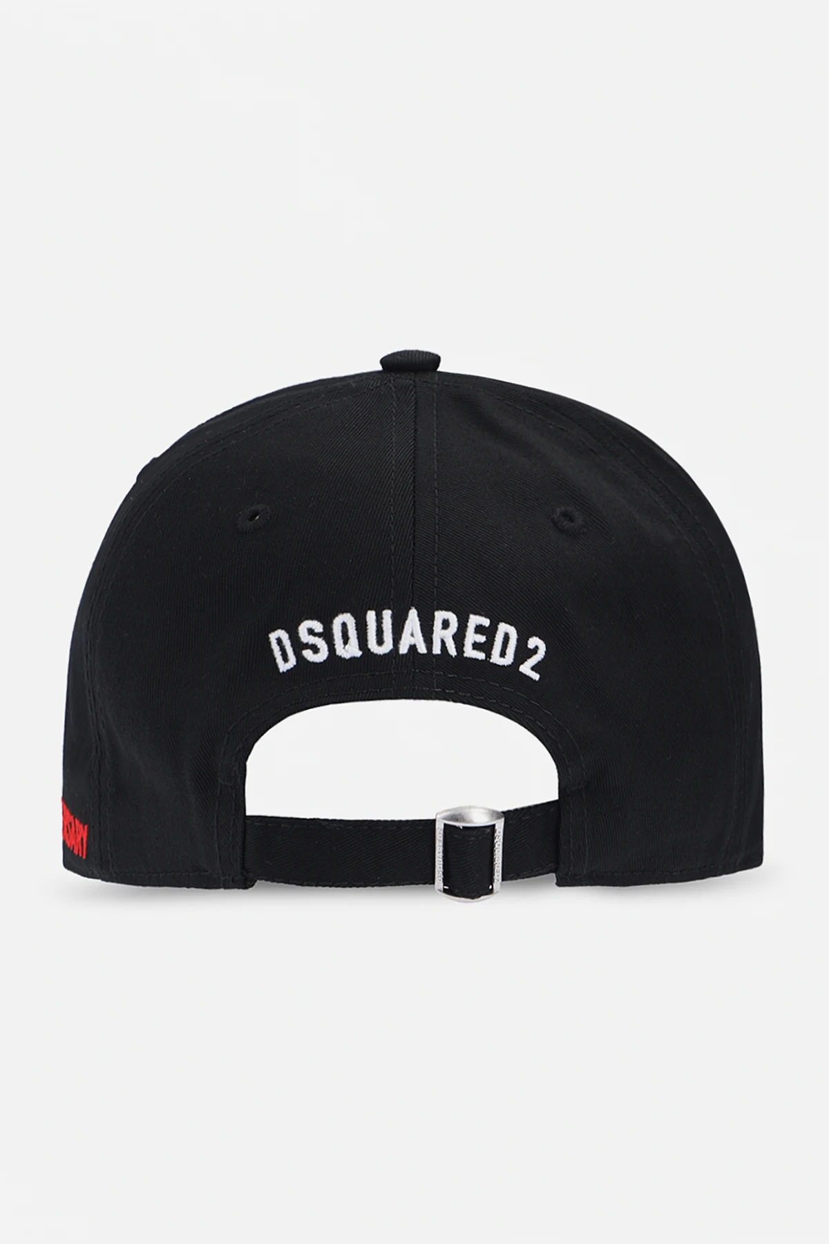 Black baseball cap from Dsquared2. Made of cotton, this item features a white and red logo pattern and adjustable buckle strap at the back.