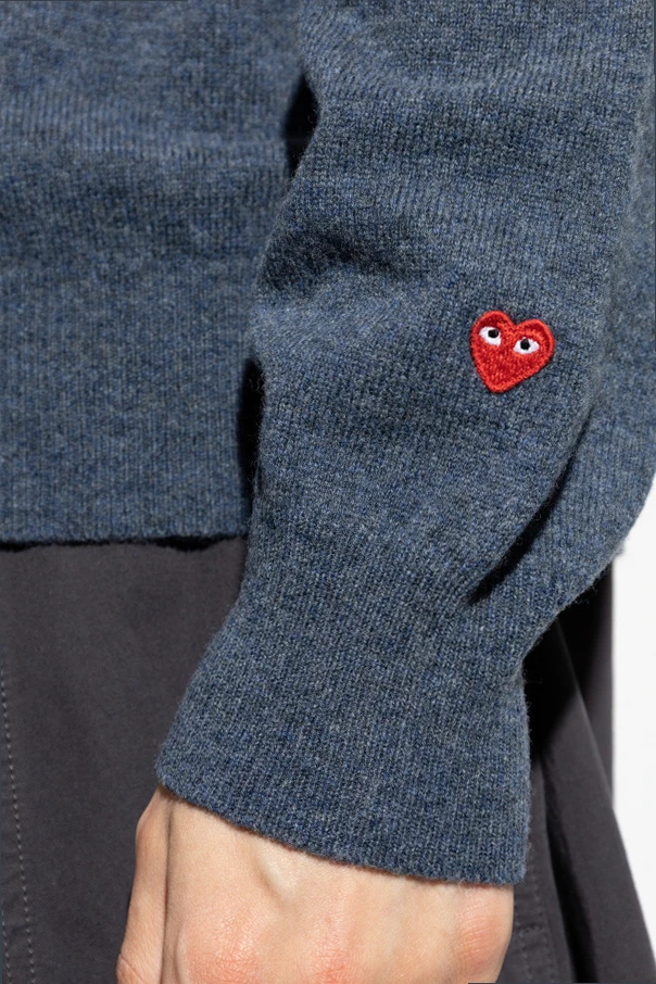 Der Pullover zeichnet sich durch einen klassischen Schnitt aus, der Eleganz und Vielseitigkeit betont. Ein zusätzliches Highlight ist das charakteristische Logo in Form eines roten Herzens mit Augen, das dezent am Ärmel platziert ist und dem Ganzen einen einzigartigen Stil verleiht.