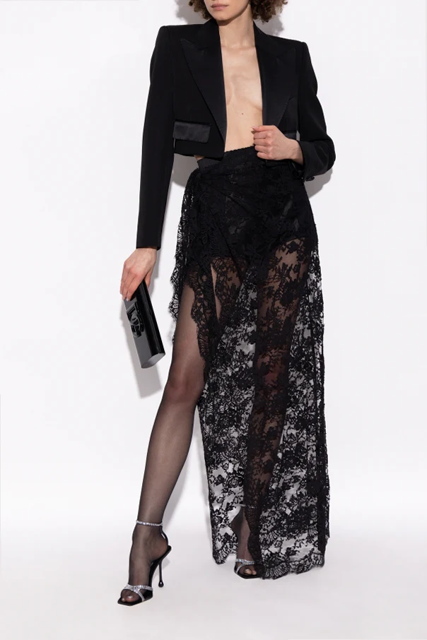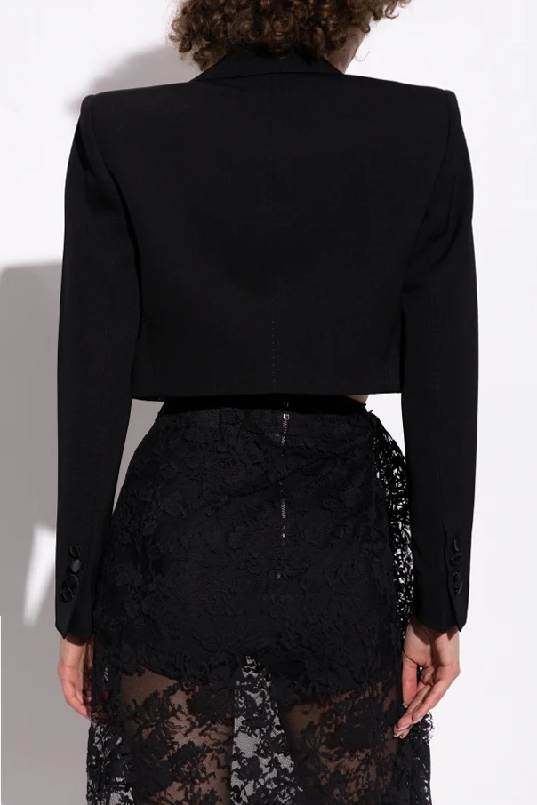 Wir präsentieren das wollene Sakko aus der exklusiven Kollektion von Dolce & Gabbana, das Eleganz und Raffinesse ausstrahlt. Dieses schwarze, kurze Sakko mit figurbetontem Schnitt, gefertigt aus hochwertigster Wolle, ist die Quintessenz von Luxus und Klasse.