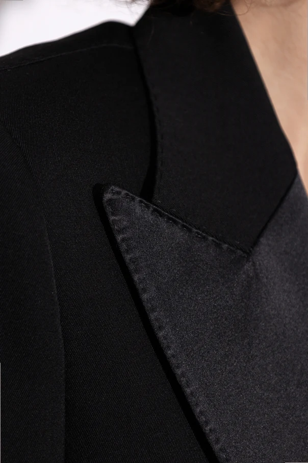 Form und Schnitt: Das Sakko reicht bis zur Taille, verfügt über klassische, breite Revers sowie lange, schmale Ärmel, die mit Knopfmanschetten enden. Der figurbetonte Schnitt betont die Silhouette und verleiht ihr einen raffinierten Charakter.