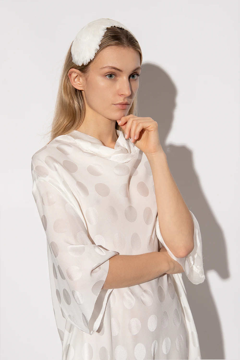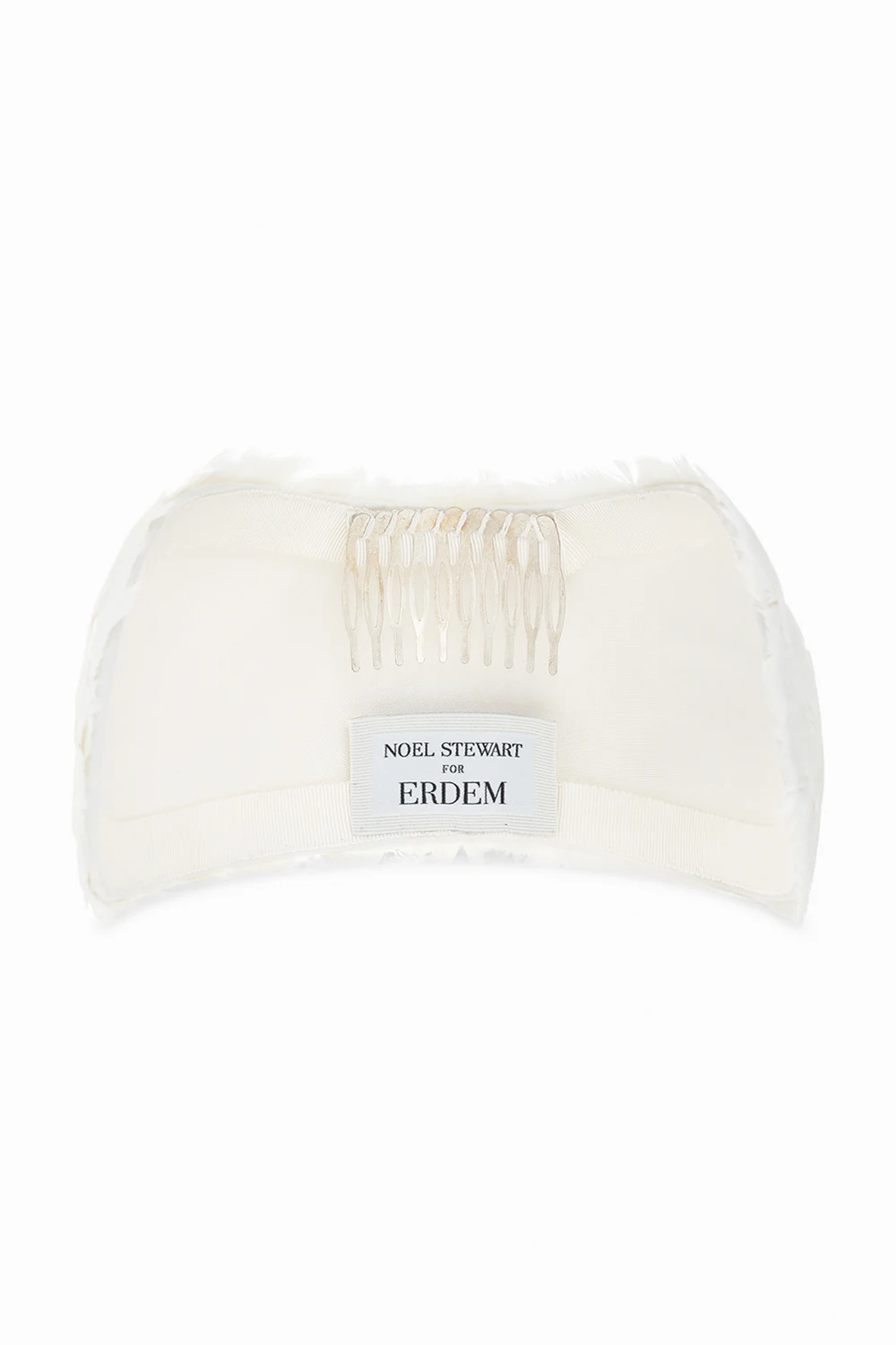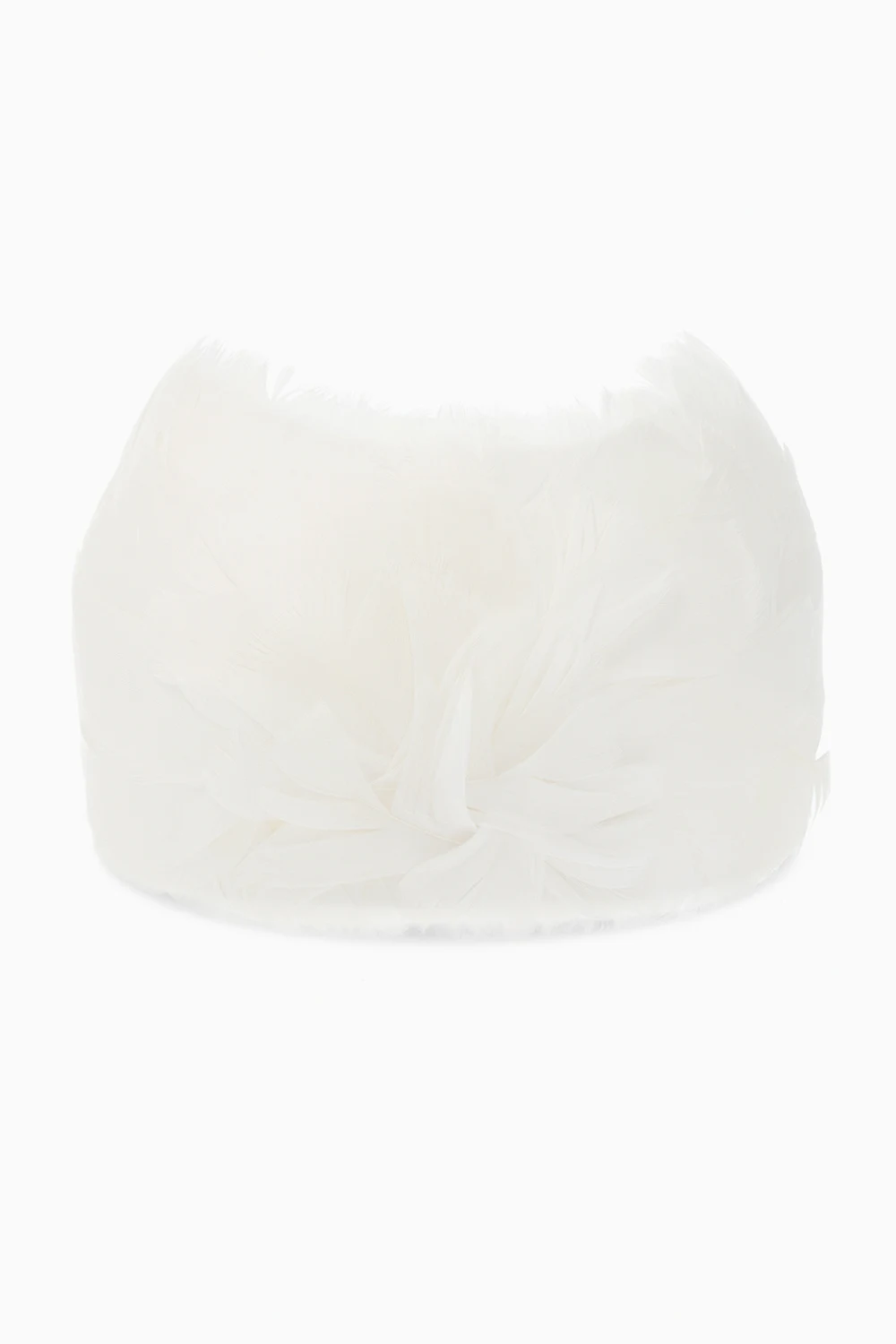 White headband from Erdem. This hair accessory is embellished with goose feathers.