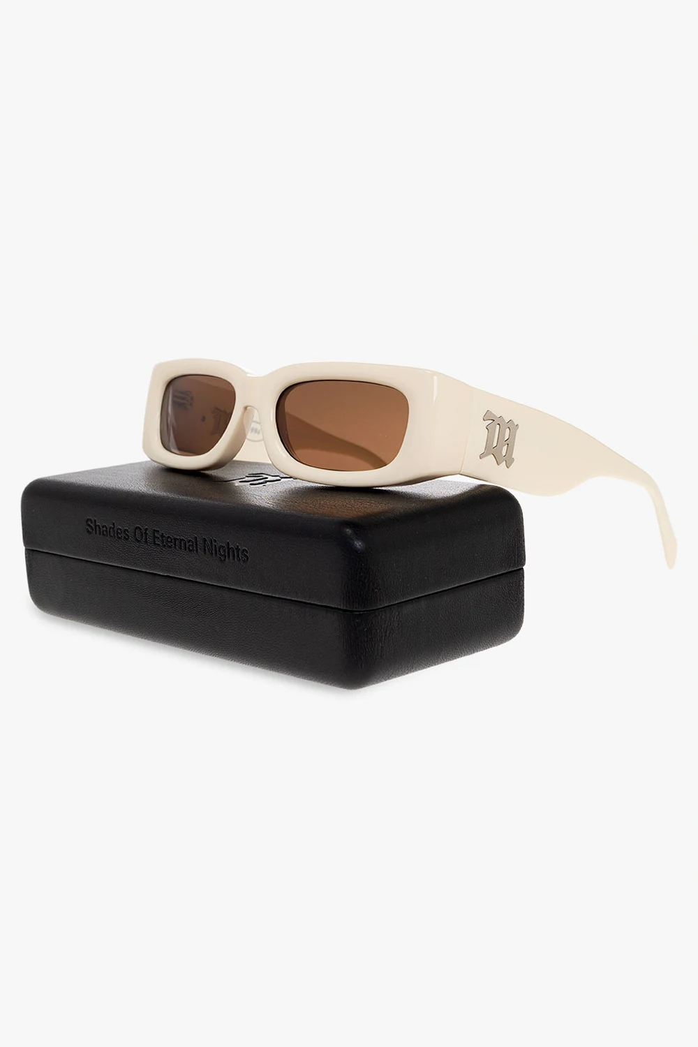 Cream sunglasses with grey lenses and 100% UVA/UVB protection from MISBHV. Comes with a case.