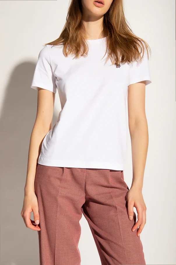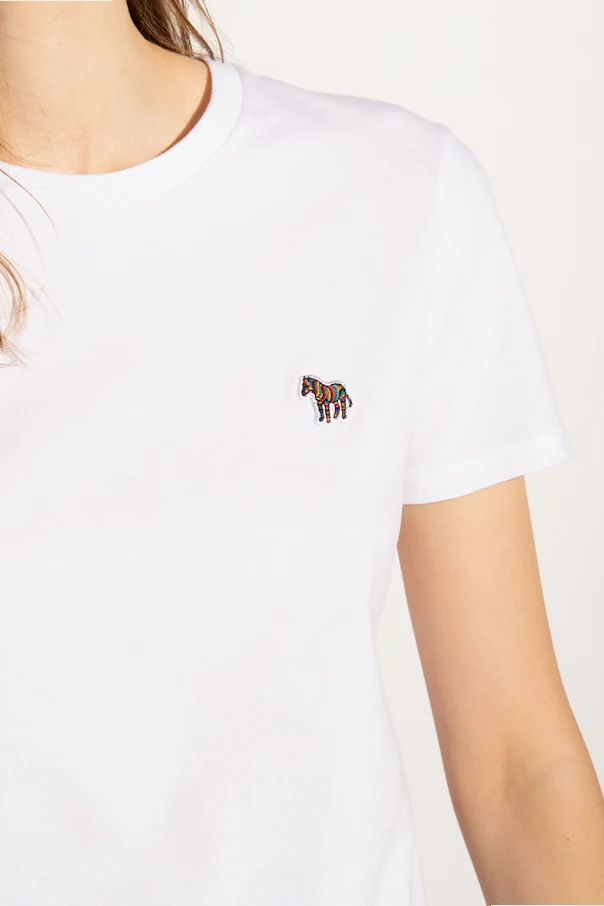 White T-shirt from Paul Smith. Crafted from organic cotton, this short sleeve design features a multicolored patch with a logo and a ribbed round neck.
