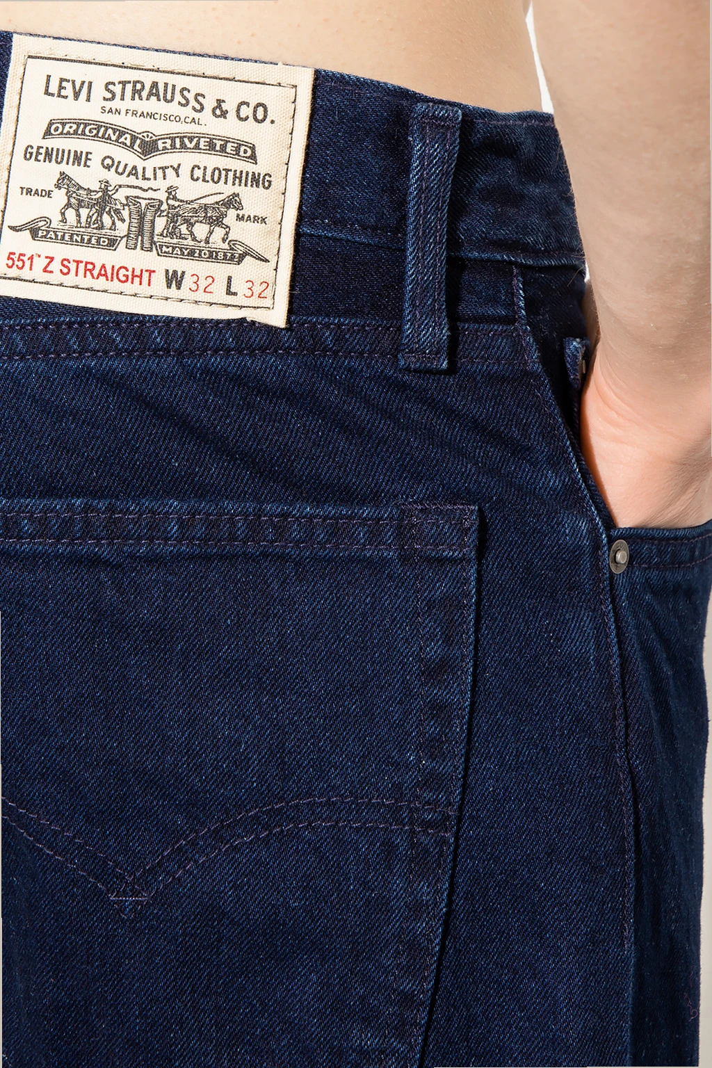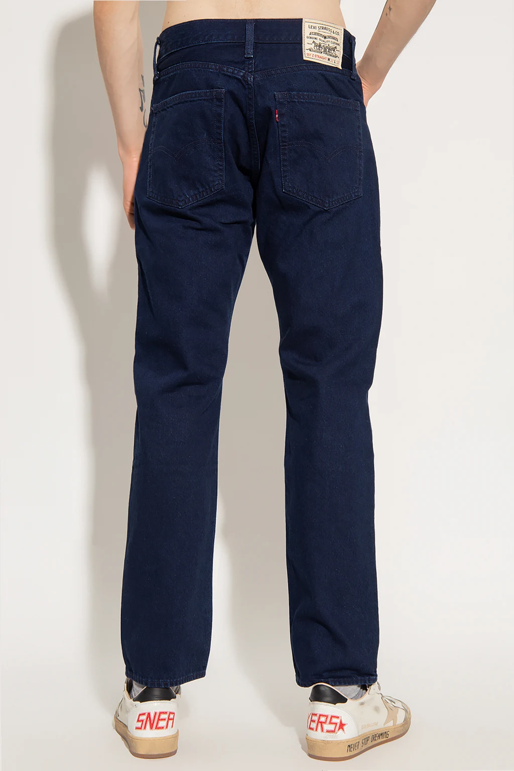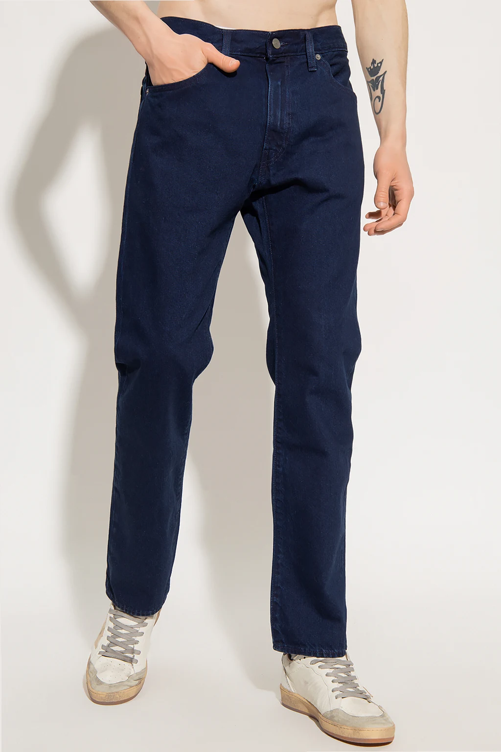 Navy blue jeans from Levi’s, the ‘WellThread™’ collection. Made of cotton, this pair falls with slightly tapered legs and features a zip fly with a button and classic five pockets.