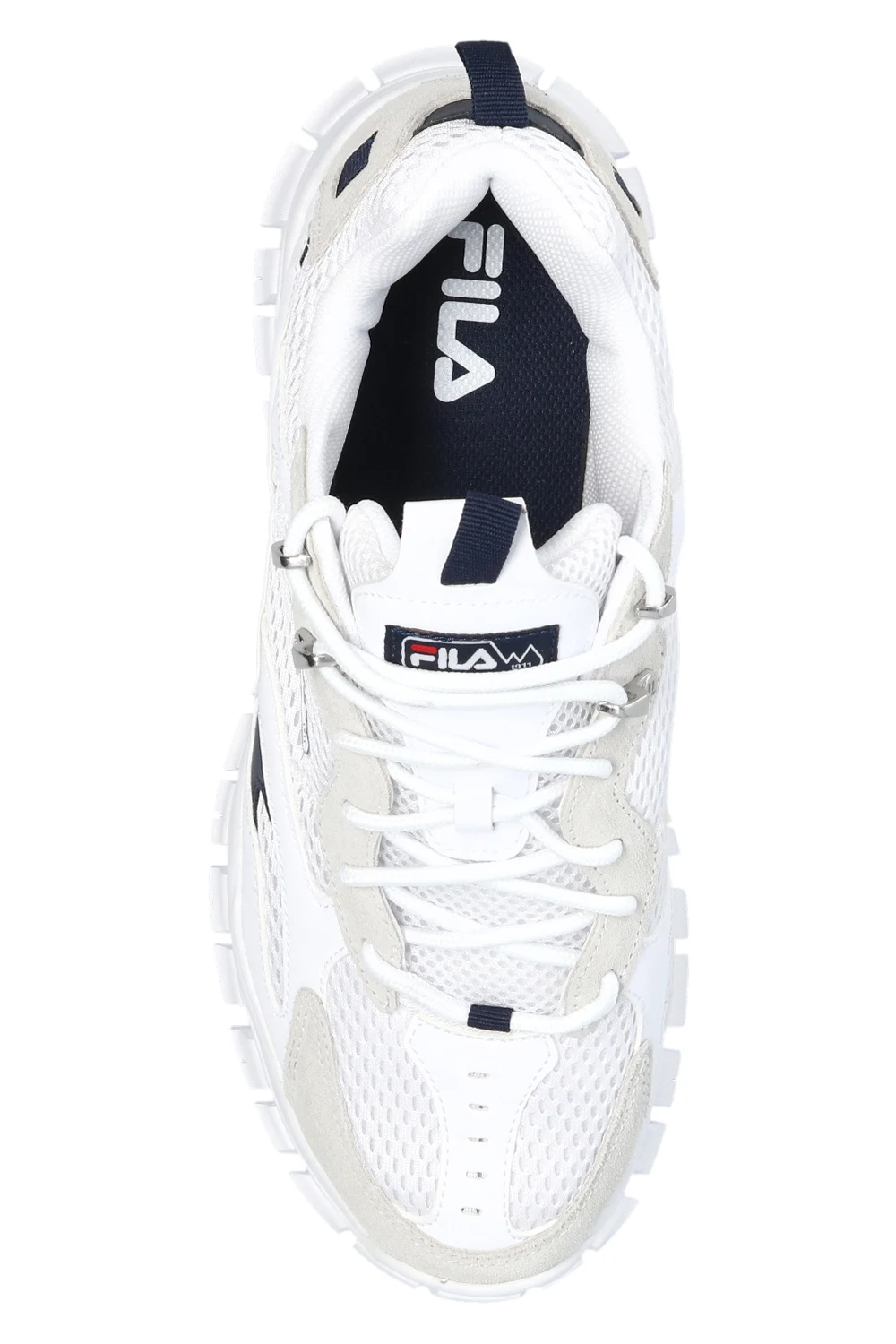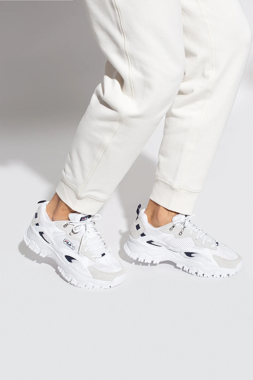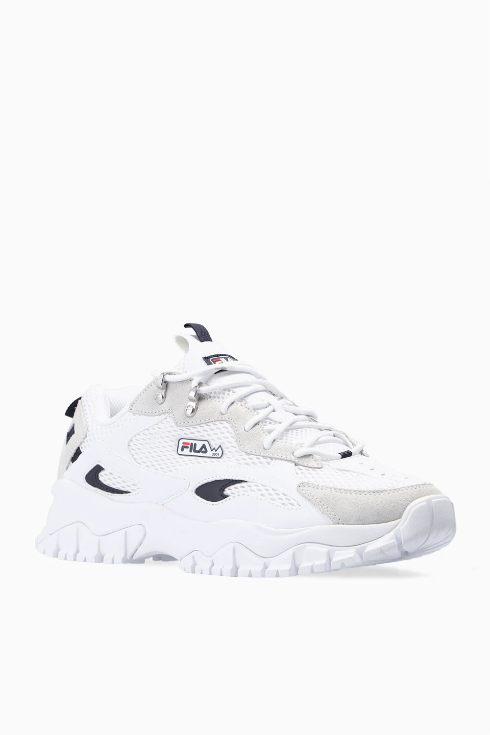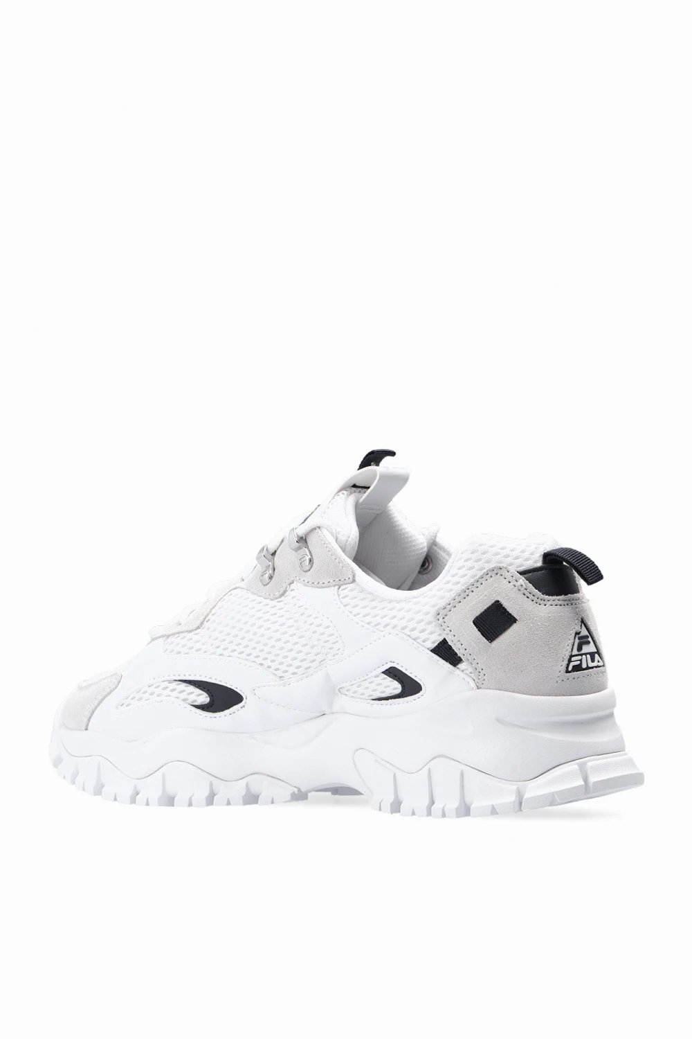 White and light grey ‘Ray Tracer TR2’ sneakers from Fila. Featuring a mesh upper, this pair features a tongue patch with a logo and a white rubber sole.