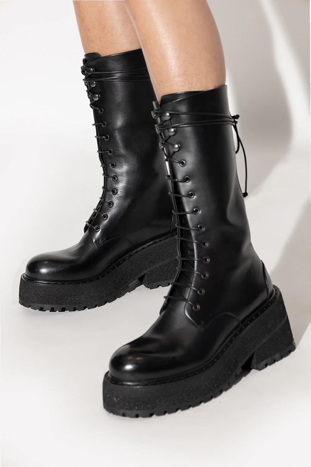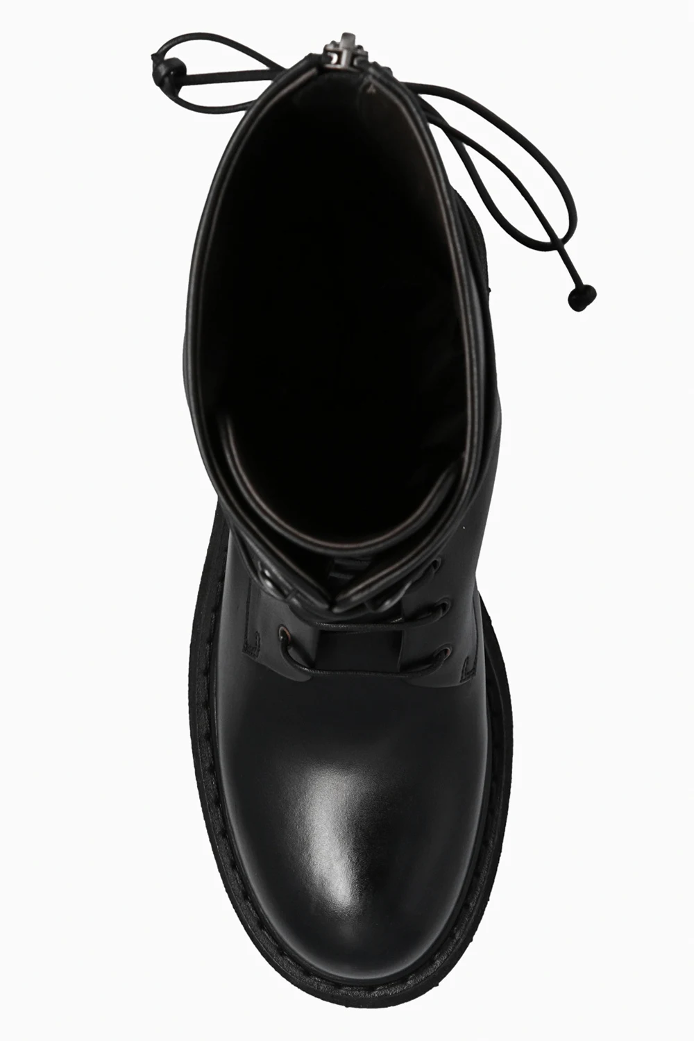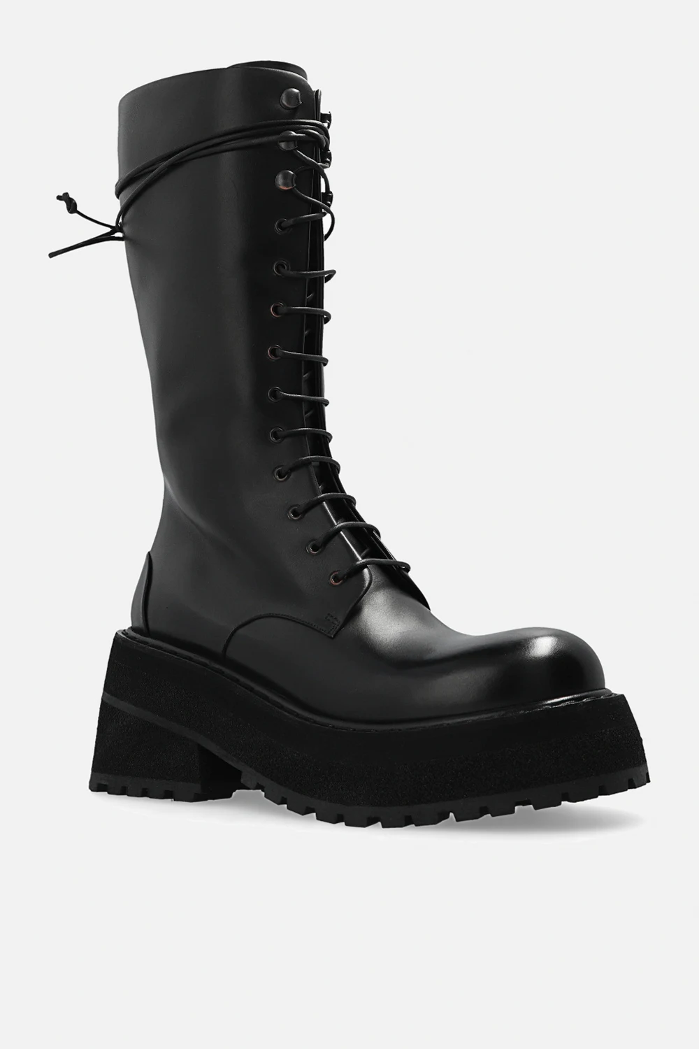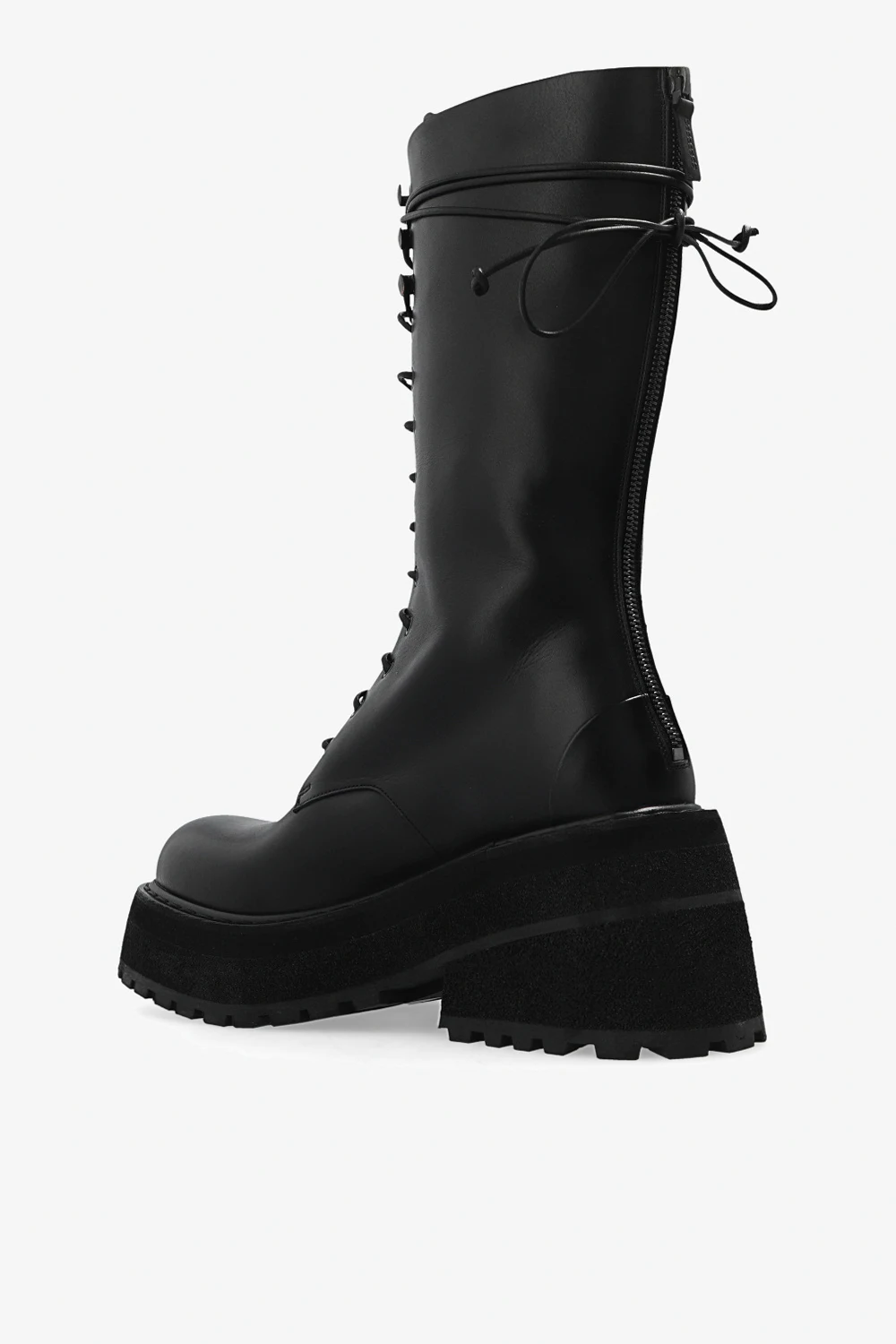 Black ‘Carro’ platform boots from Marsell. Crafted from cotton, this lace-up pair features a zip fastening at the back, almond toe and black rubber sole.
