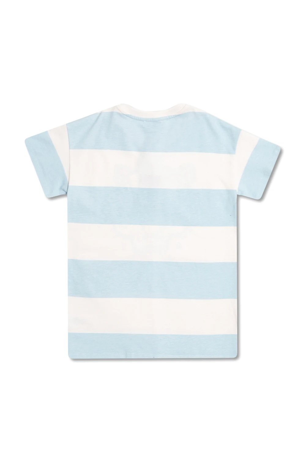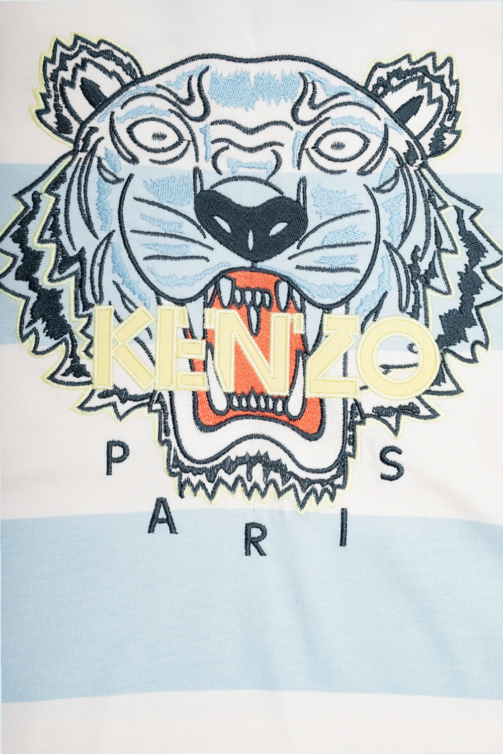 White and blue T-shirt from Kenzo Kids. Crafted from cotton, this short sleeve design features a stripe pattern, the iconic multicolored tiger head and logo detail.