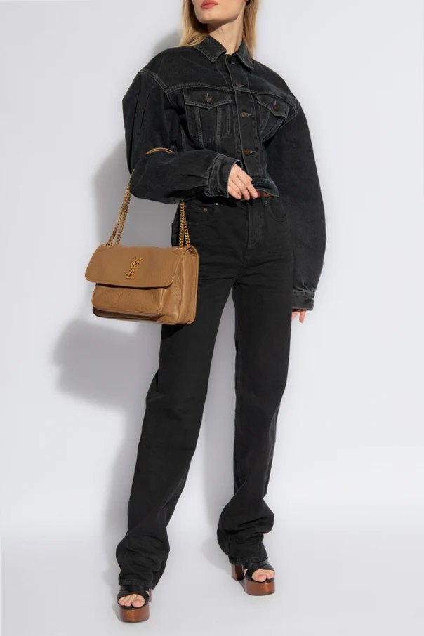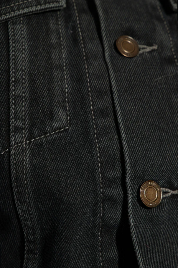 Black denim jacket from Saint Laurent. Crafted with a vintage effect, this style features button fastenings, two flapped pockets with buttons and long sleeves with button cuffs.