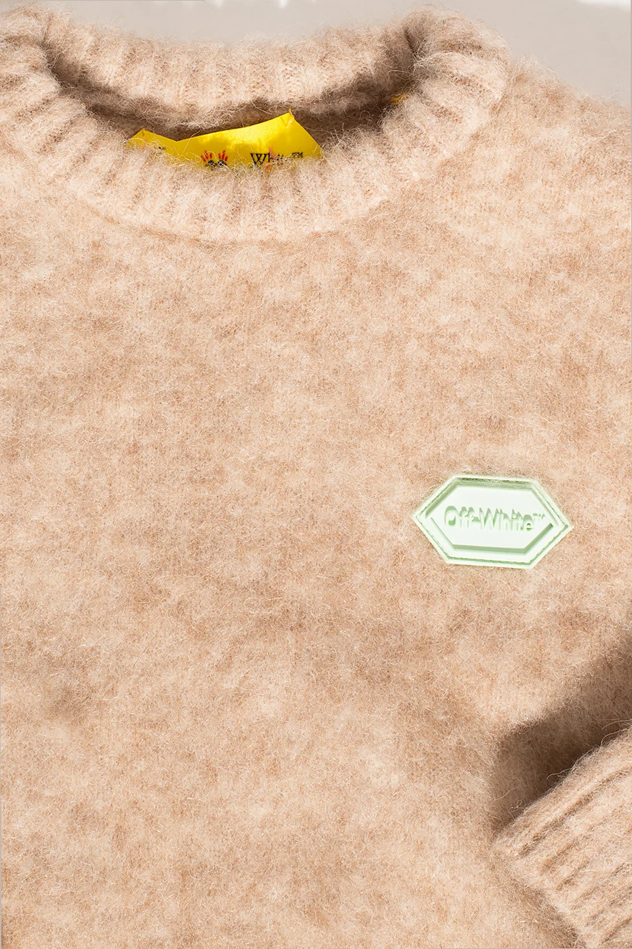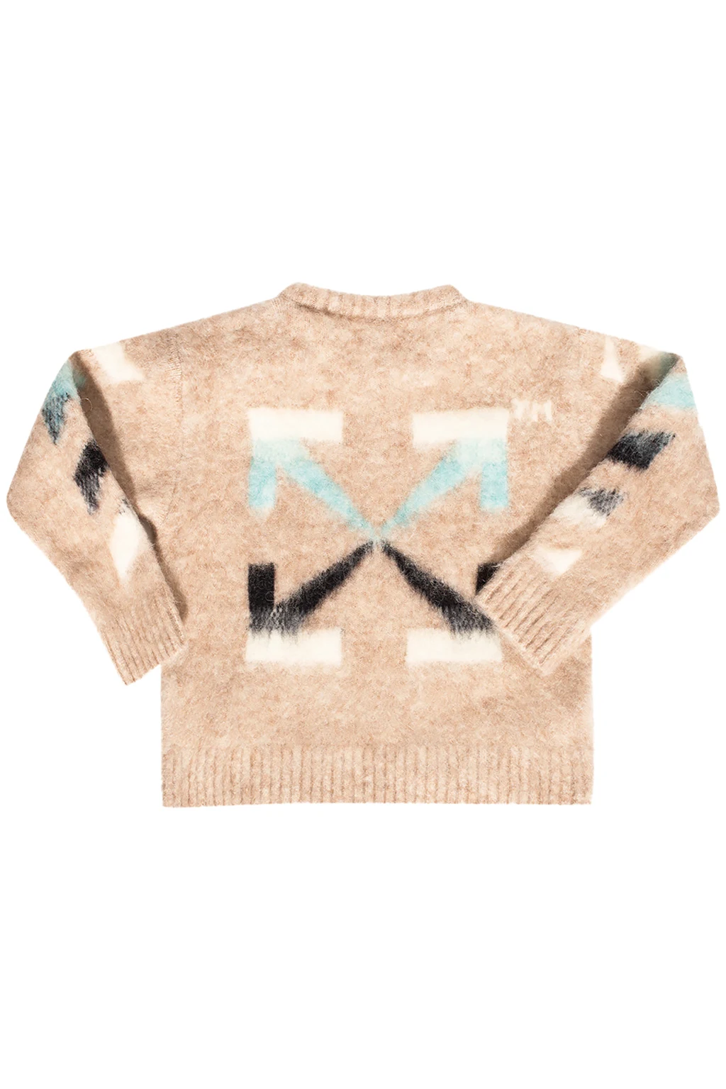 Beige crewneck sweater from Off-White Kids. Crafted from a wool blend, this style showcases a colourful graphic motif, a patch with the brand's logo and ribbed trims on the edges.