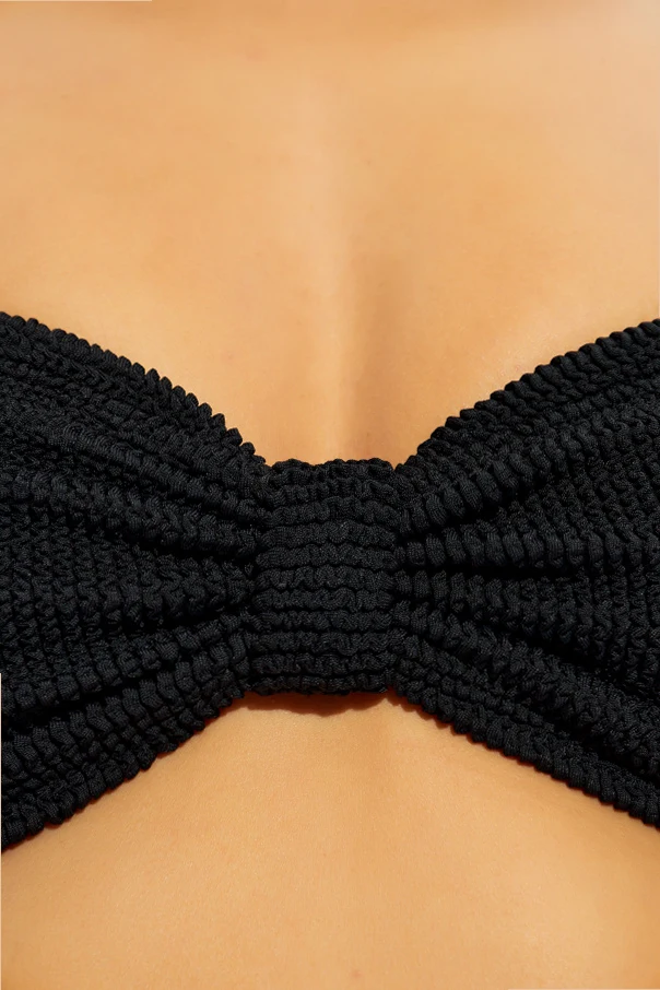 Der bezaubernde zweiteilige Badeanzug ‘Bonnie’ von der renommierten Marke Hunza G ist die Quintessenz der Eleganz kombiniert mit Komfort. Gefertigt aus dem innovativen Material Original Crinkle™ , das sich durch hohe Elastizität und Strapazierfähigkeit auszeichnet, garantiert er eine perfekte Anpassung an die Figur sowie Tragekomfort. Der vorherrschende Schwarzton verleiht dem Kostüm Universalität und Adel, sodass es eine ausgezeichnete Wahl für jede Gelegenheit ist.