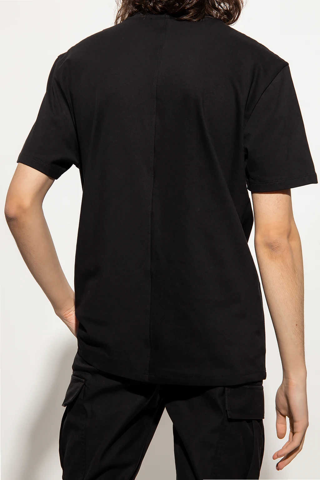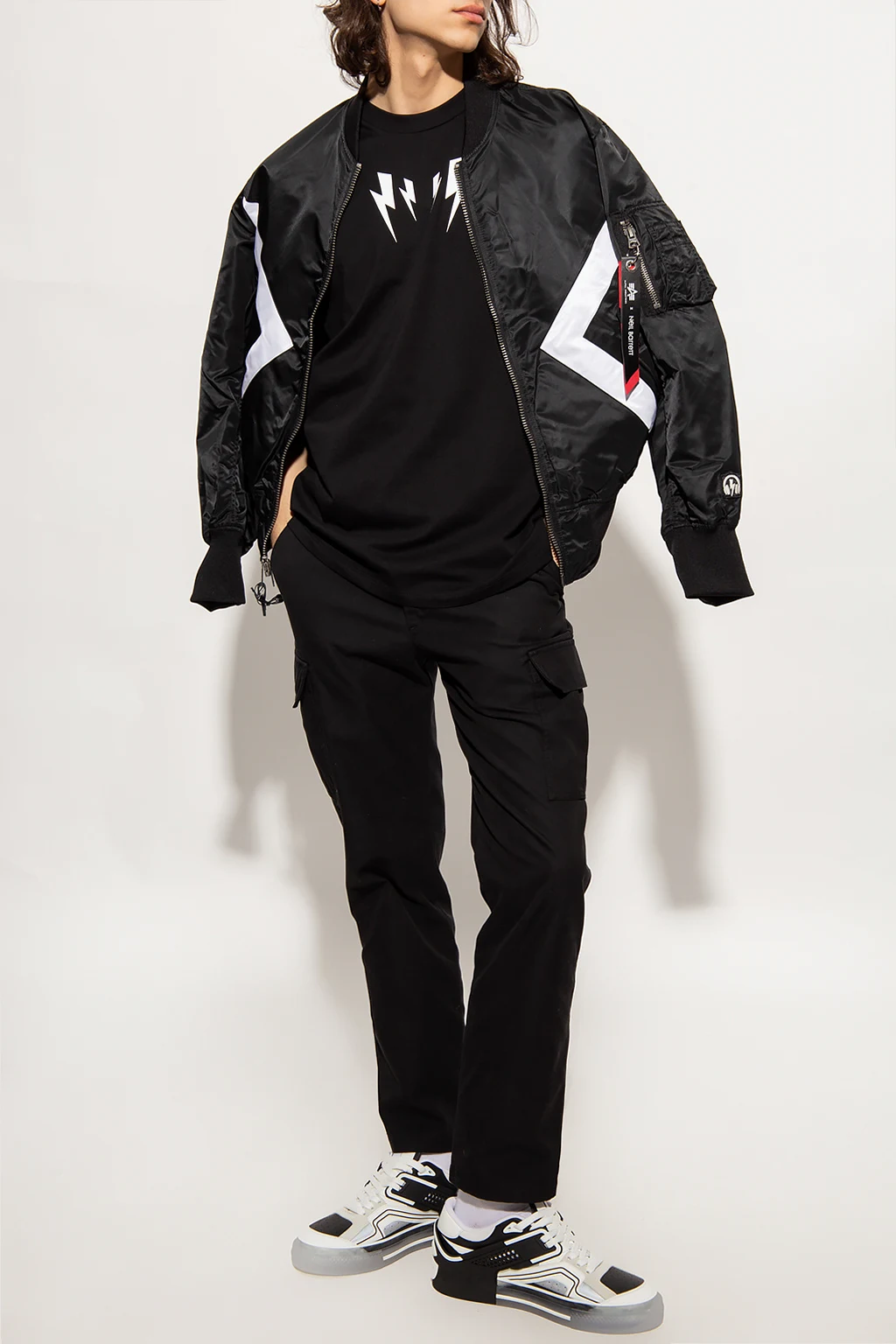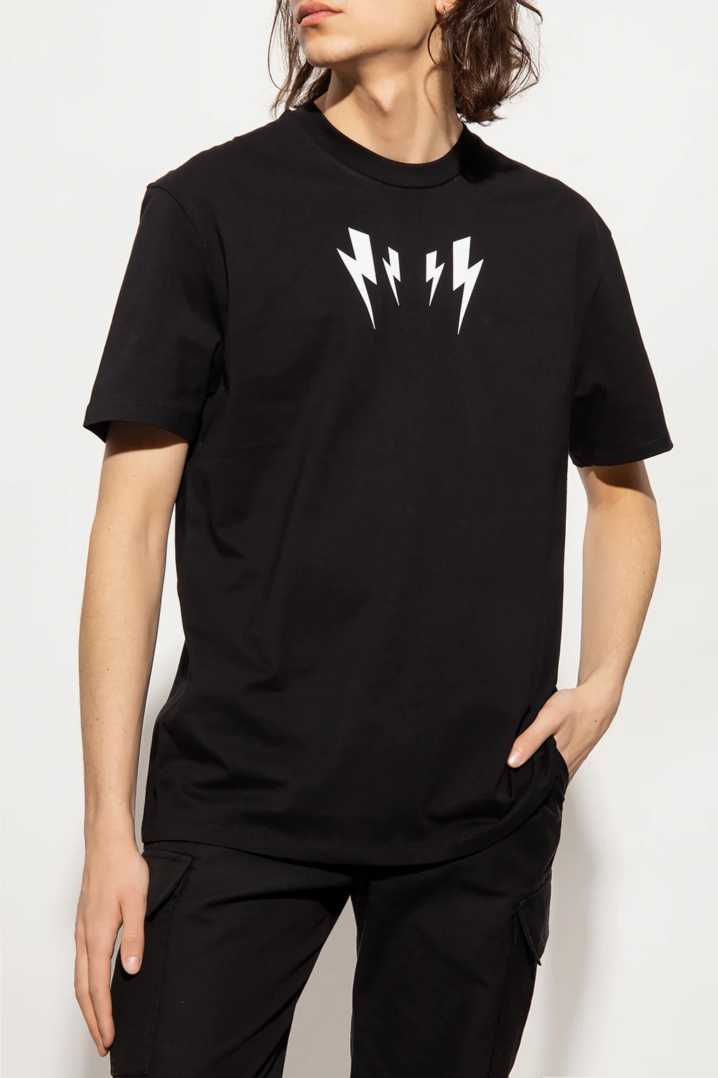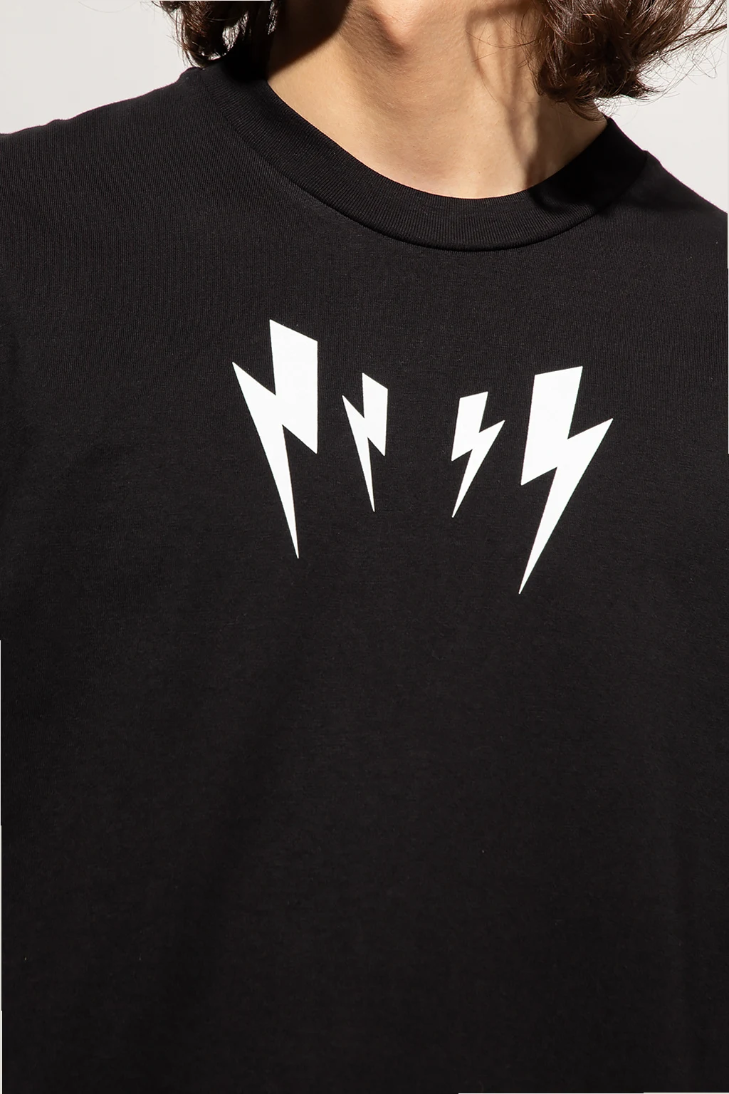 Black crewneck T-shirt from Neil Barrett. Made of cotton, this short sleeve design features white Thunderbolt pattern with a mirror effect.