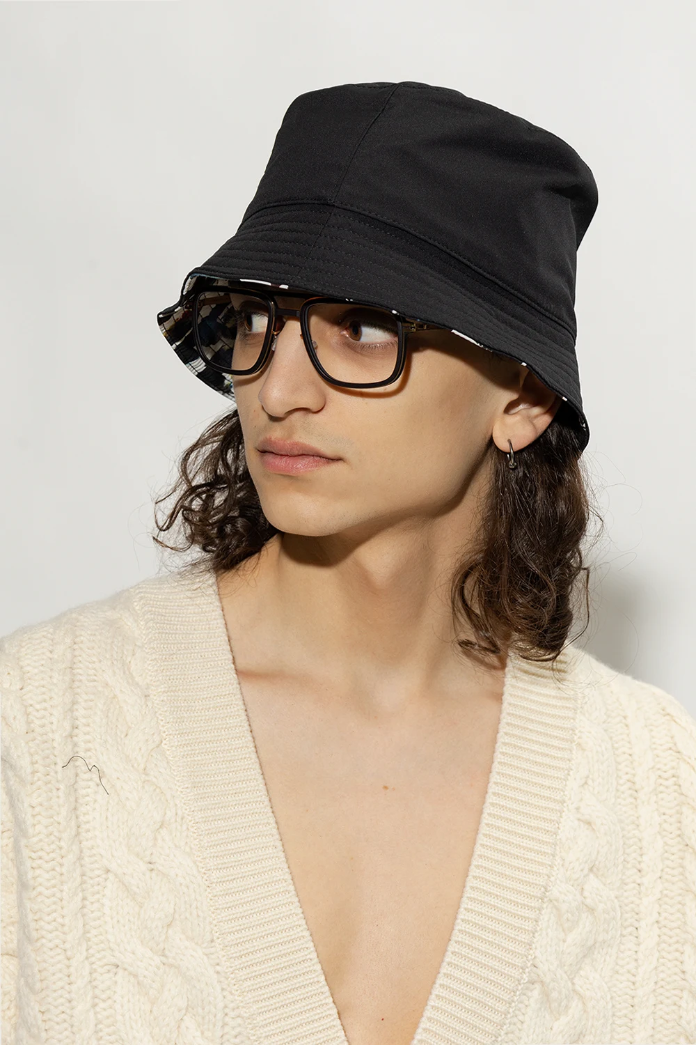 Black optical glasses from Mykita. Made of mylon – light and durable fabric with steel temples in gold-tone, this pair features patented spiral hinges, silicone tips and nose pads, double bridge and clear lenses with anti-reflective coating. Comes with a case. Handcrafted in Berlin.