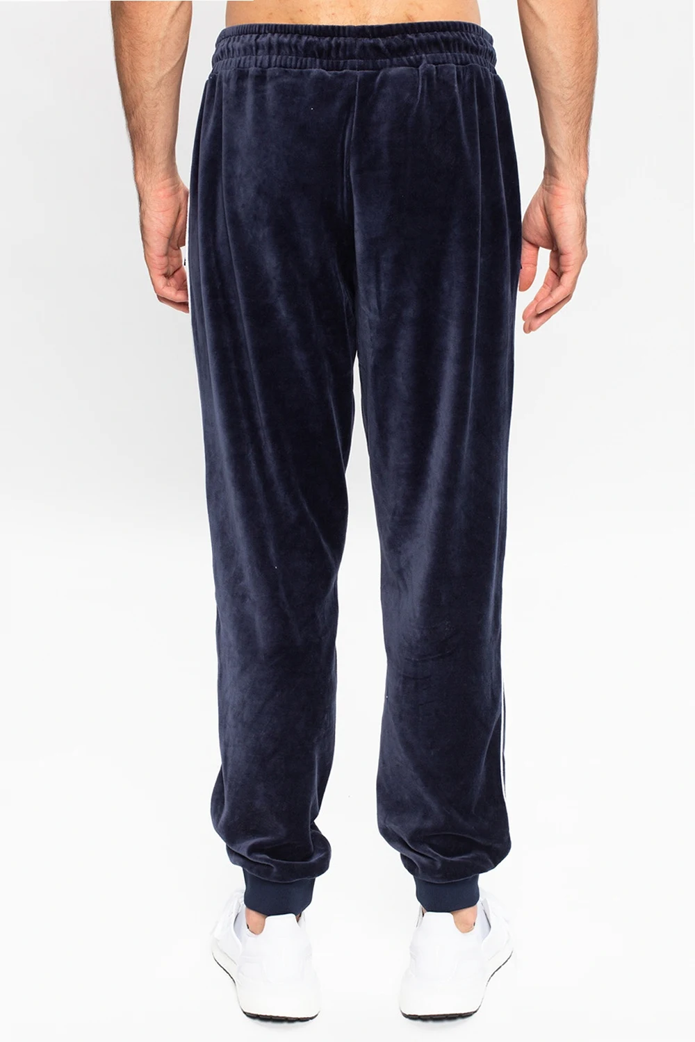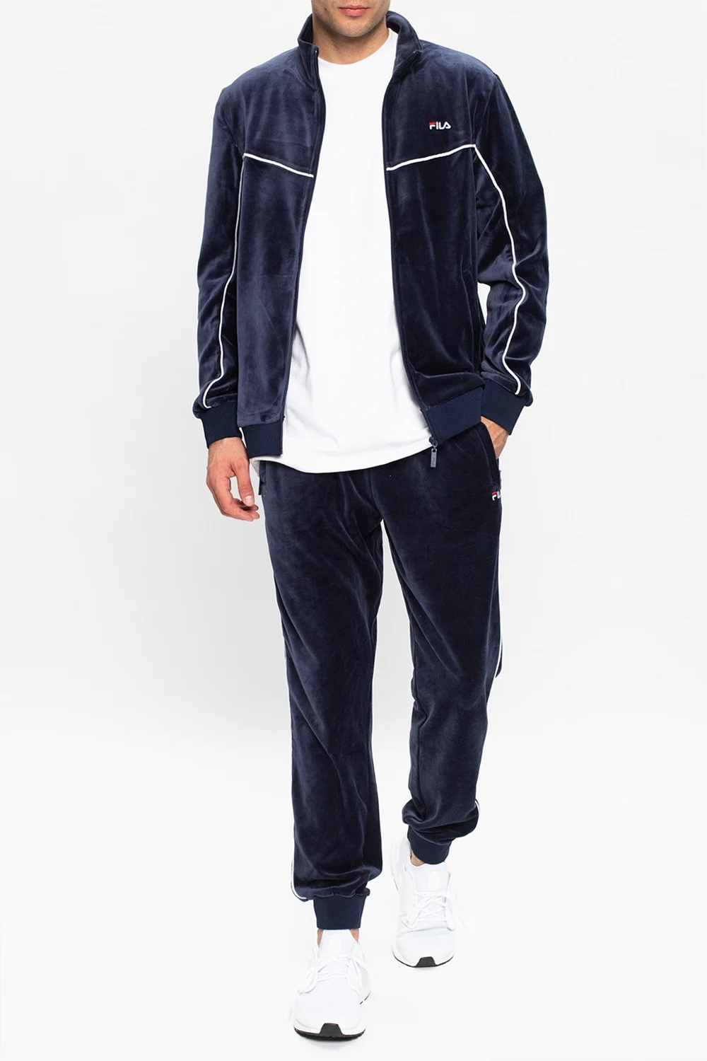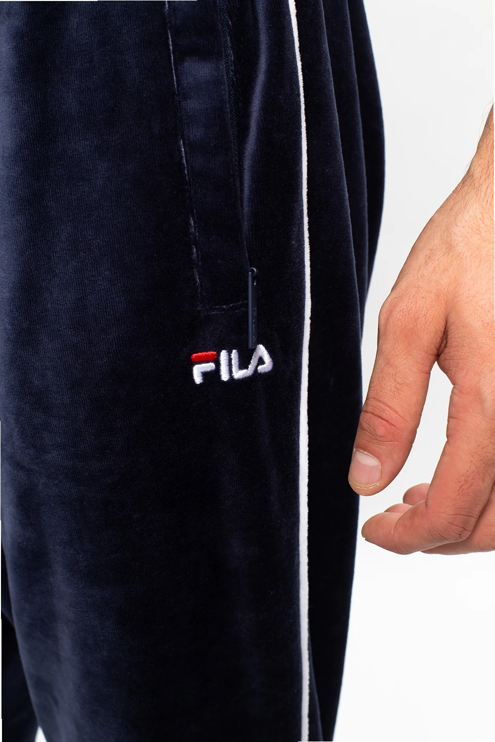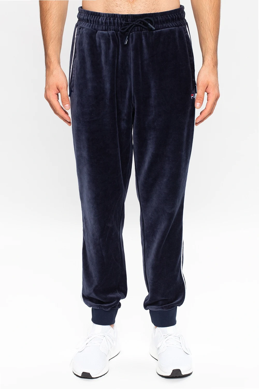 Blue sweatpants from Fila. Crafted from cotton velour, this design features a drawstring waist, logo embroidery, two zip pockets and ribbed cuffs.